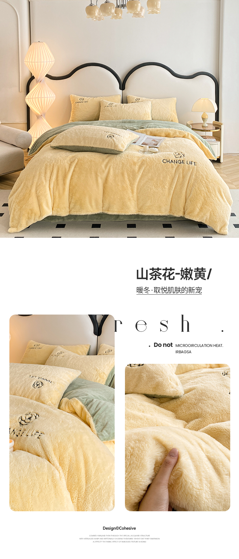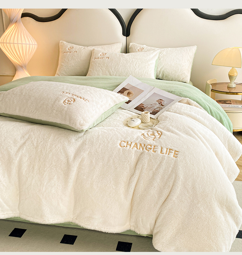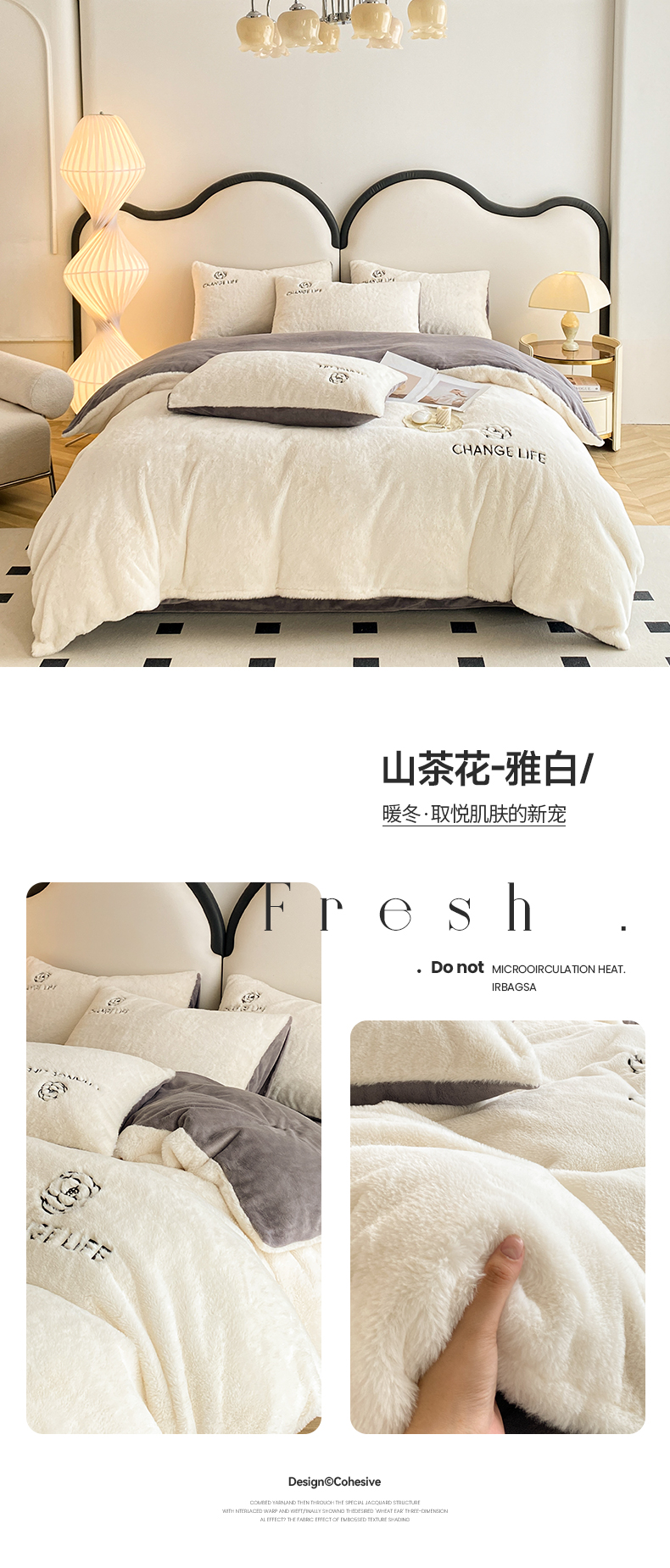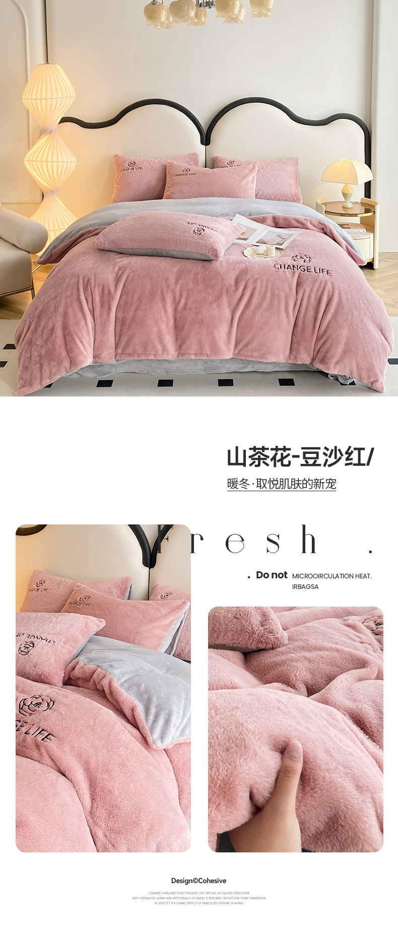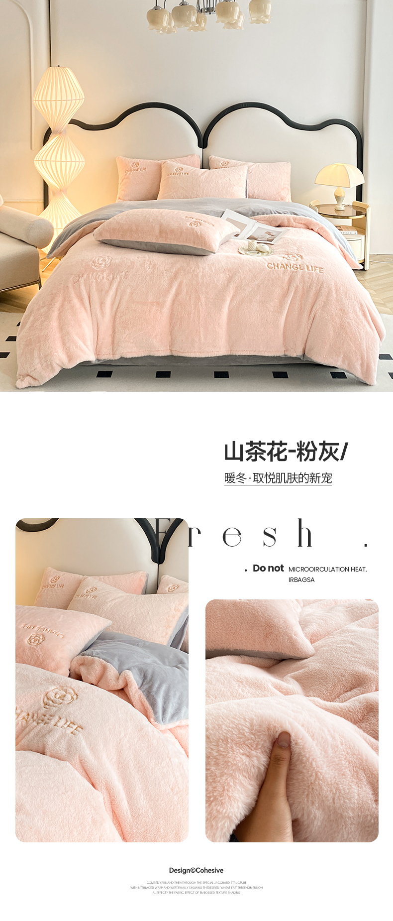 (总)澳梵 2023新款【山茶花】小香风刺绣兔兔绒牛奶绒四件