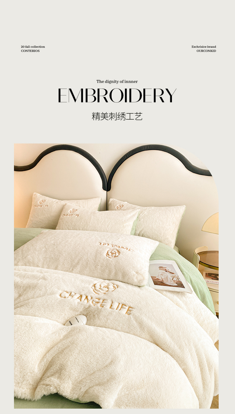 商品名称:(总)澳梵 2023新款【山茶花】小香风刺绣兔兔绒牛奶绒四件