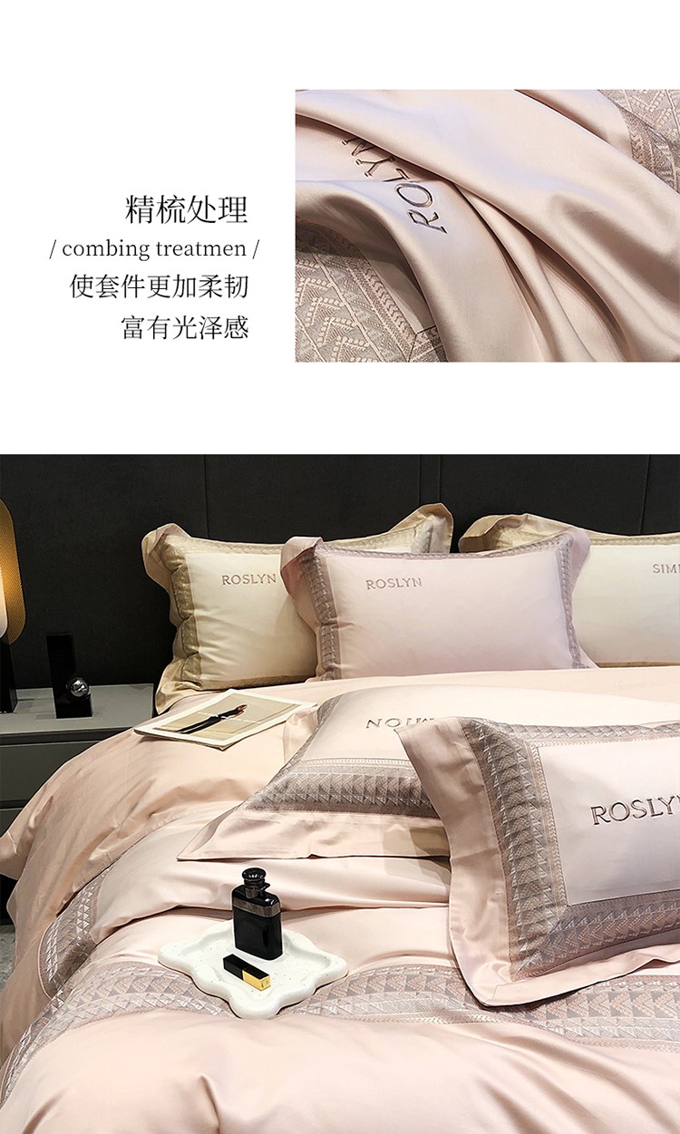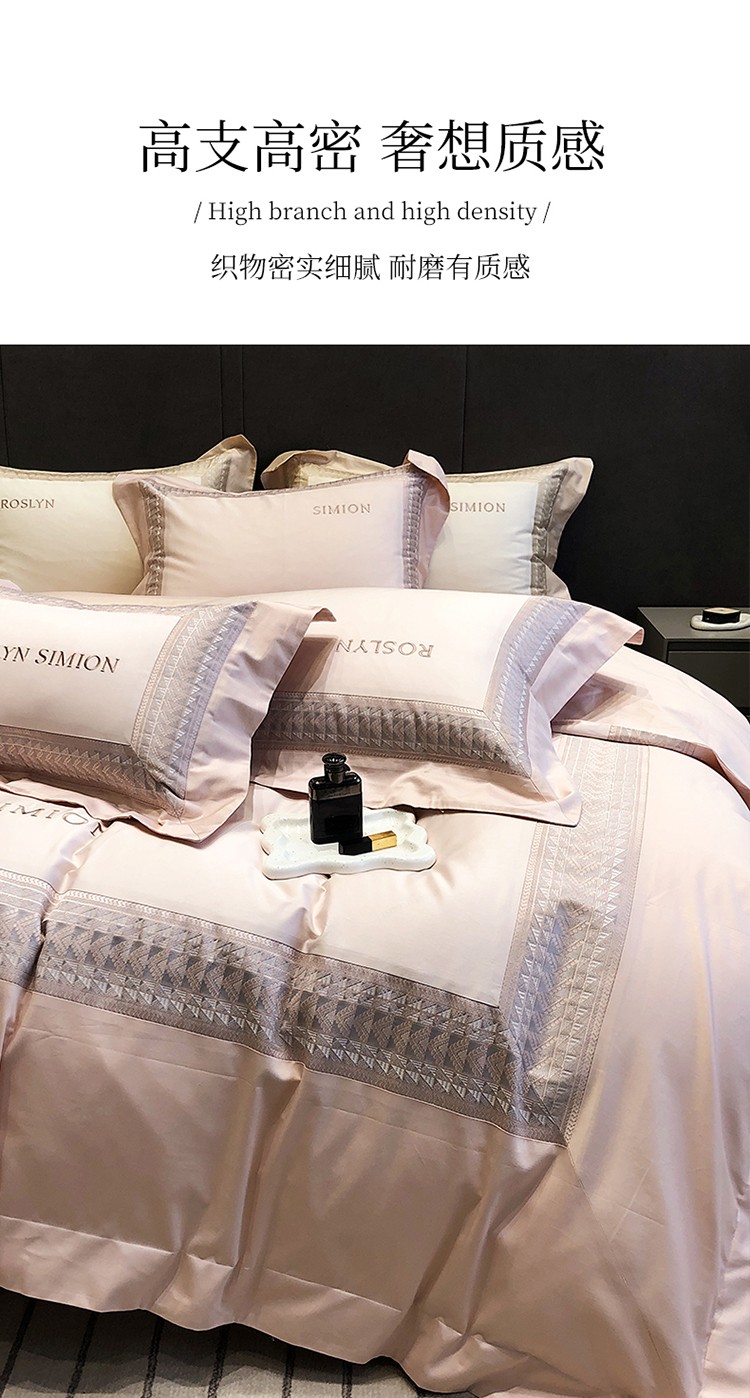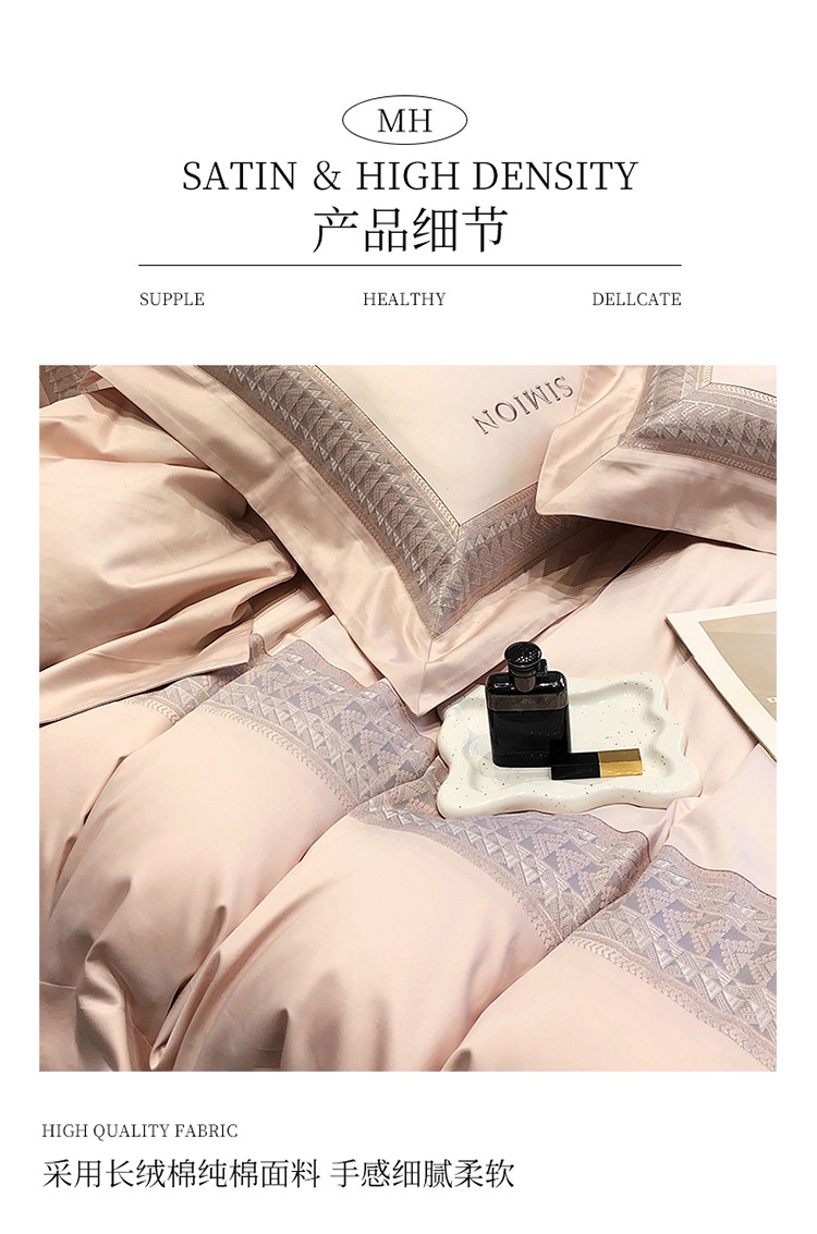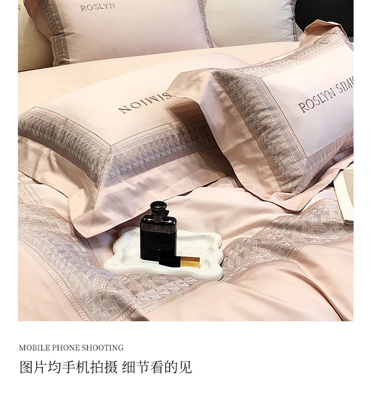 (总)黑白森林2024款 80X80S高支天丝棉四件套镂空蕾丝花边天丝全棉,尚美-晨夕粉,尚美-古象白,尚美-青砂绿,尚美-银雪灰