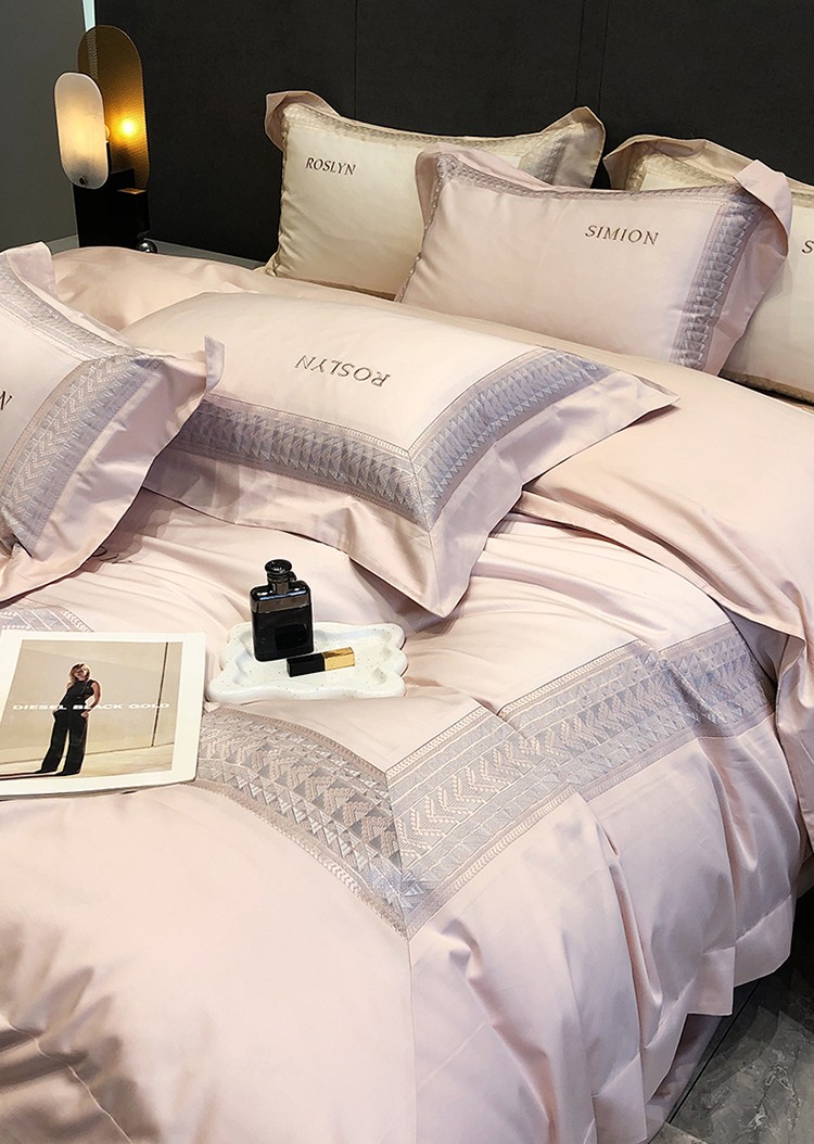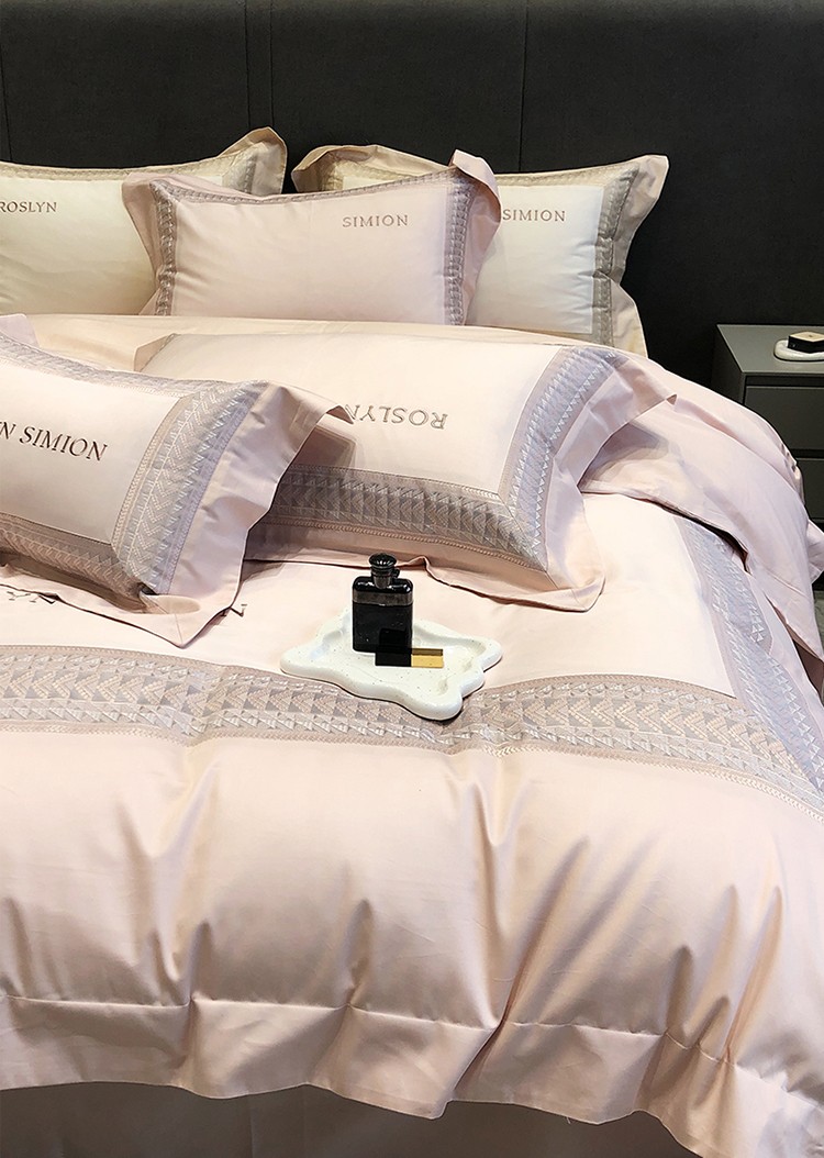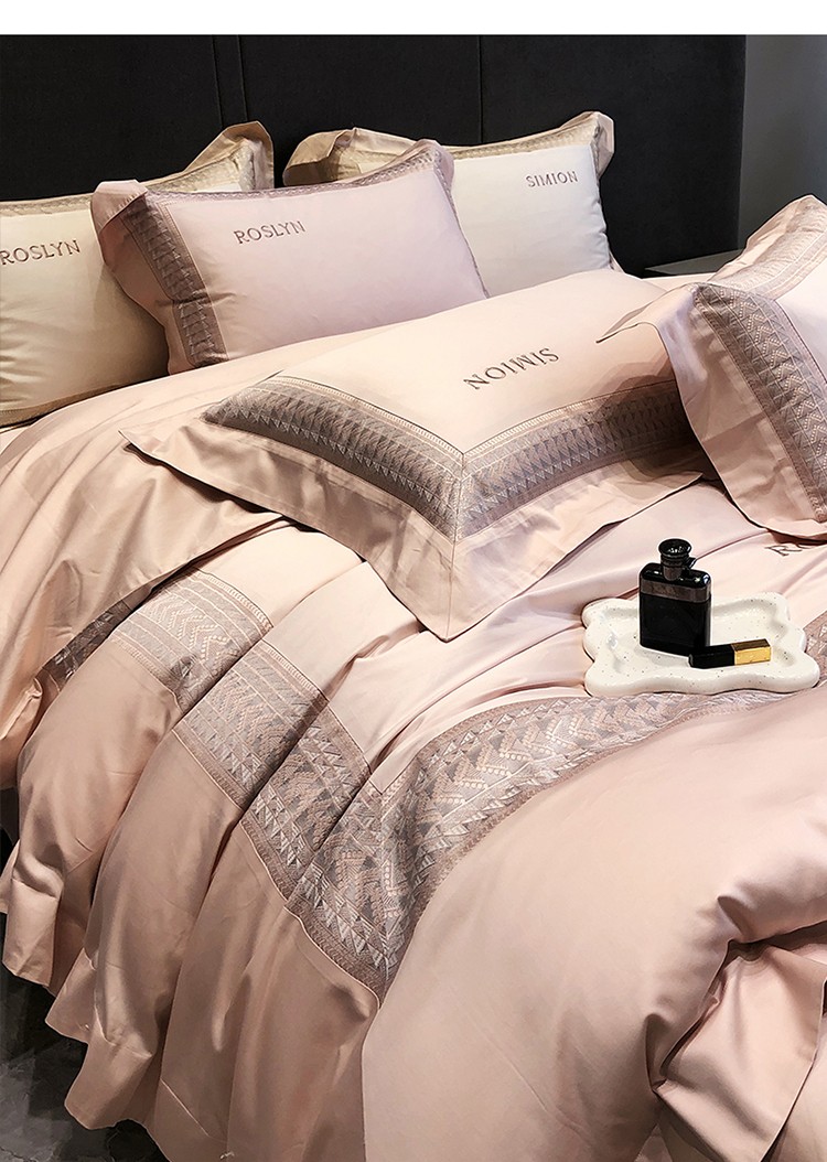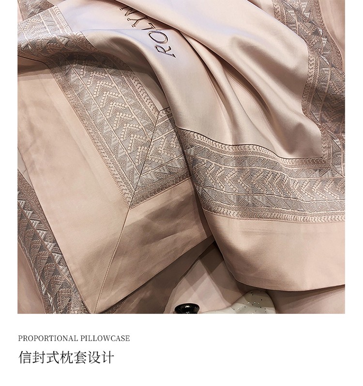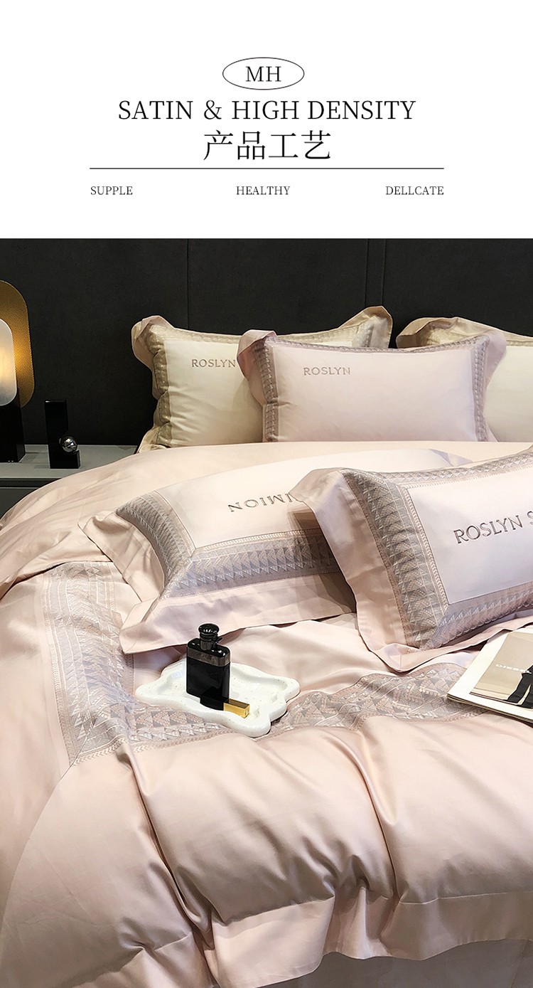 (总)黑白森林2024款 80X80S高支天丝棉四件套镂空蕾丝花边天丝全棉,尚美-晨夕粉,尚美-古象白,尚美-青砂绿,尚美-银雪灰