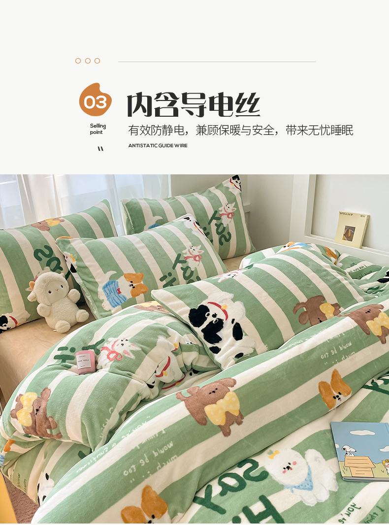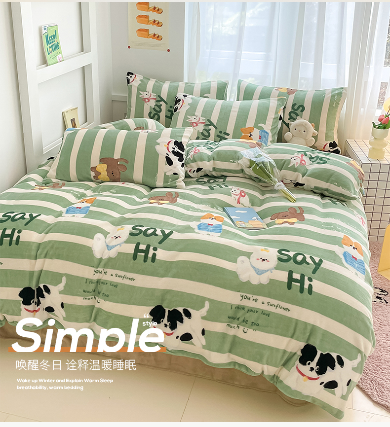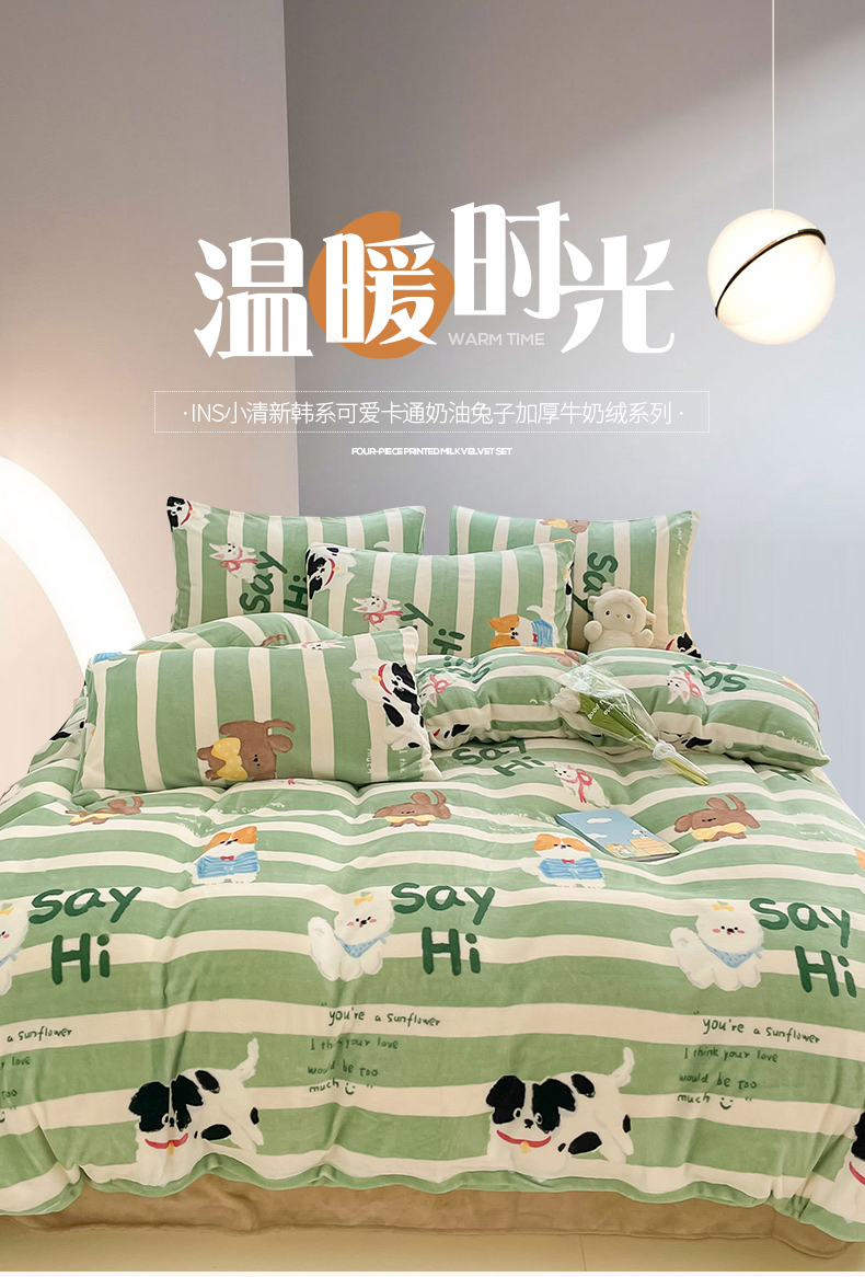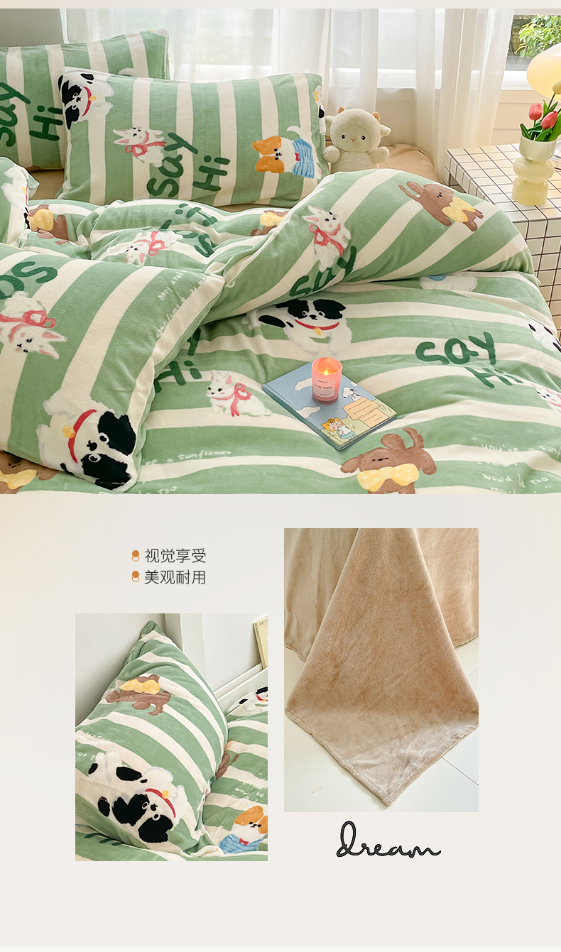 桃子 2023新款ins小清新韩系可爱卡通奶油兔子加厚牛奶绒系列四件套详情第三批 绒-狗狗派对