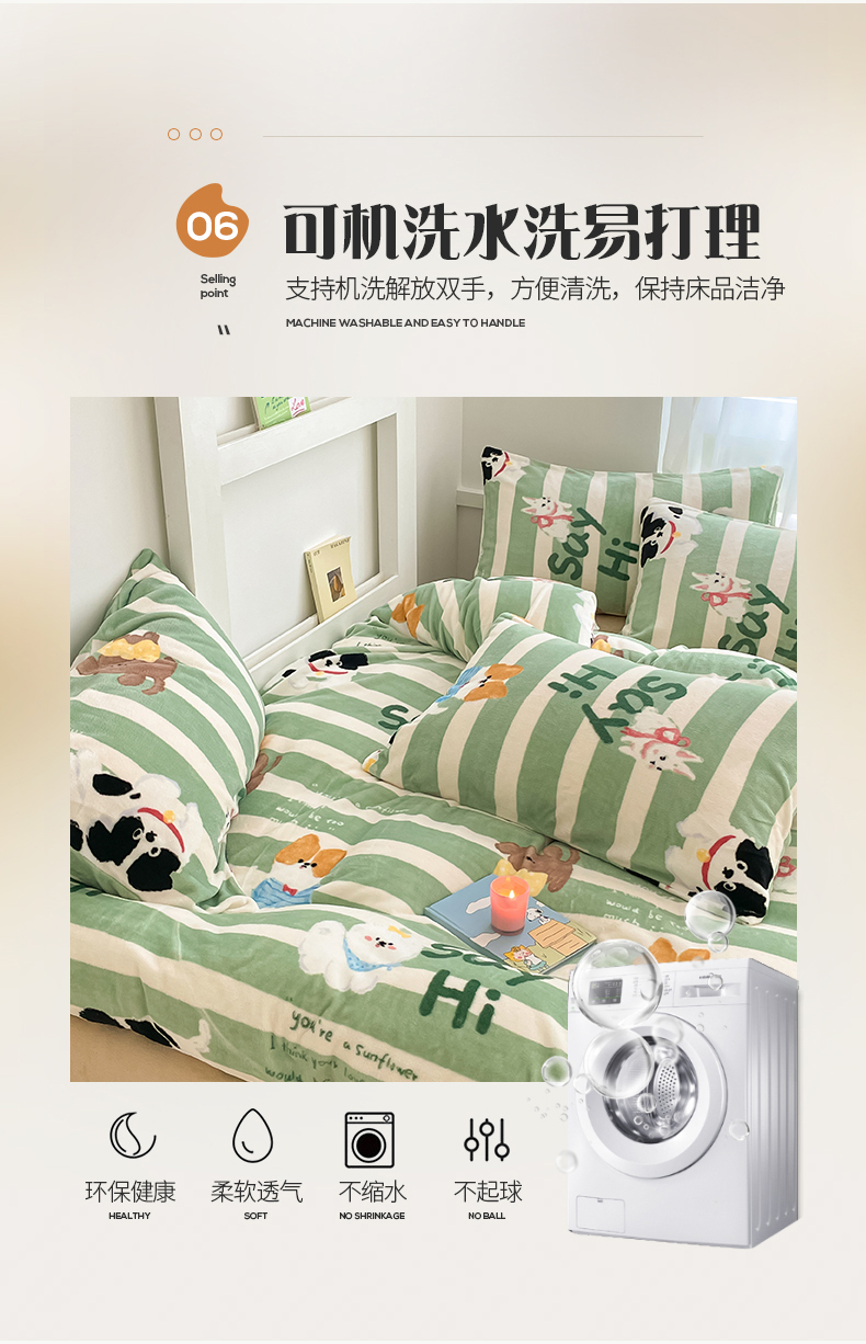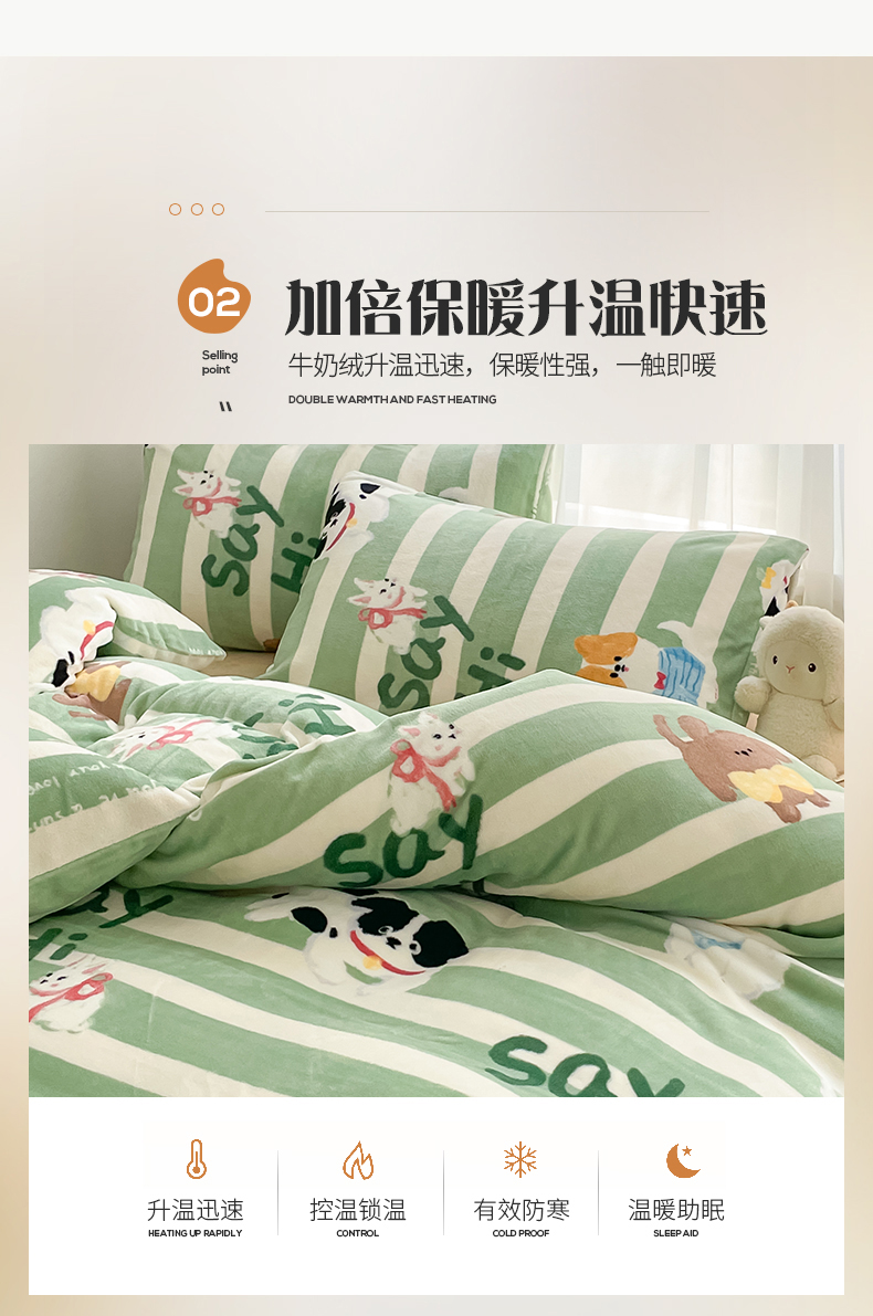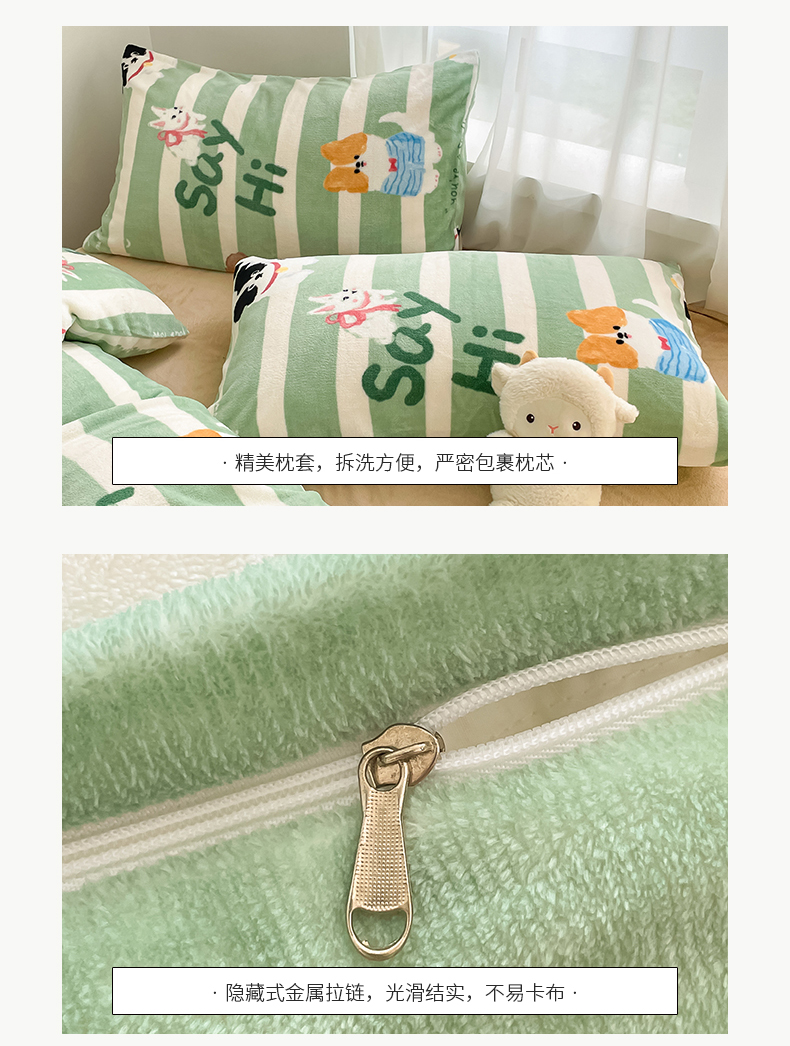 桃子 2023新款ins小清新韩系可爱卡通奶油兔子加厚牛奶绒系列四件套详情第三批 绒-狗狗派对