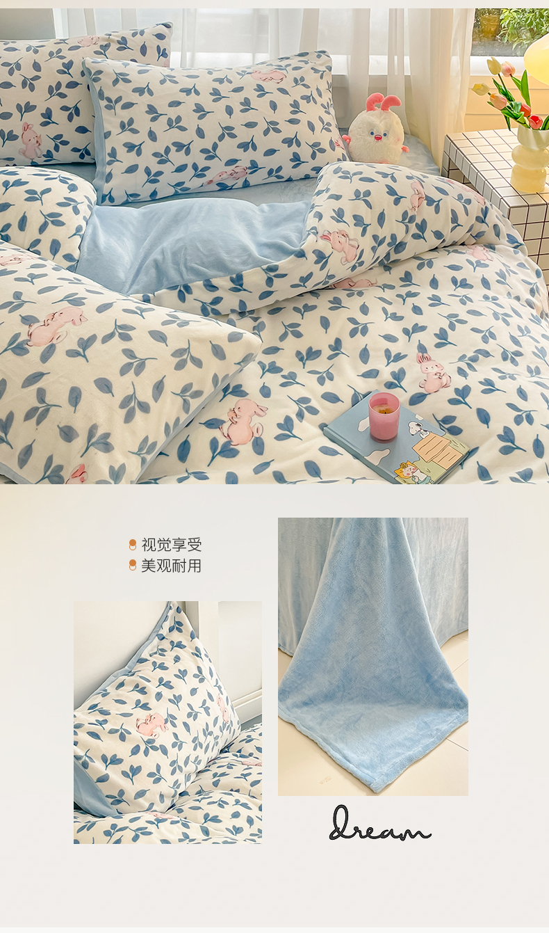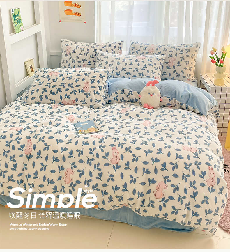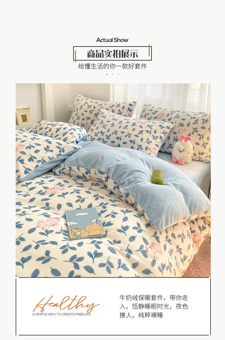 桃子 2023新款ins小清新韩系可爱卡通奶油兔子加厚牛奶绒系列四件套详情第三批 绒-萌萌兔