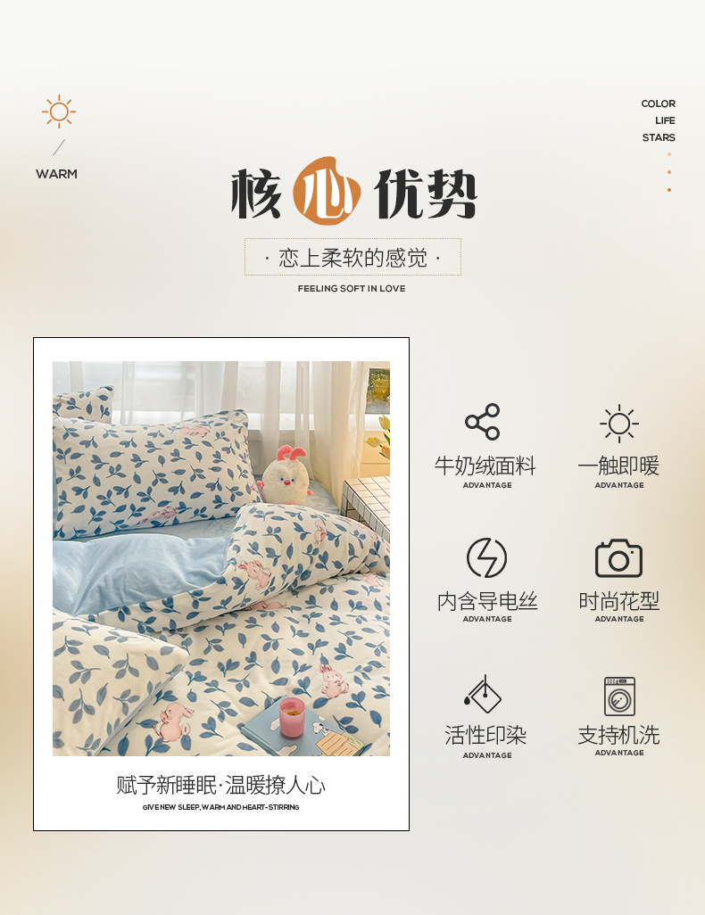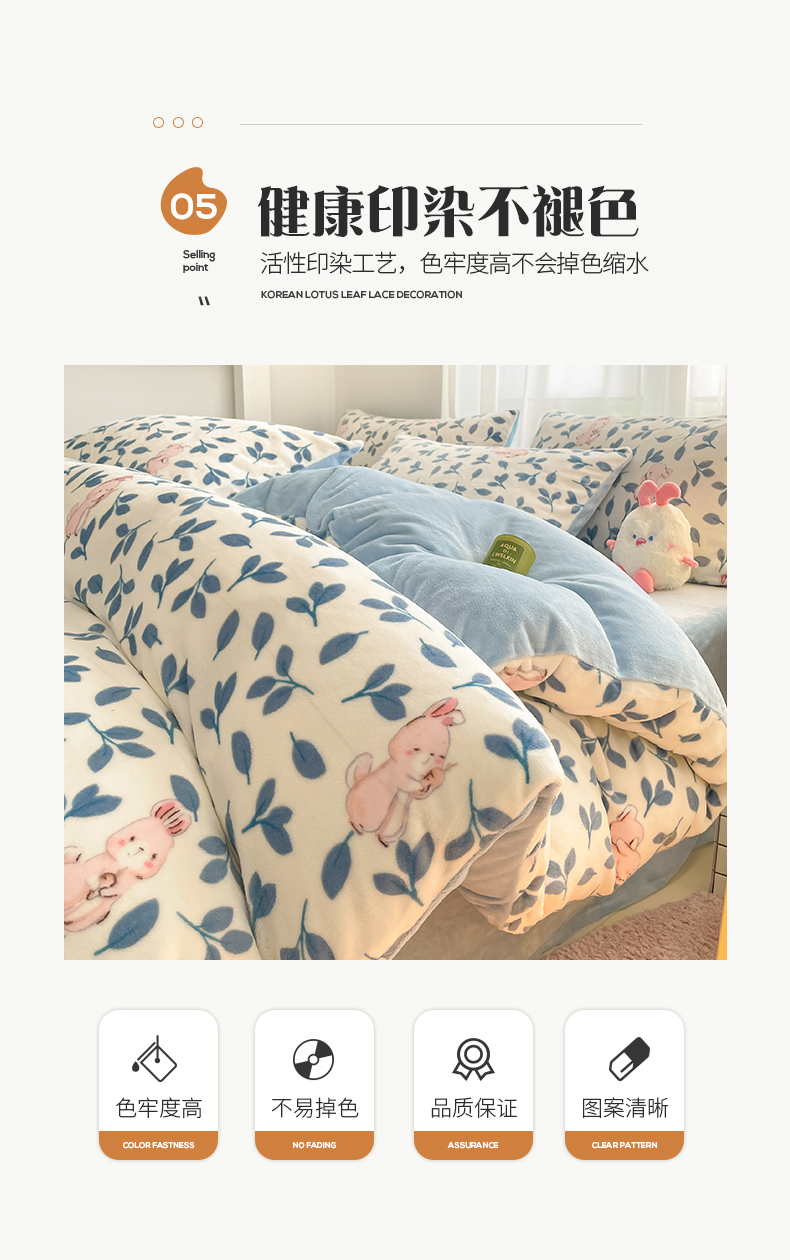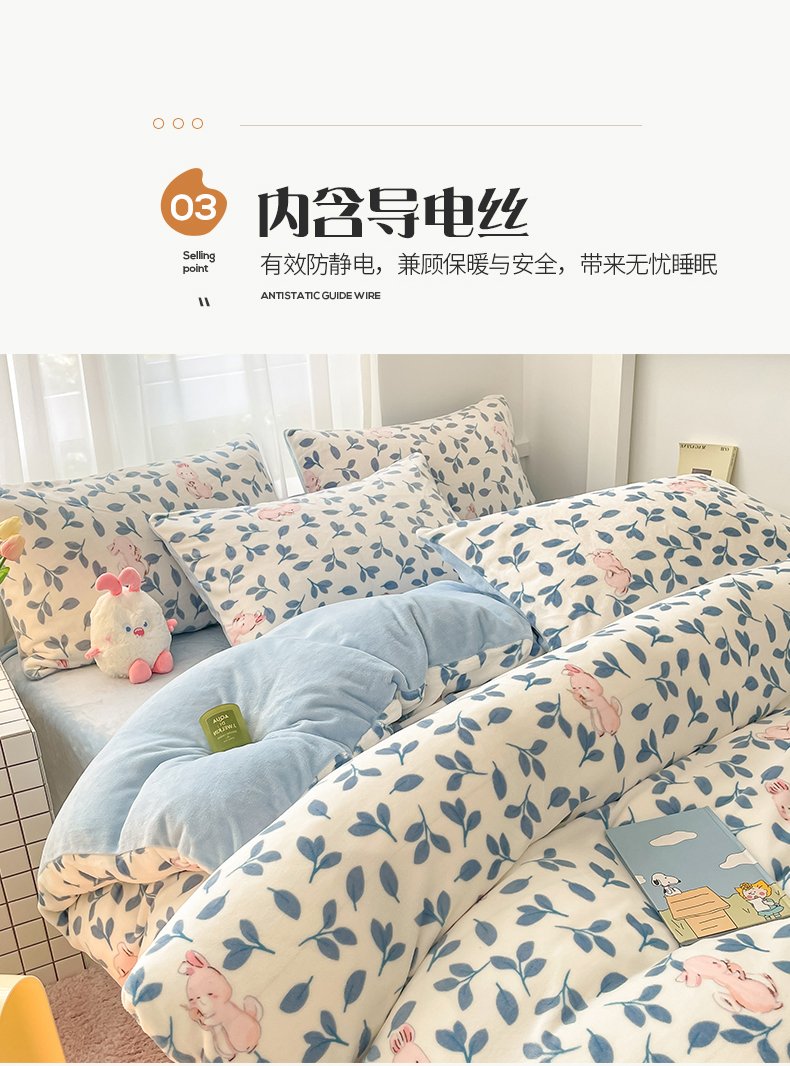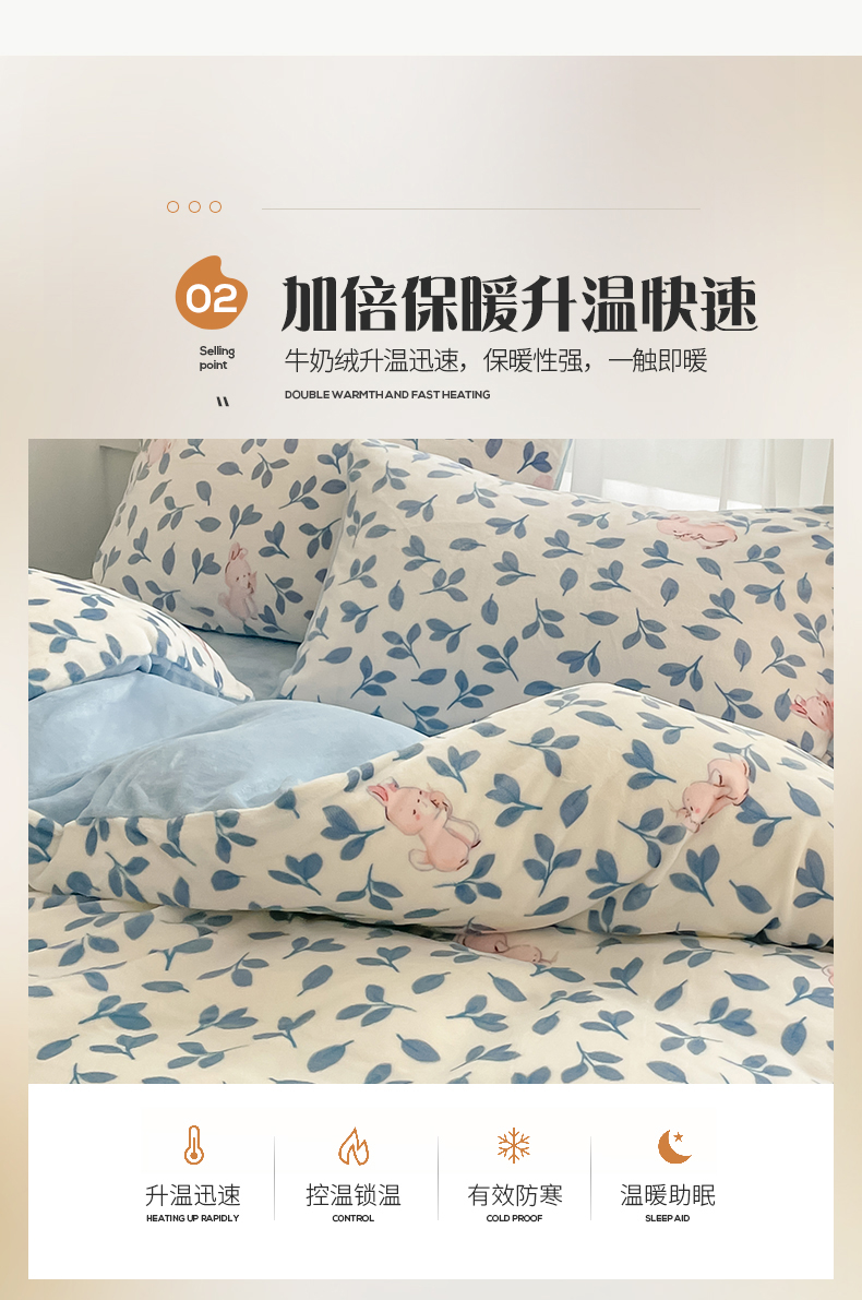桃子 2023新款ins小清新韩系可爱卡通奶油兔子加厚牛奶绒系列四件套详情第三批 绒-萌萌兔