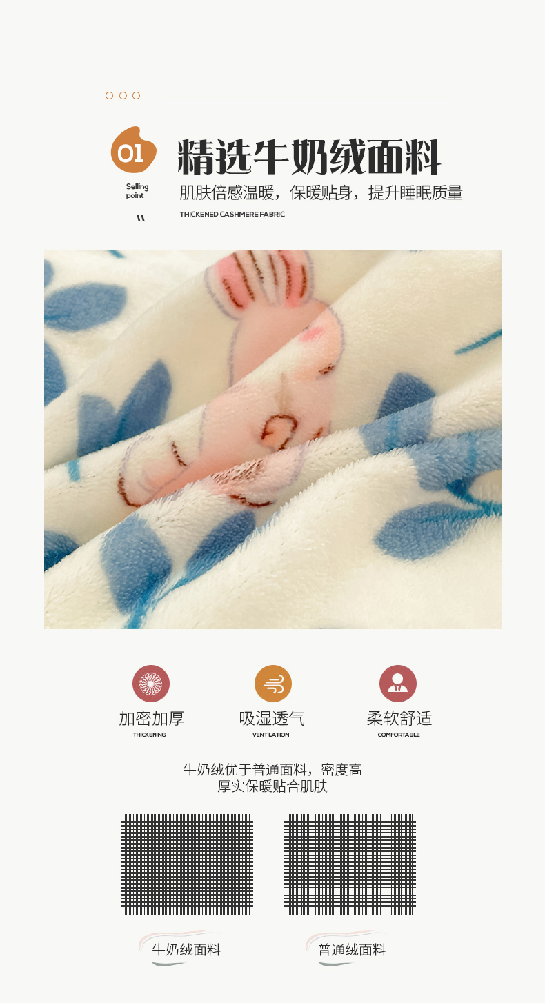 商品名称:桃子 2023新款ins小清新韩系可爱卡通奶油兔子加厚牛奶绒系列四件套详情第三批 绒-萌萌兔