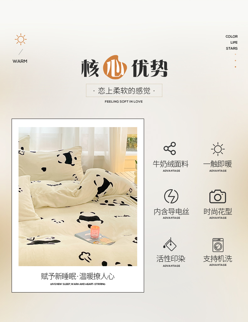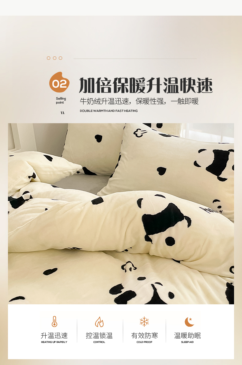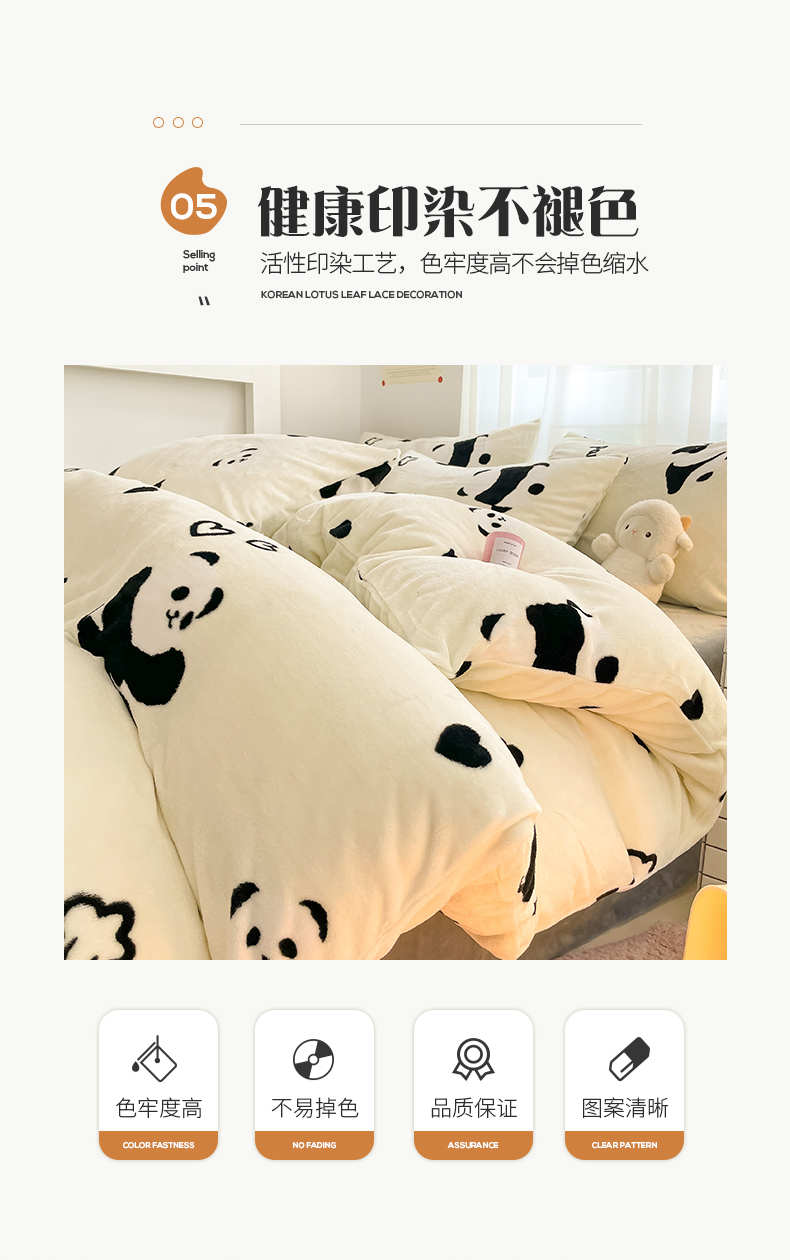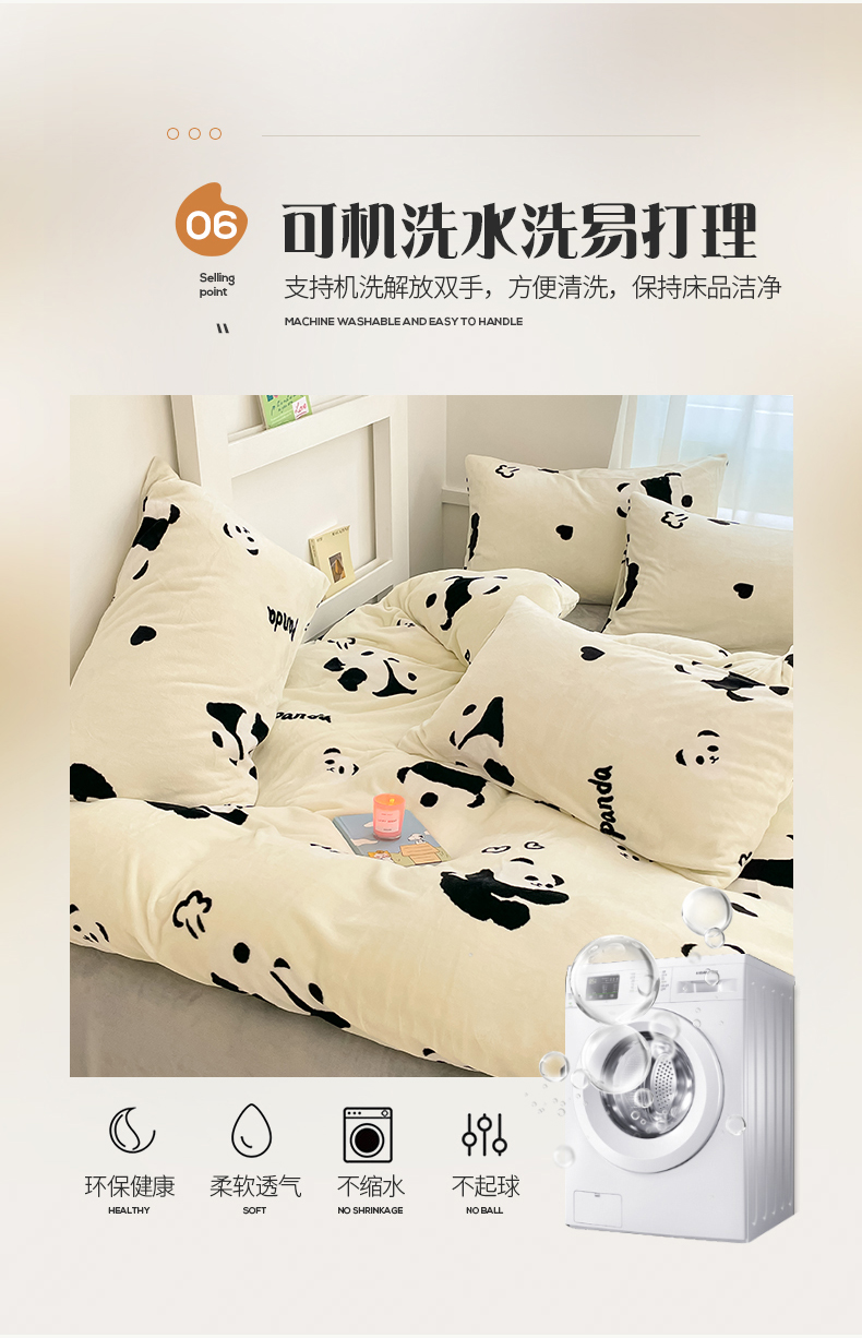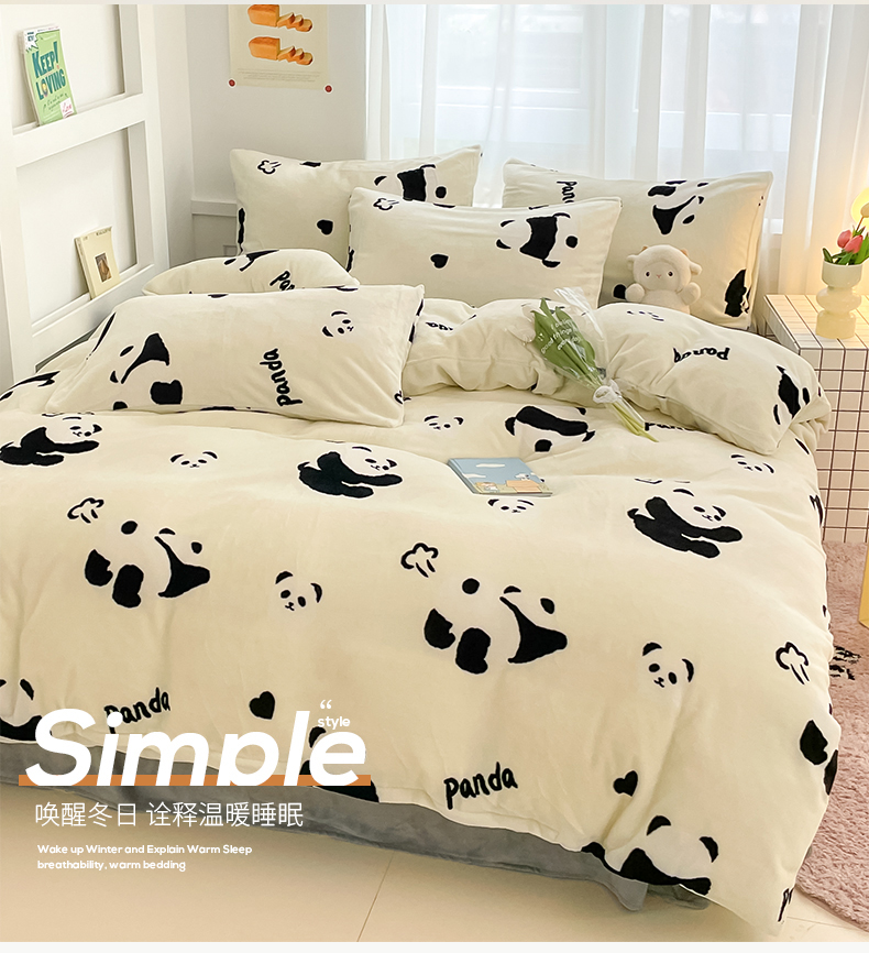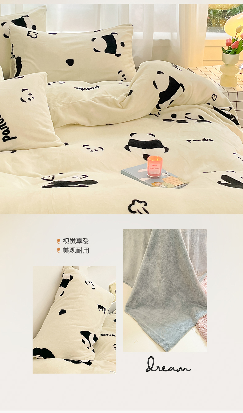 桃子 2023新款ins小清新韩系可爱卡通奶油兔子加厚牛奶绒系列四件套详情第三批 绒-熊猫墩墩奶白