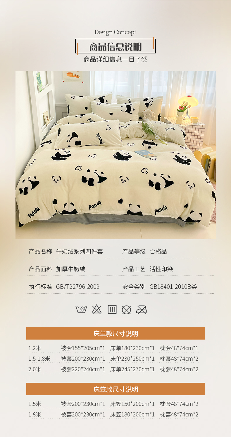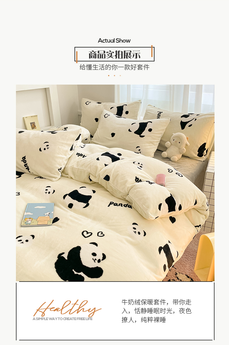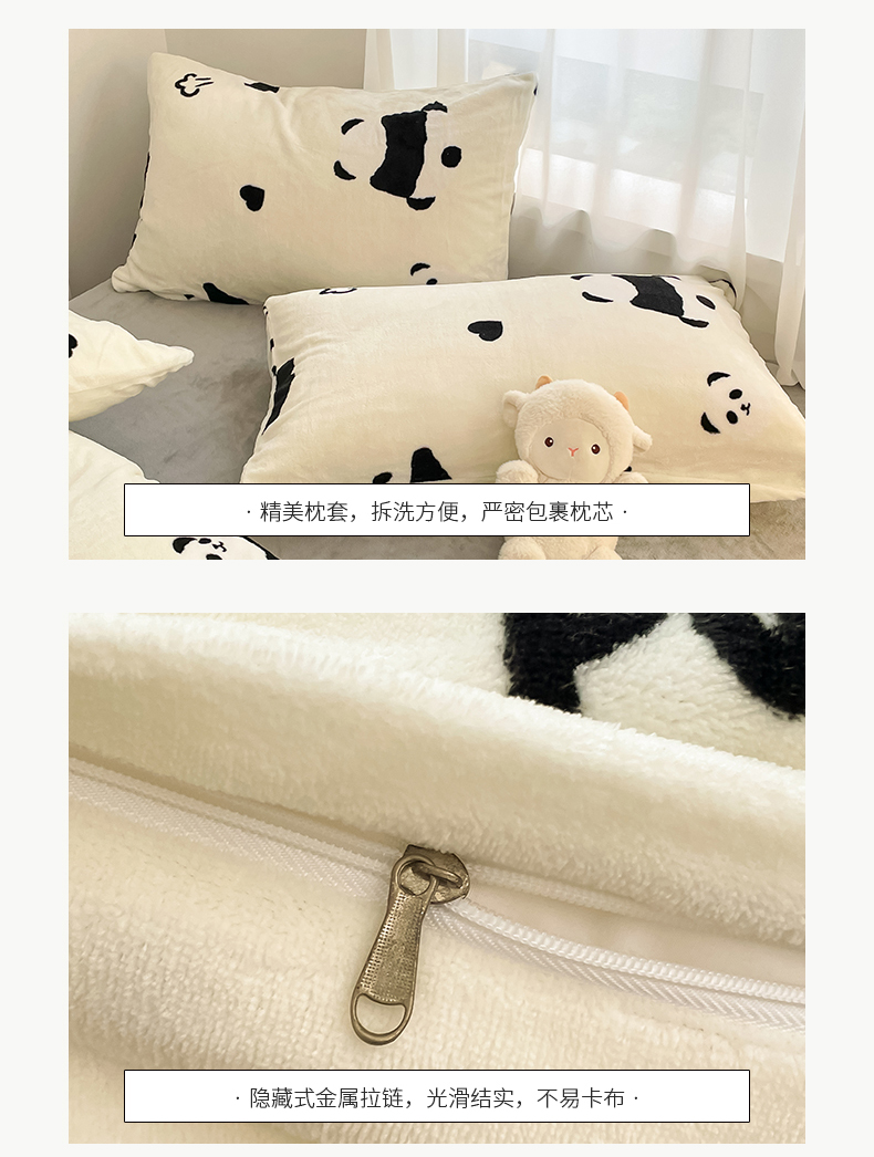 商品名称:桃子 2023新款ins小清新韩系可爱卡通奶油兔子加厚牛奶绒系列四件套详情第三批 绒-熊猫墩墩奶白