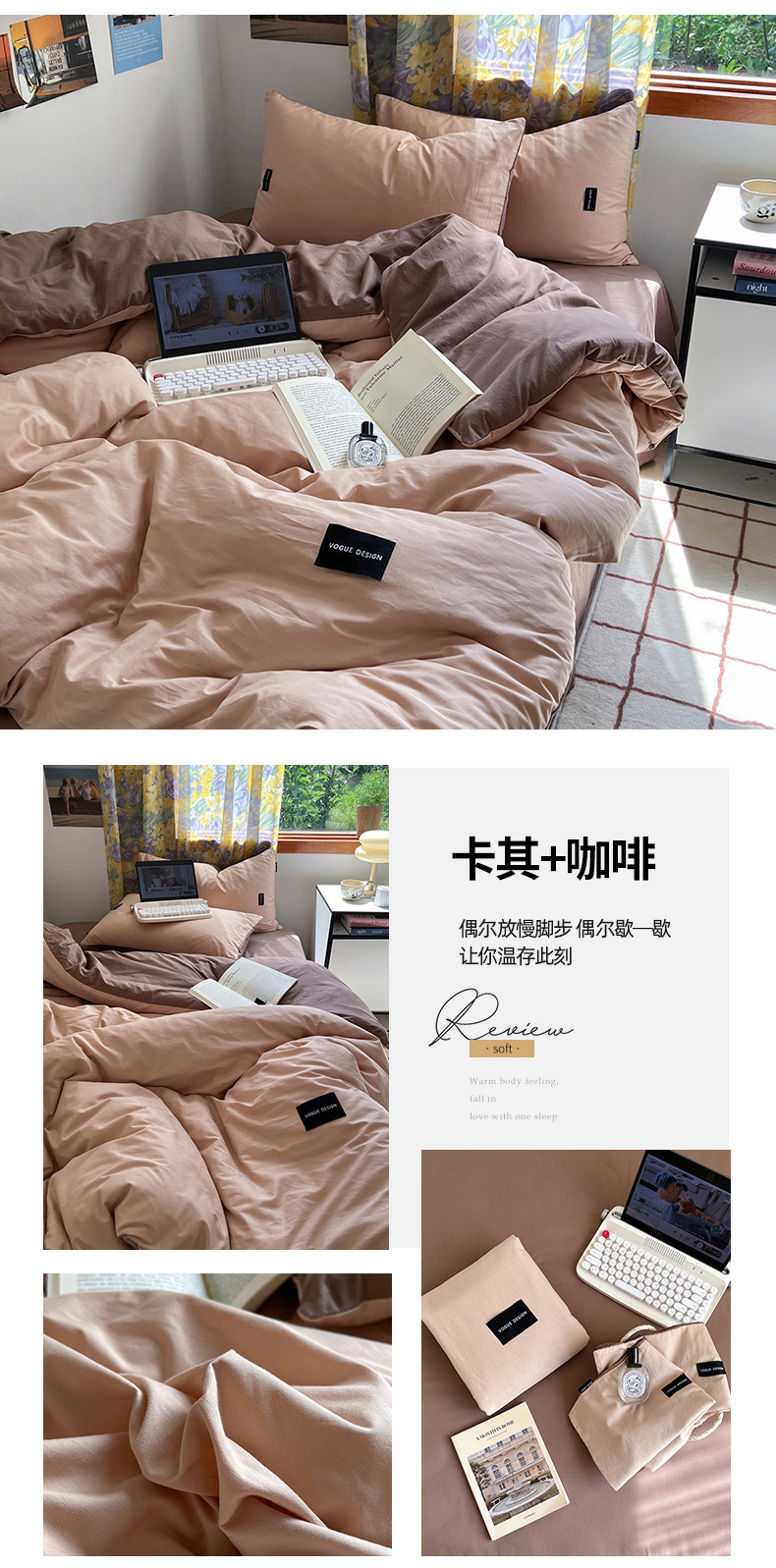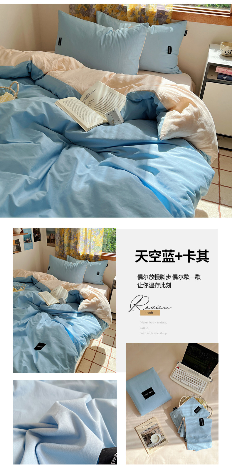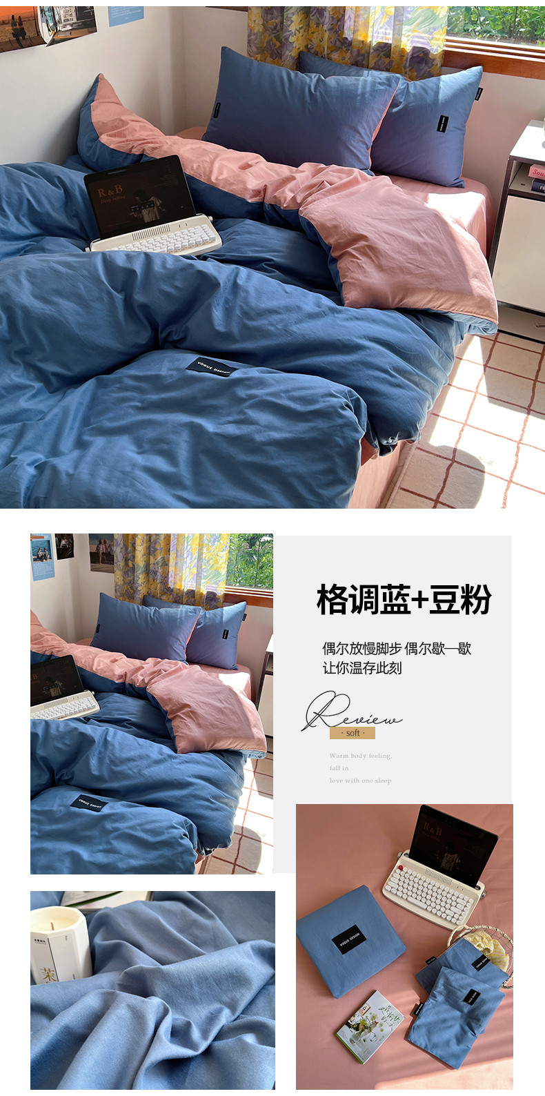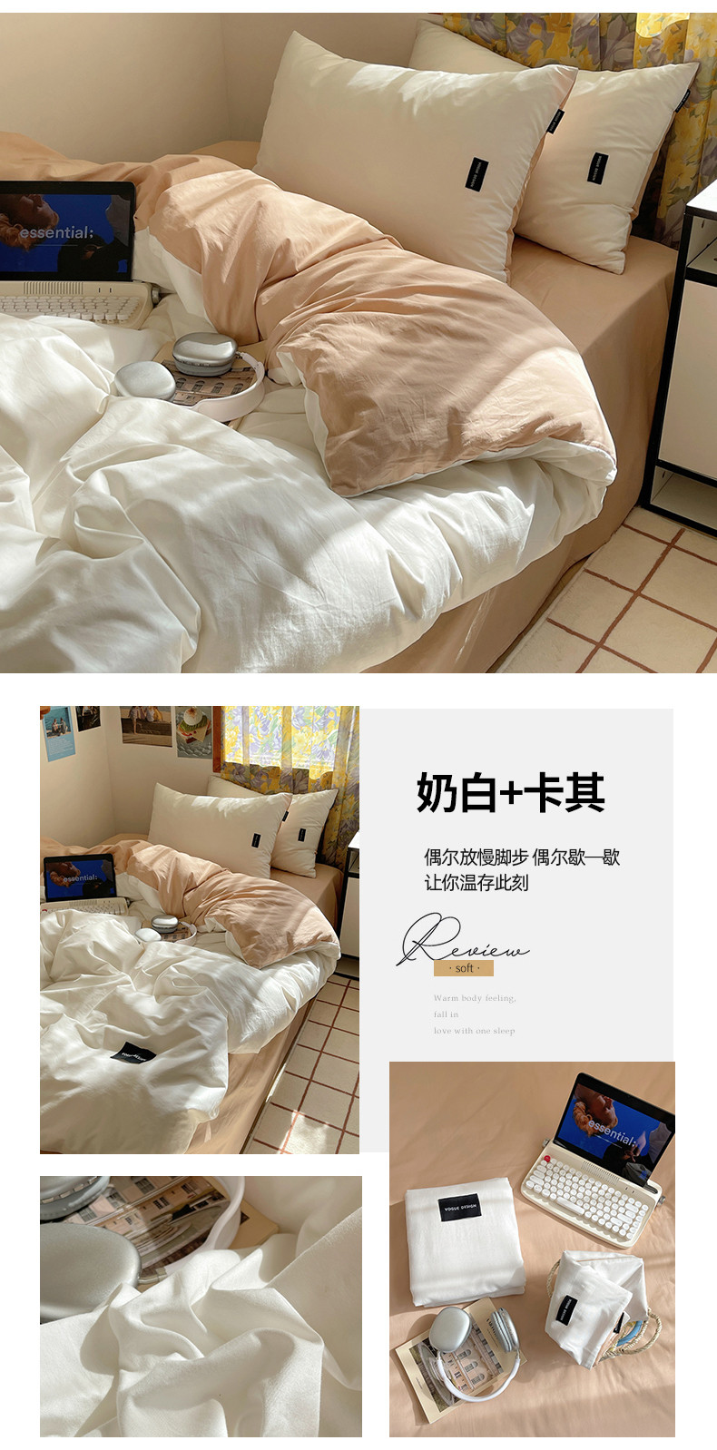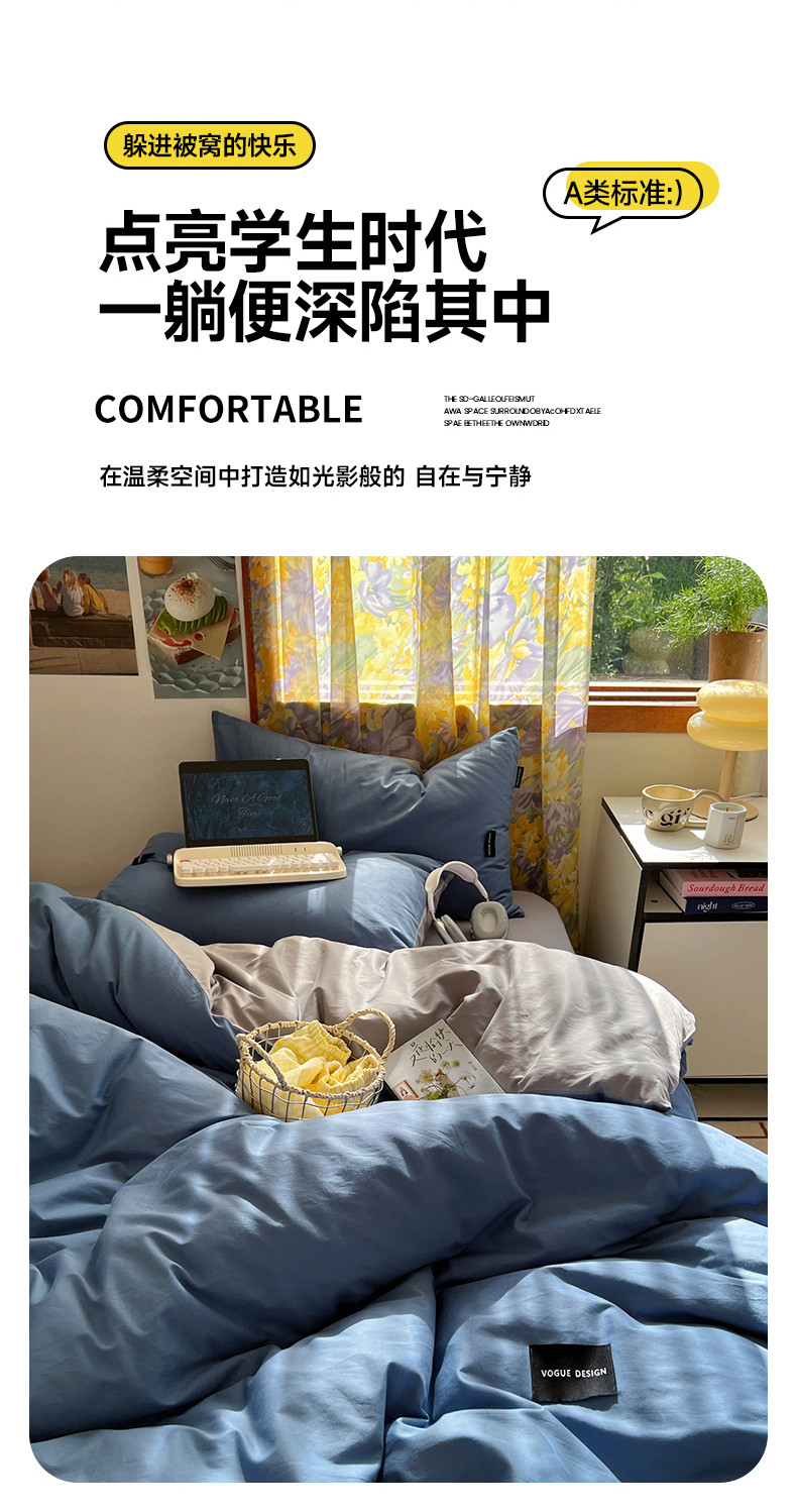 (总)佰亿莱 2024新款全棉无印风水洗棉学生宿舍三件套四件套 图片二,豆粉+仙女粉,格调蓝+摩卡灰,格调紫+仙女粉,卡其+咖啡,摩卡灰,摩卡灰+卡其,摩卡灰+奶咖,奶白+卡其,青草绿+奶黄,天空蓝+卡其,香草绿+格调紫,芝士蓝+奶黄