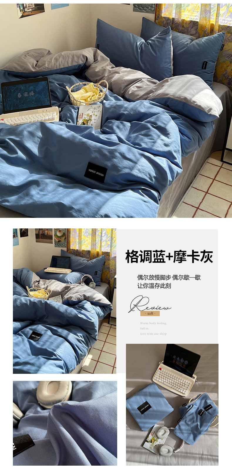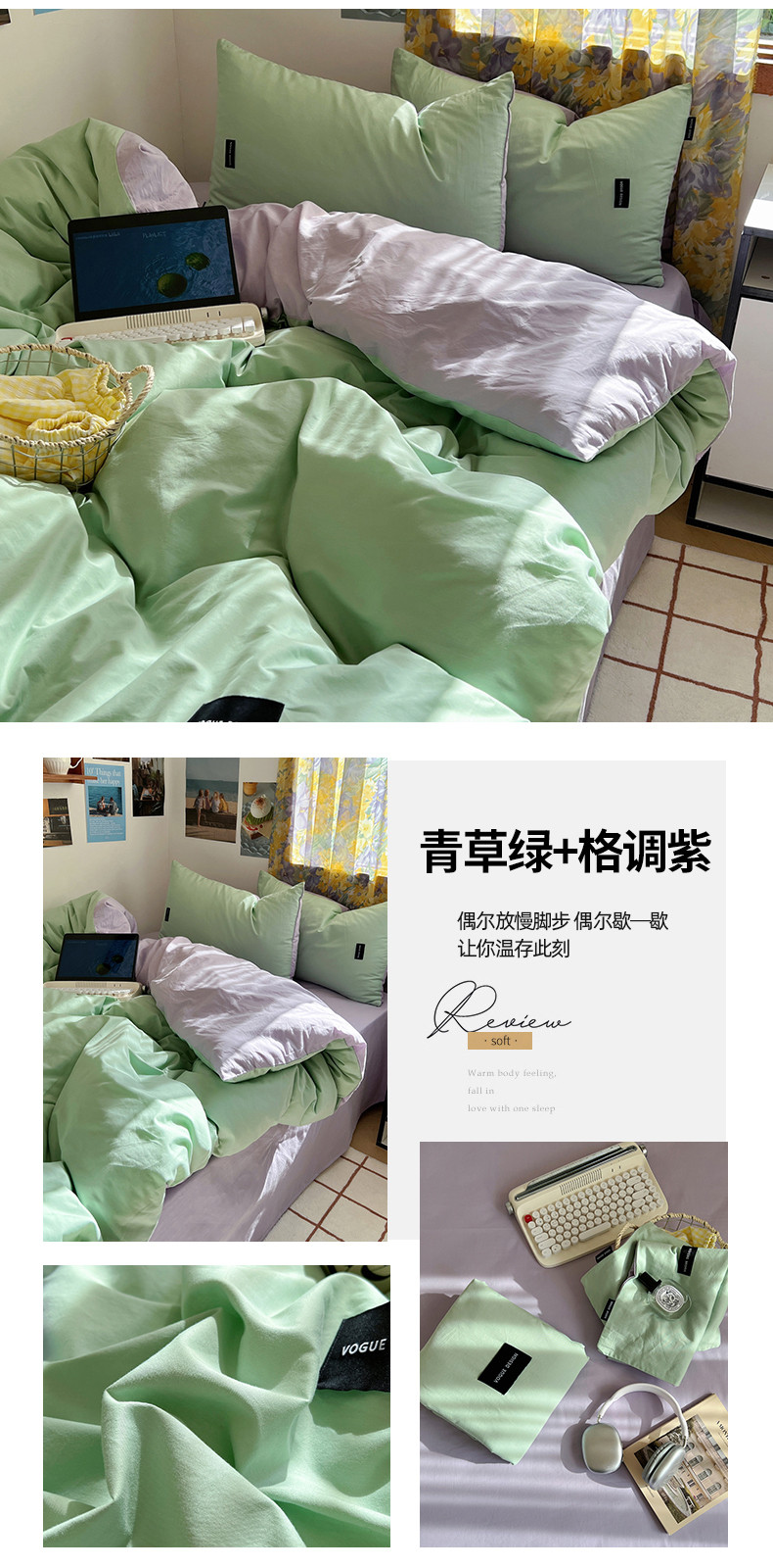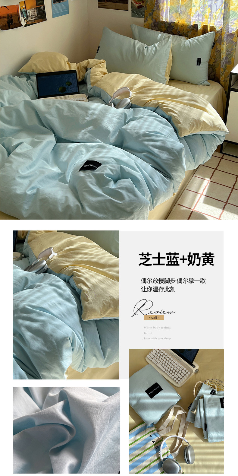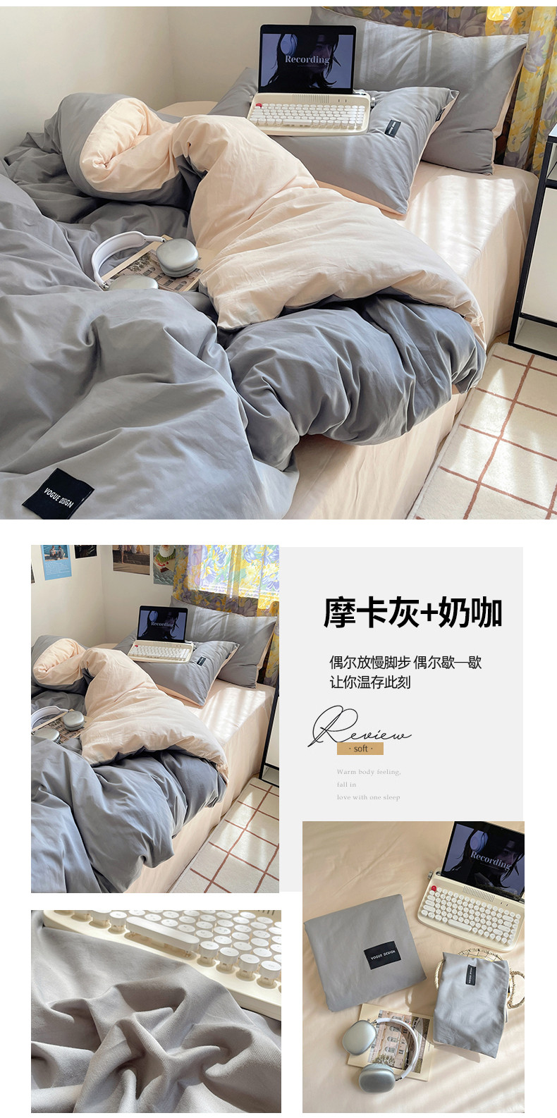 (总)佰亿莱 2024新款全棉无印风水洗棉学生宿舍三件套四件套 图片二,豆粉+仙女粉,格调蓝+摩卡灰,格调紫+仙女粉,卡其+咖啡,摩卡灰,摩卡灰+卡其,摩卡灰+奶咖,奶白+卡其,青草绿+奶黄,天空蓝+卡其,香草绿+格调紫,芝士蓝+奶黄