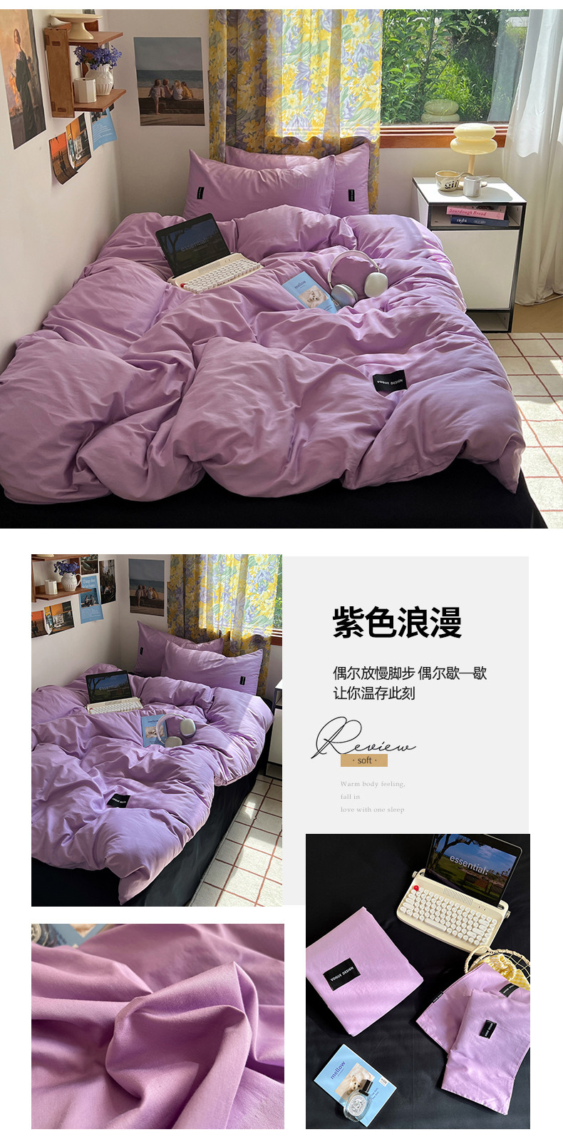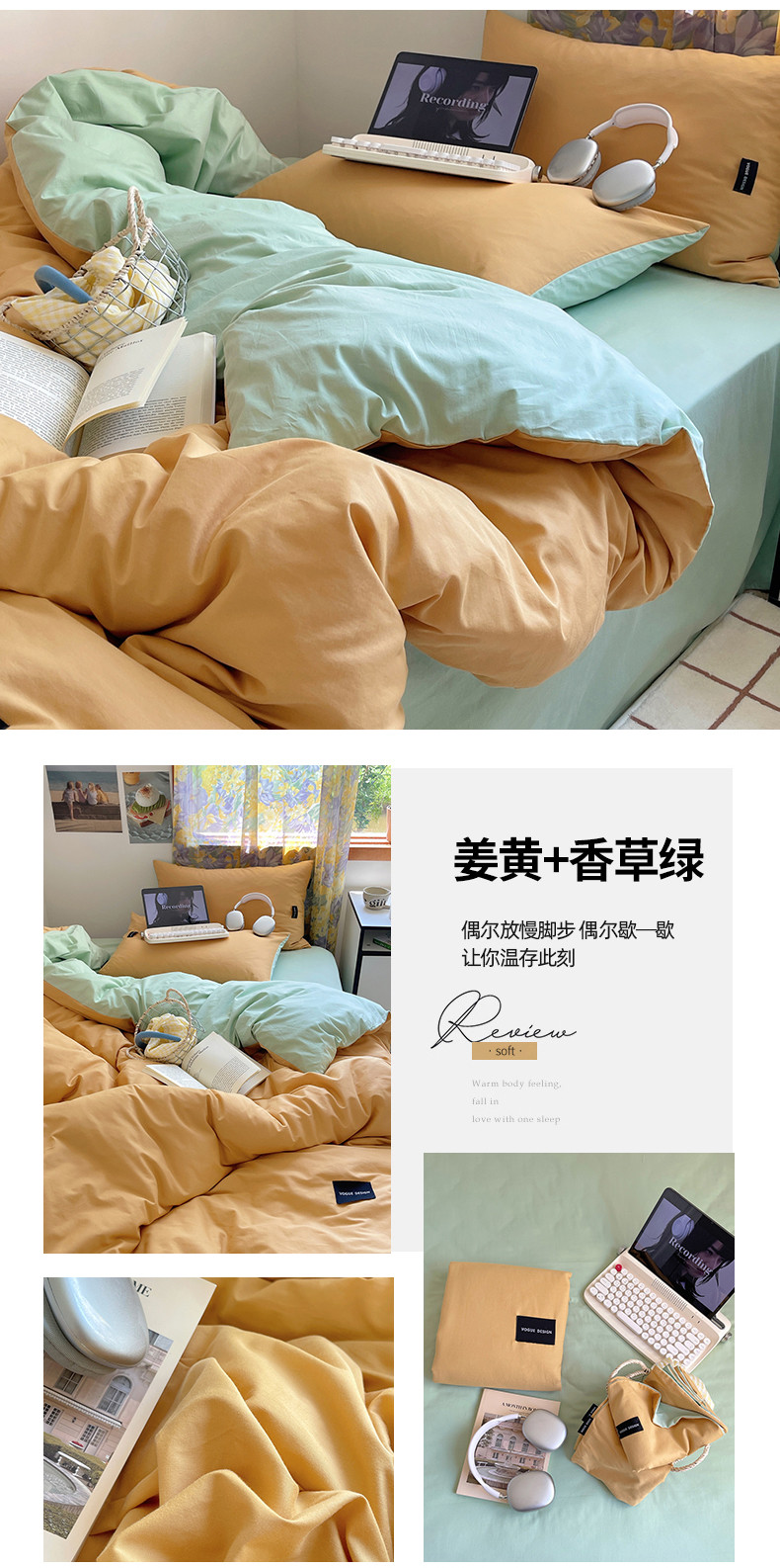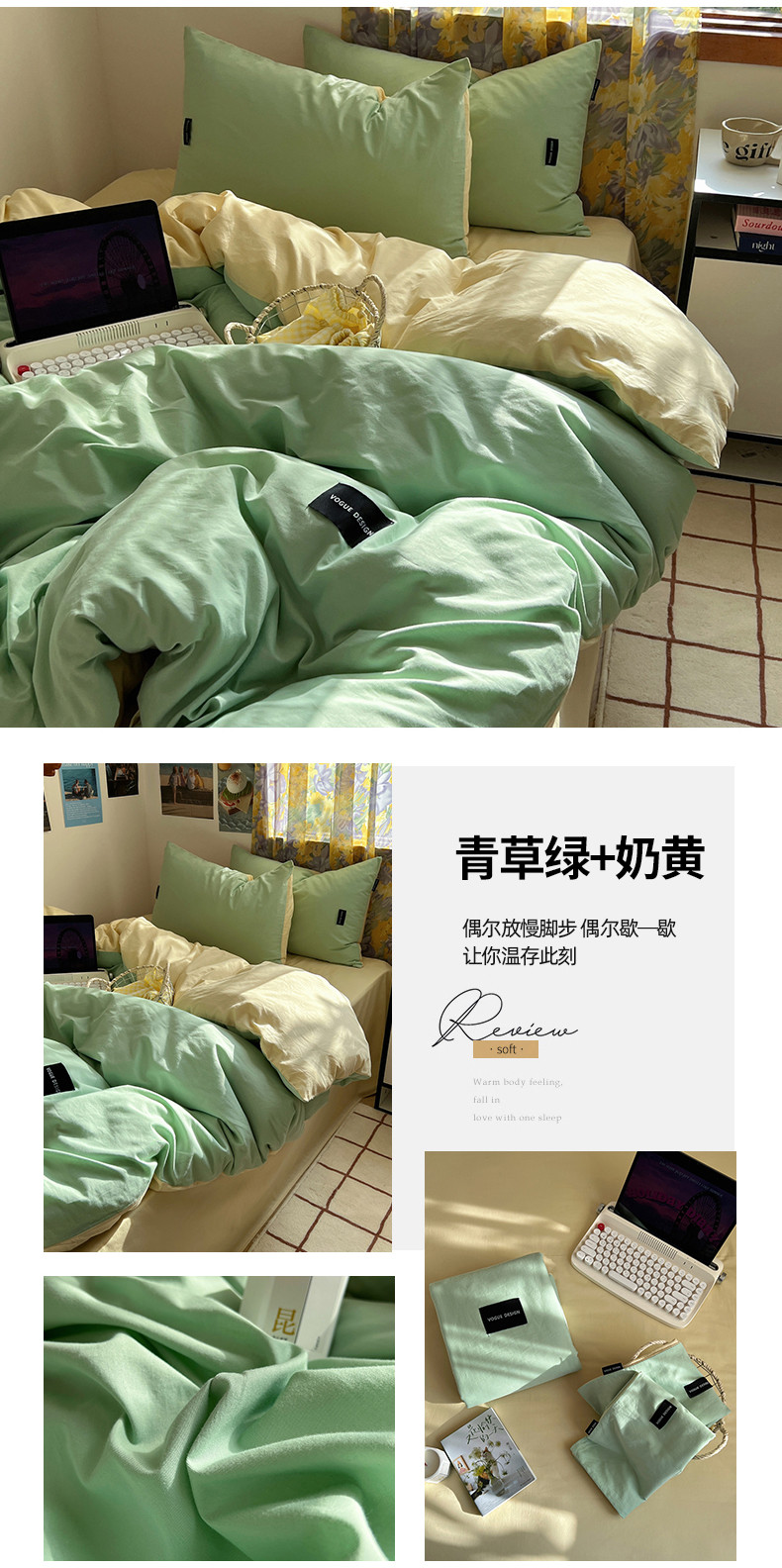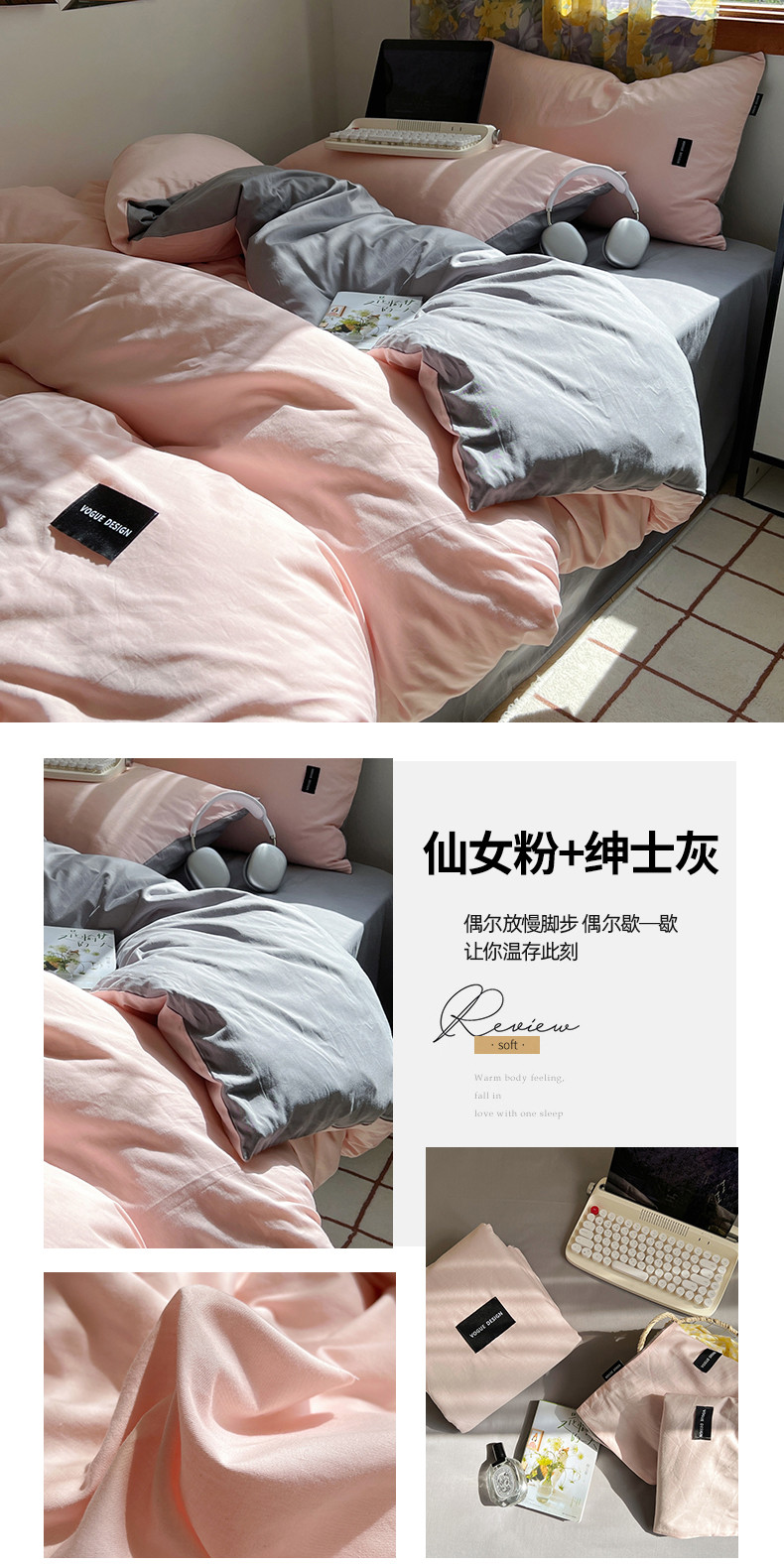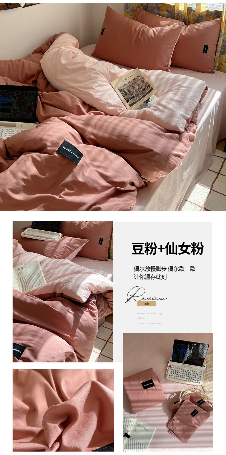 (总)佰亿莱 2024新款全棉无印风水洗棉学生宿舍三件套四件套 图片二,豆粉+仙女粉,格调蓝+摩卡灰,格调紫+仙女粉,卡其+咖啡,摩卡灰,摩卡灰+卡其,摩卡灰+奶咖,奶白+卡其,青草绿+奶黄,天空蓝+卡其,香草绿+格调紫,芝士蓝+奶黄