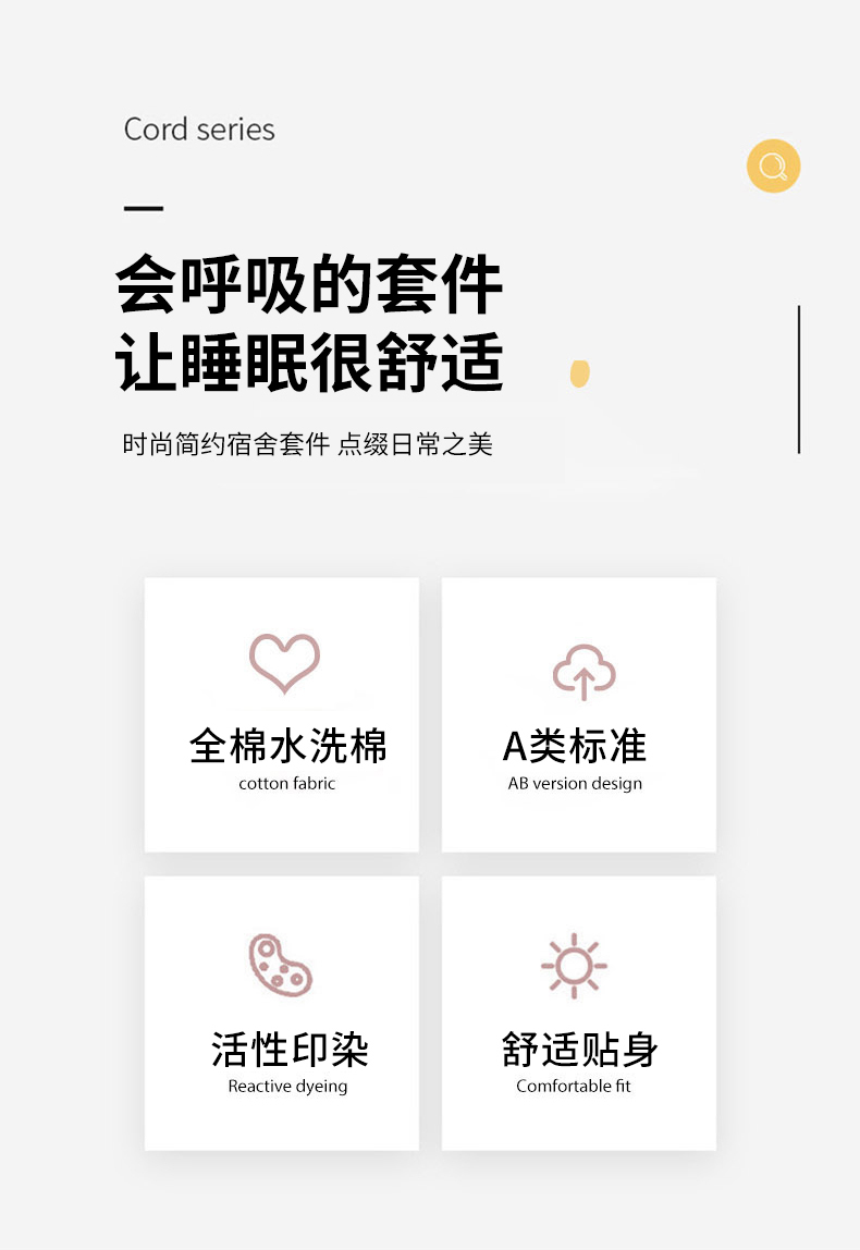 商品名称:(总)佰亿莱 2024新款全棉无印风水洗棉学生宿舍三件套四件套