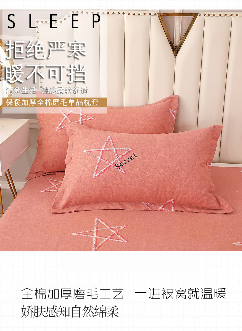 商品名称:晶缦 2023新款典雅系全棉活性磨毛多规格单品四件套-枕套 未来之星粉