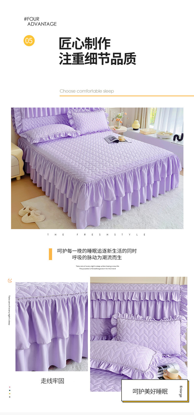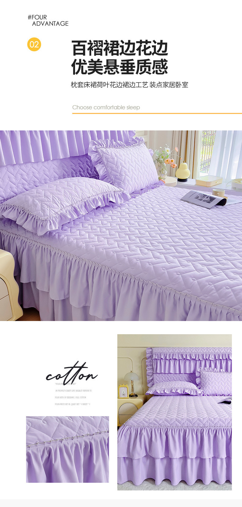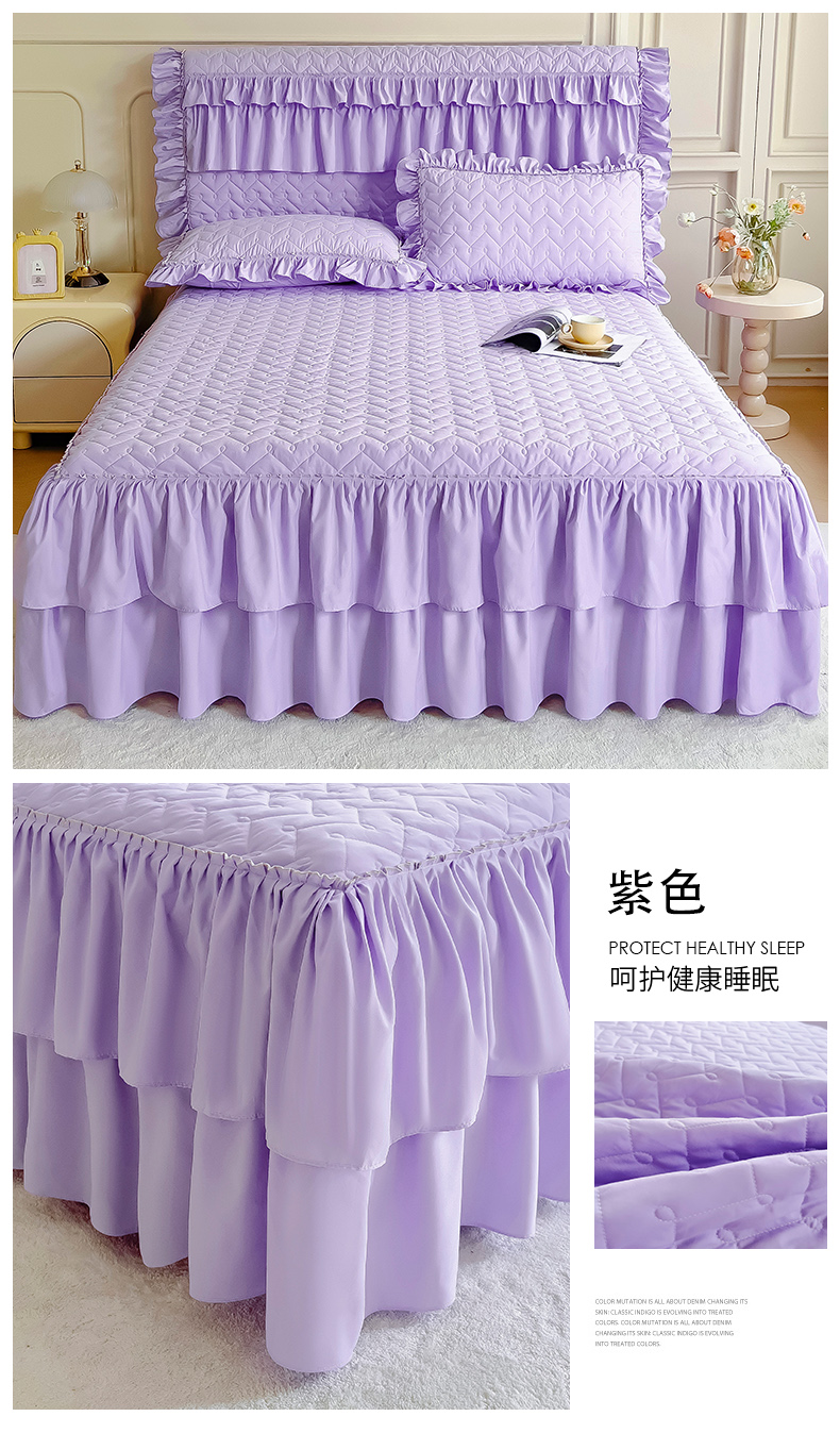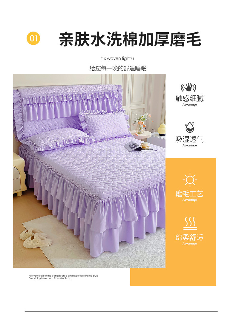 • 91家纺网 家纺一手货源 找家纺 十个点 2024新款水洗棉磨毛星辰单品套件系列单床裙 紫色