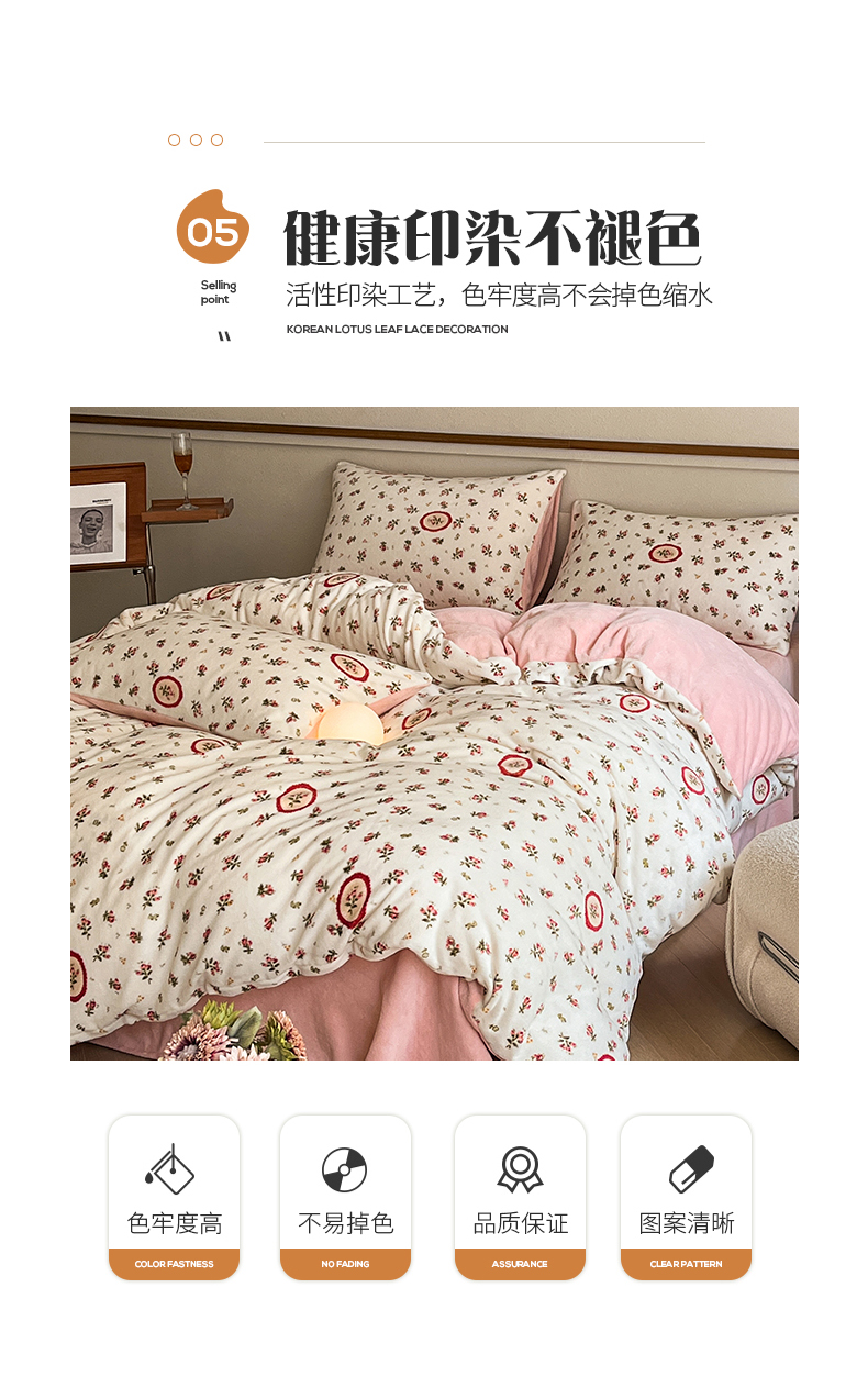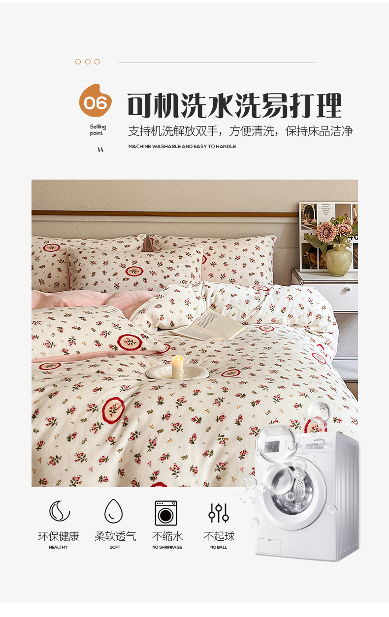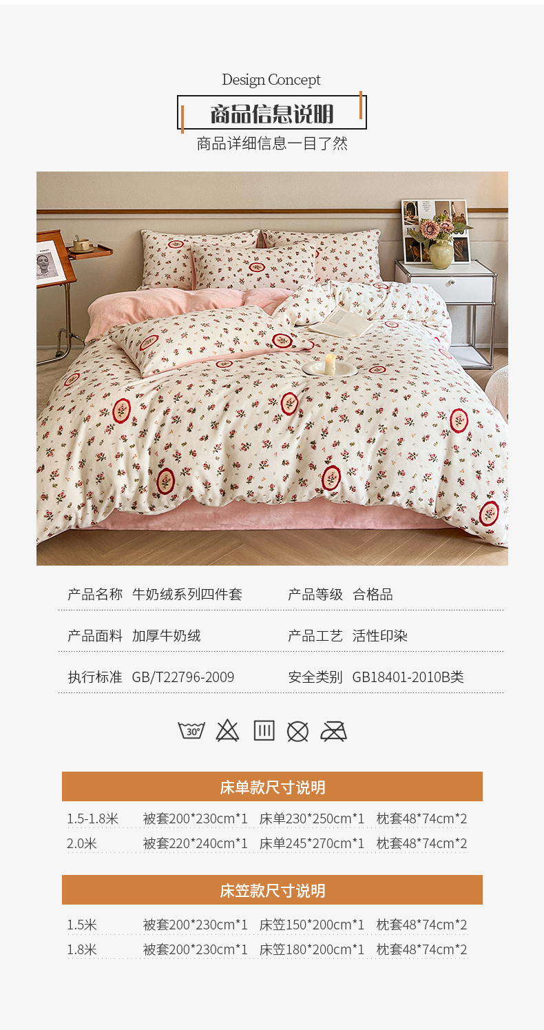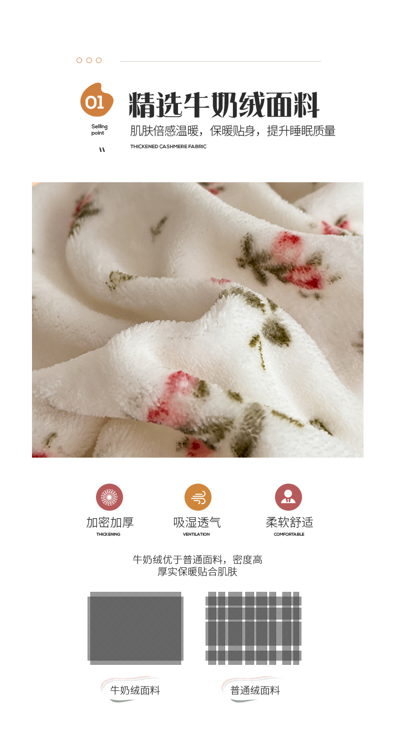桃子家居 2023新款ins法式复古赫本碎花山茶花卉加厚牛奶绒系列四件套 绒-希娅粉