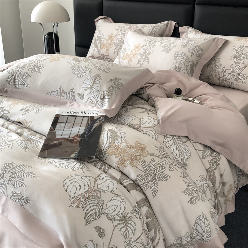 (总)时亿家居 2026新款100支全棉纯棉绣花四件套-至简逸品系列,逸品-粉,逸品-红,逸品-灰,逸品-卡其,逸品-蓝,逸品-香槟