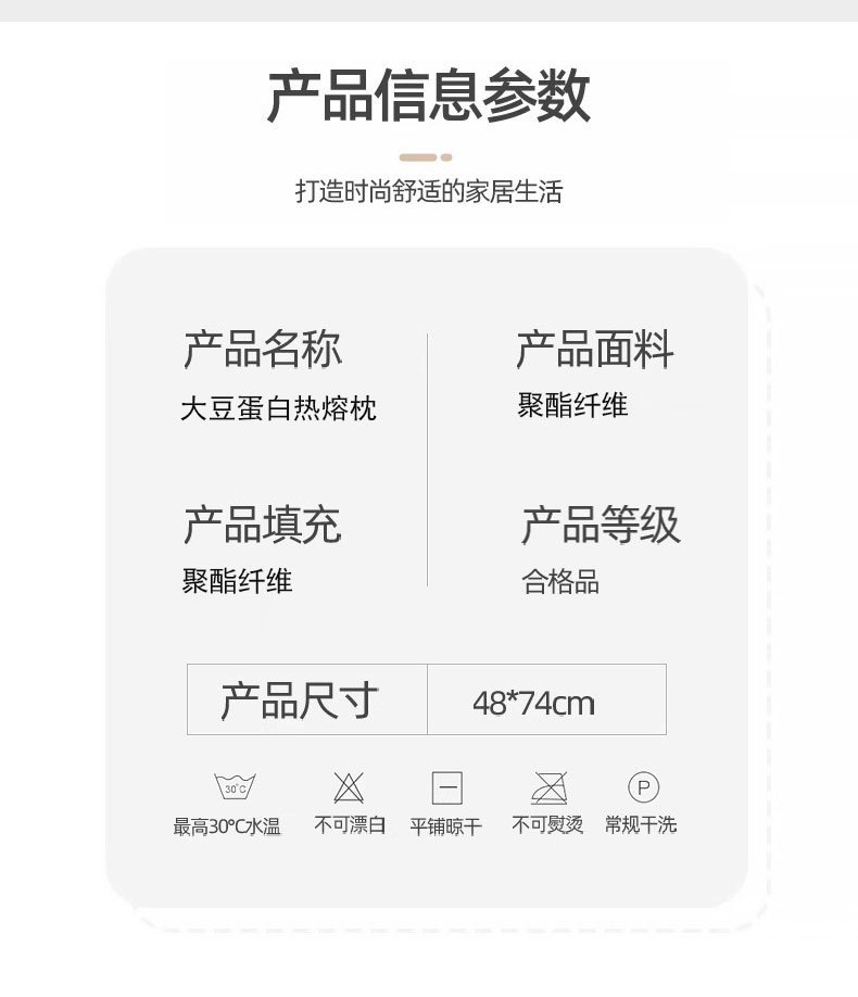 当前位置: 91家纺网 > 商品网购 > 枕头/枕芯/保健枕/颈椎枕 > 普通枕芯 > 枕之坊 2023新款大豆蛋白热熔枕 48*74cm大豆热熔枕灰色