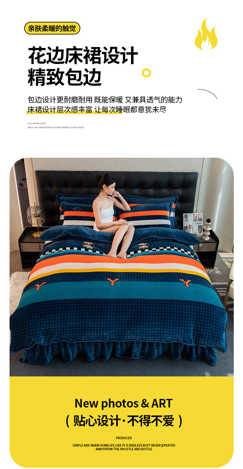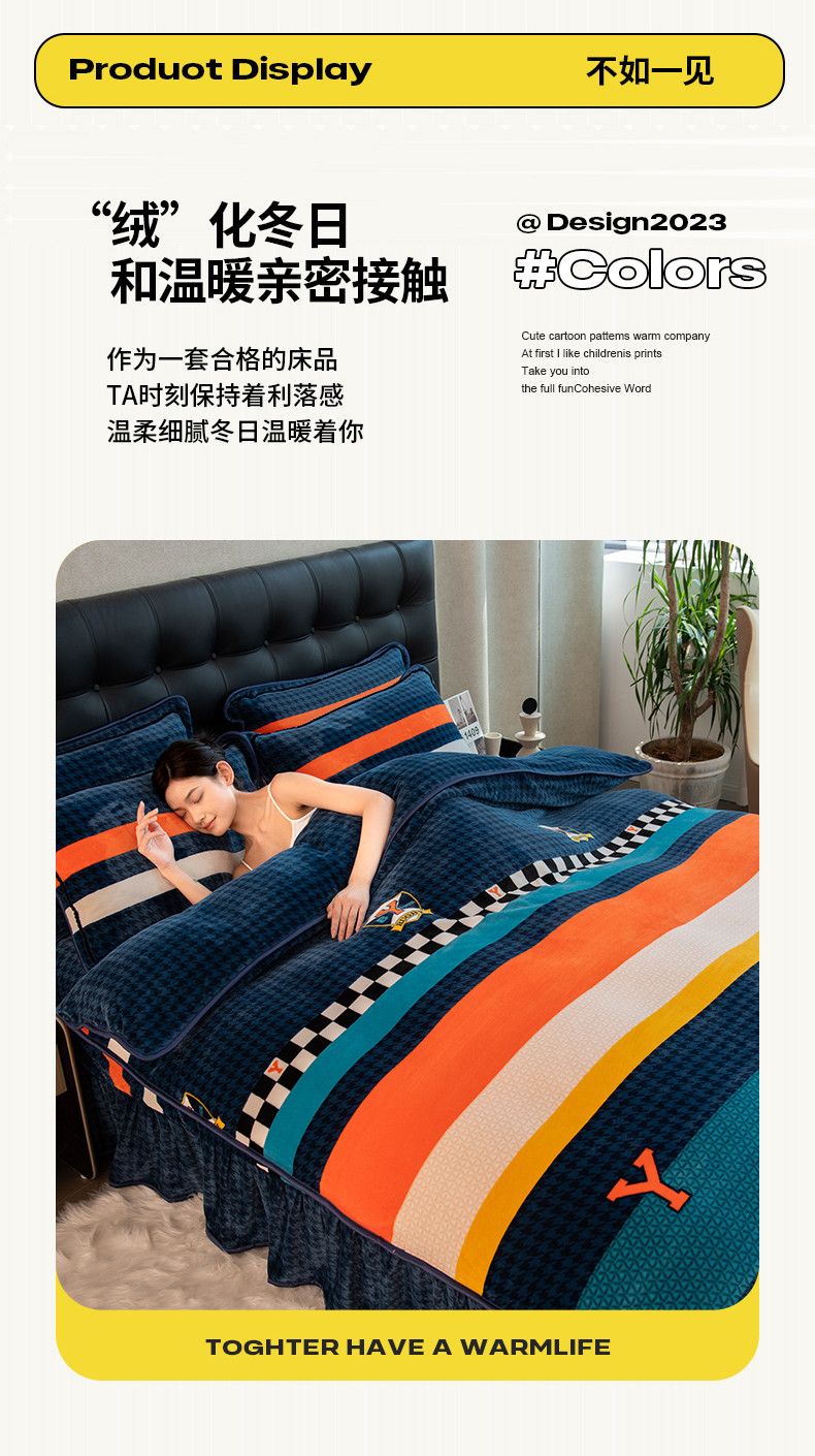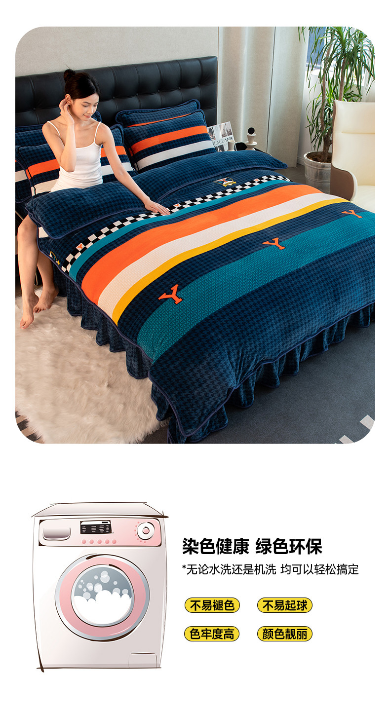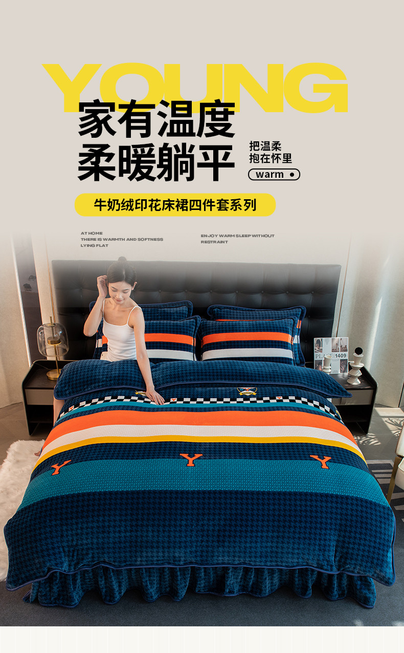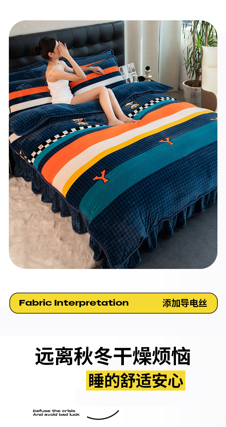 商品名称:2024直播印花8.5斤牛奶绒金貂水晶法莱珊瑚绒四件套床裙款 字母Y