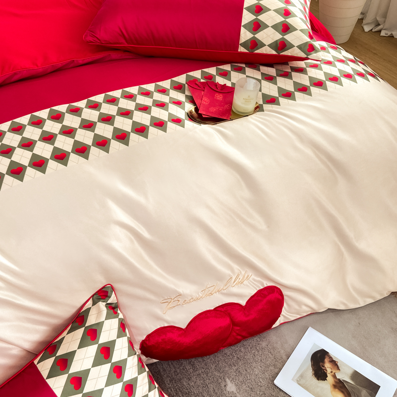 (总)用心 2022新款数码印花婚庆四件套-克里斯汀,克里斯汀