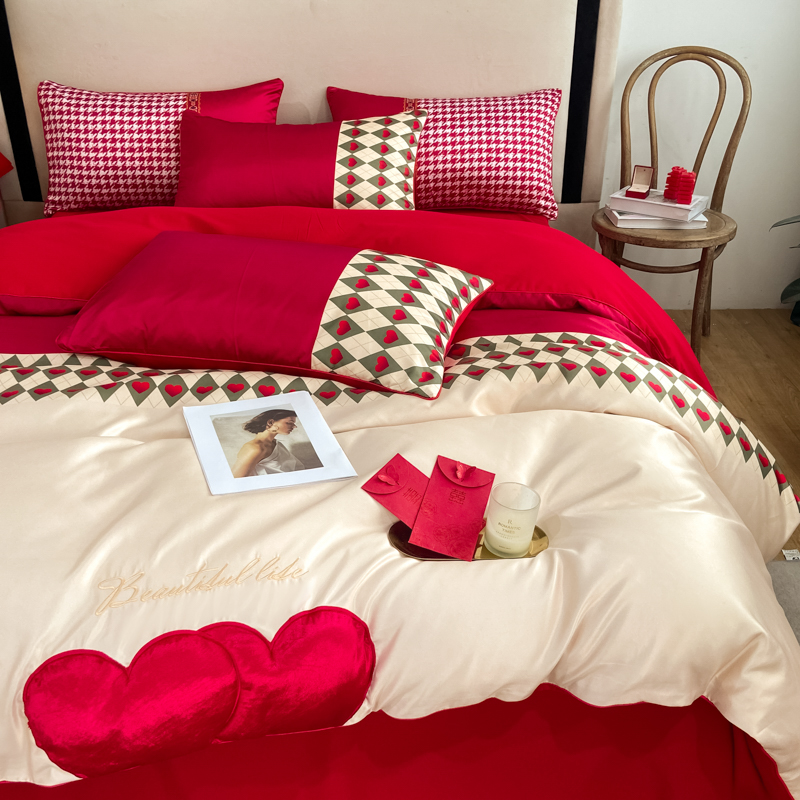 (总)用心 2022新款磨毛刺绣婚庆四件套,今生缘,甜蜜love,喜迎圆满