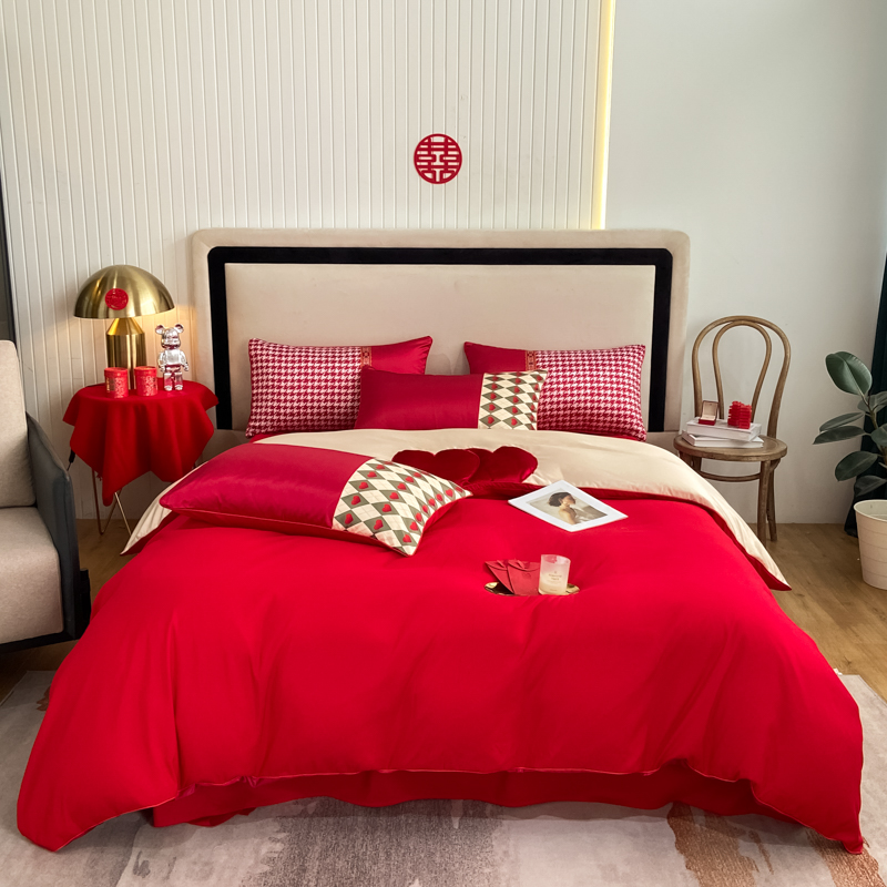(总)用心 2026年新款双面长绒棉提花婚庆刺绣四件套,喜上喜,禧爱,吉祥