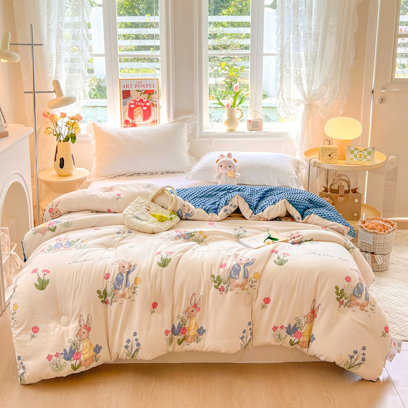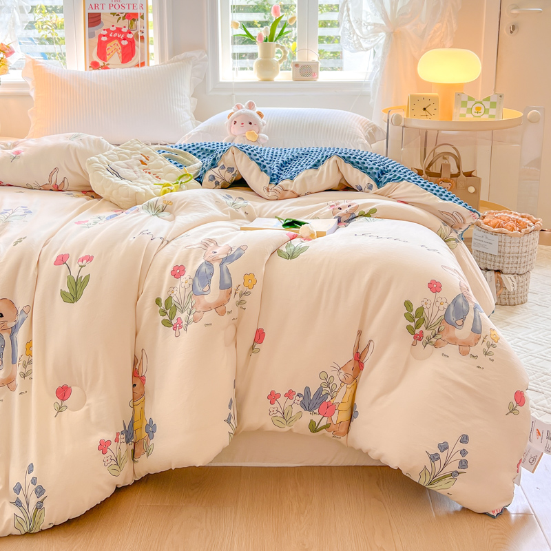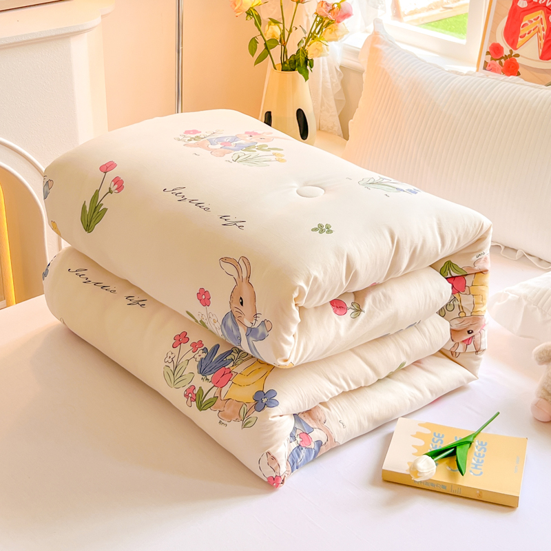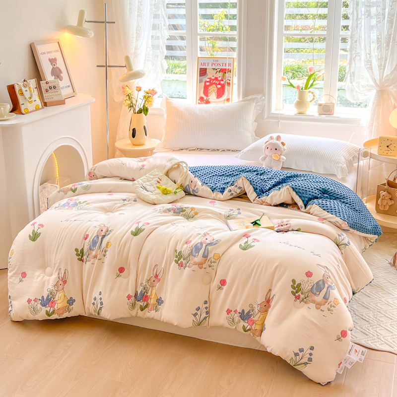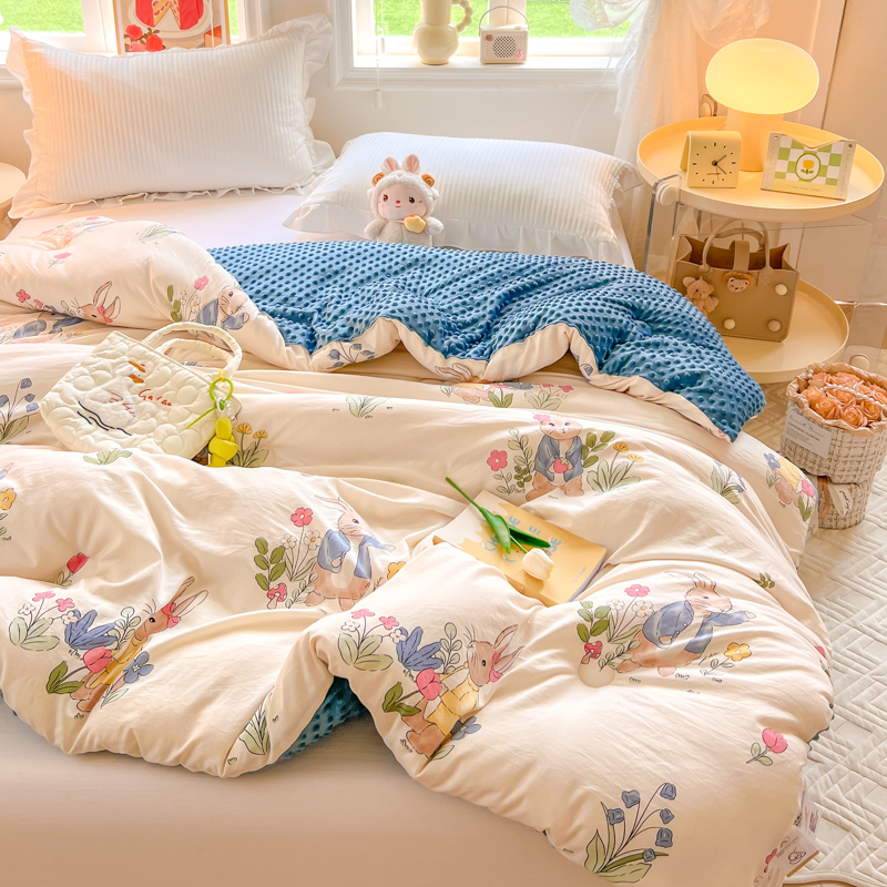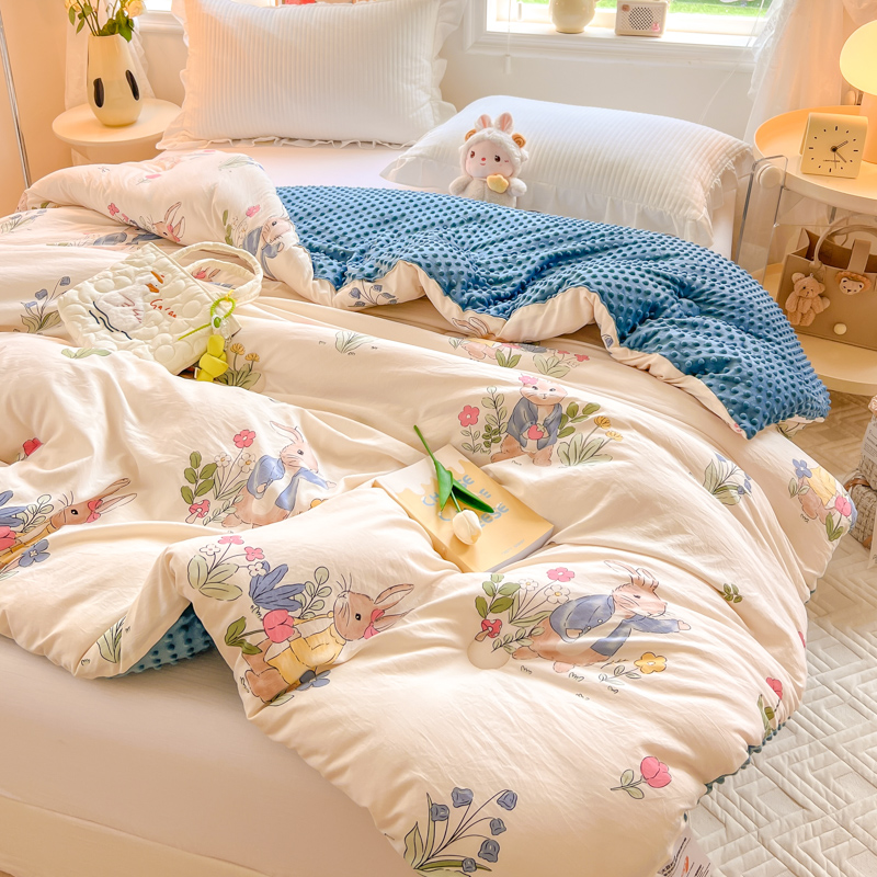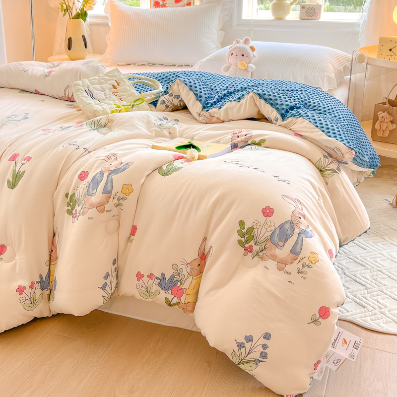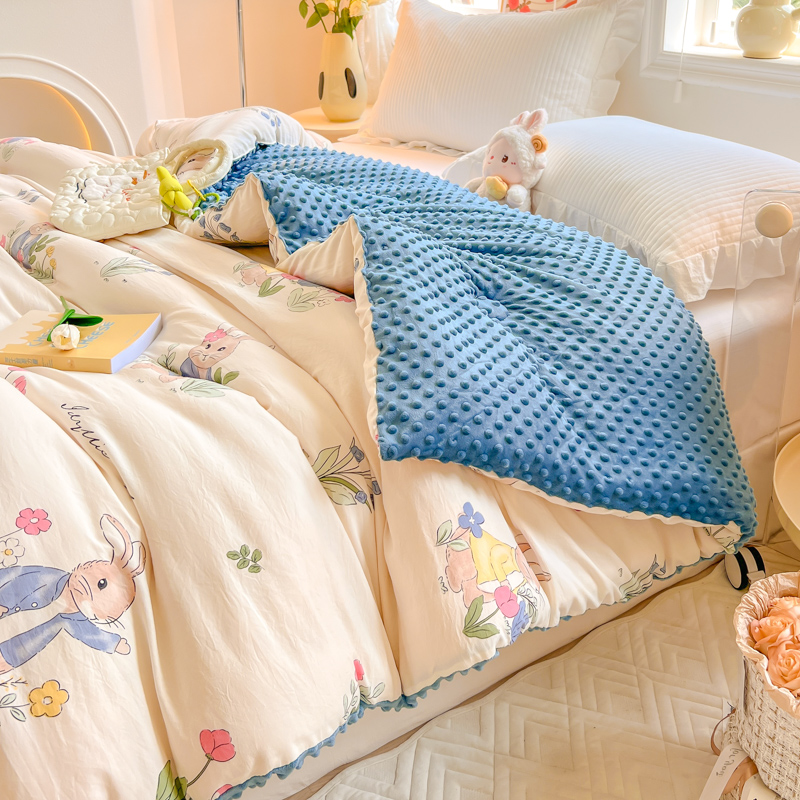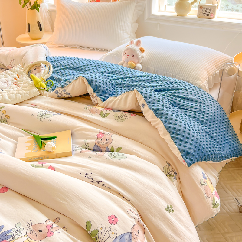 • 91家纺网 家纺一手货源 找家纺 居易简 2025新款水洗棉双层纱豆豆被加绒被子被芯直播豆豆绒被被子被芯冬被春秋被 兔sweet
