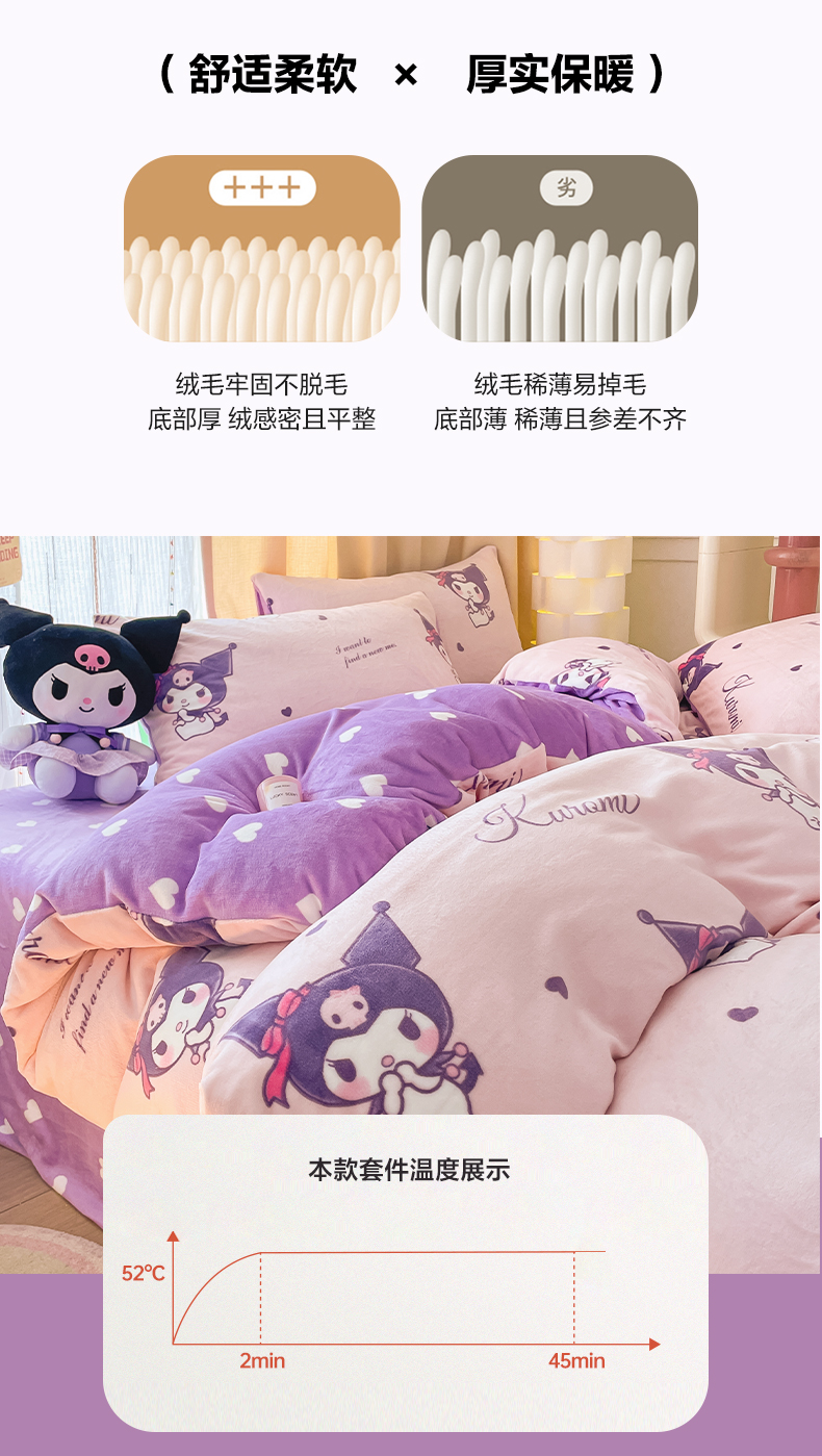 当前位置: 91家纺网 > 商品网购 > 床品套件 > 四件套 > 牛奶绒四件套 > 博雅 2023新款三丽鸥正版授权卡通加厚牛奶绒系列四件套库洛米之心-专版