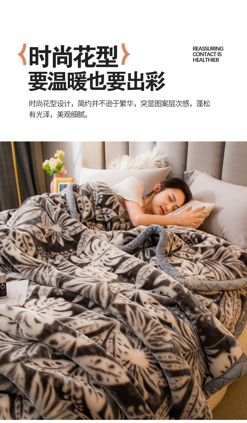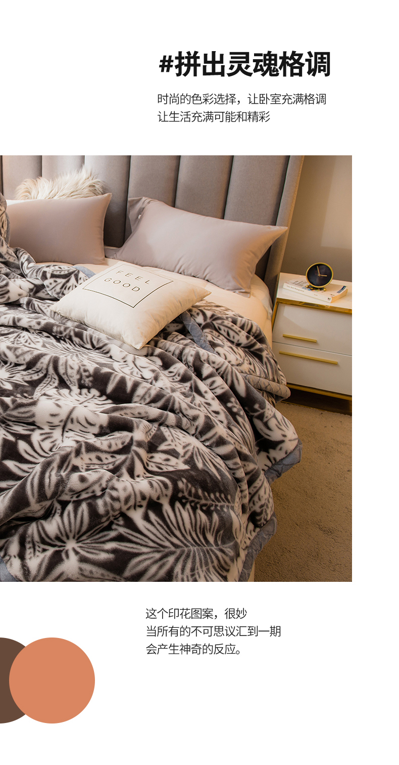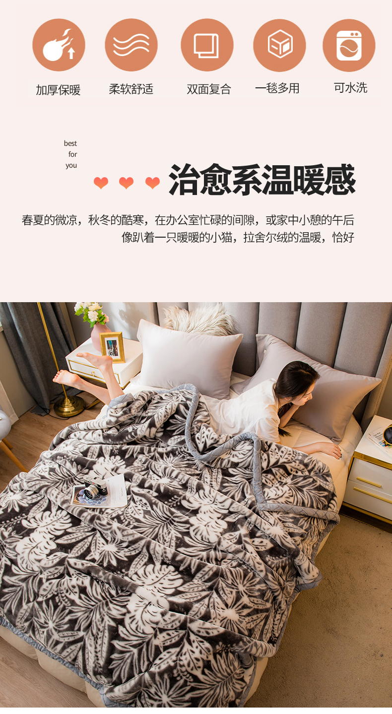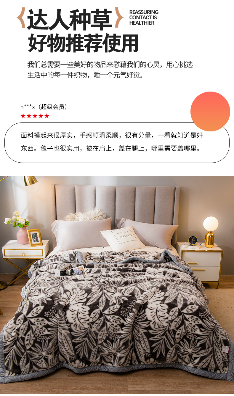 商品名称:航途席业 2025新款拉舍尔毛毯盖毯 叶语芊芊-灰