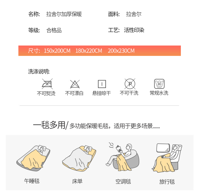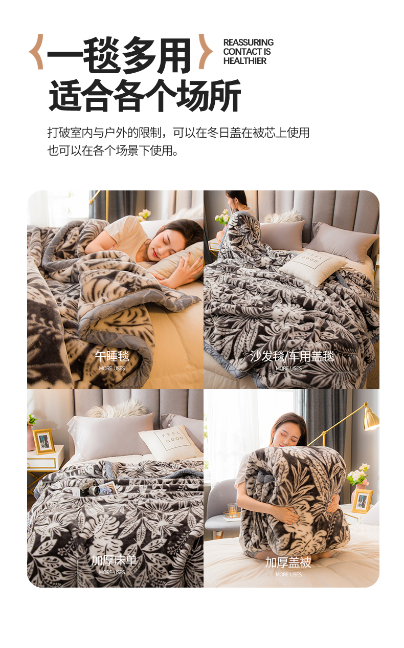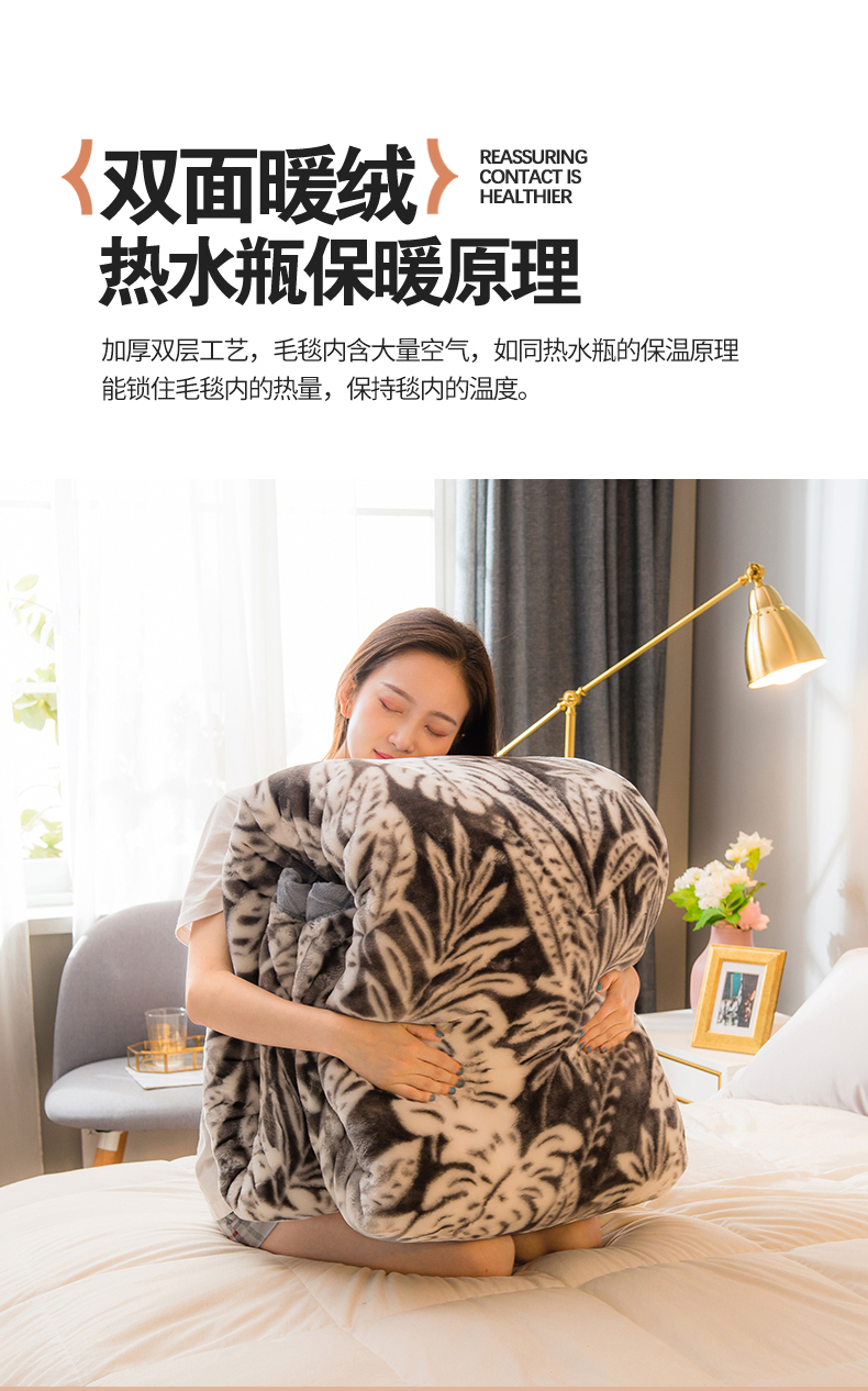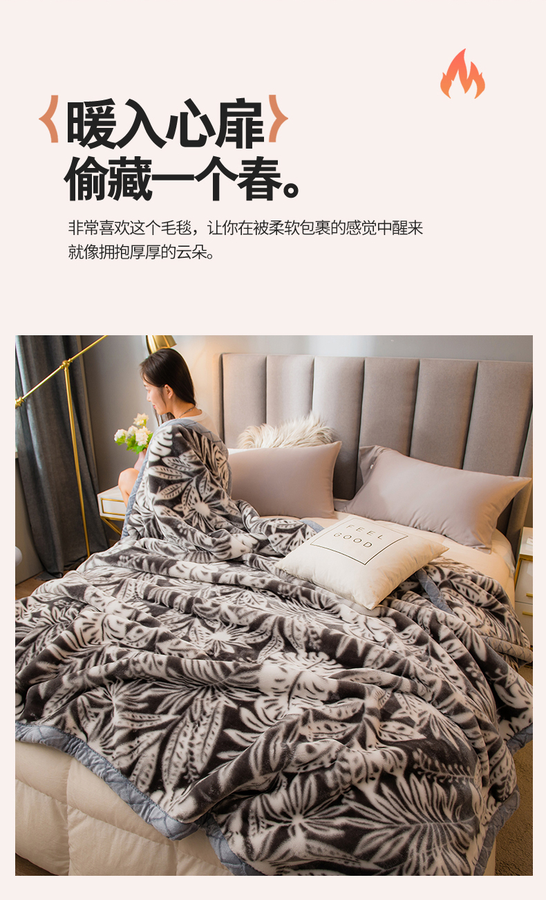 商品名称:航途席业 2025新款拉舍尔毛毯盖毯 叶语芊芊-灰