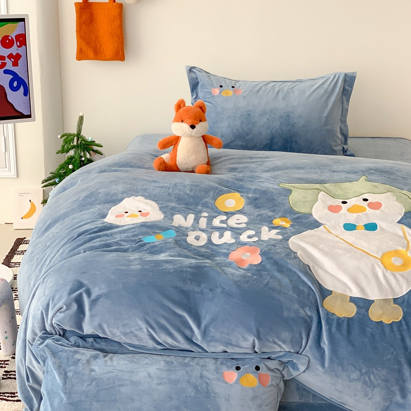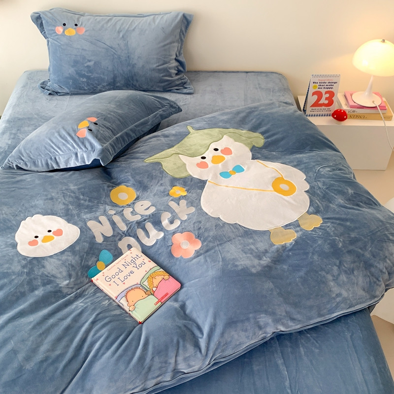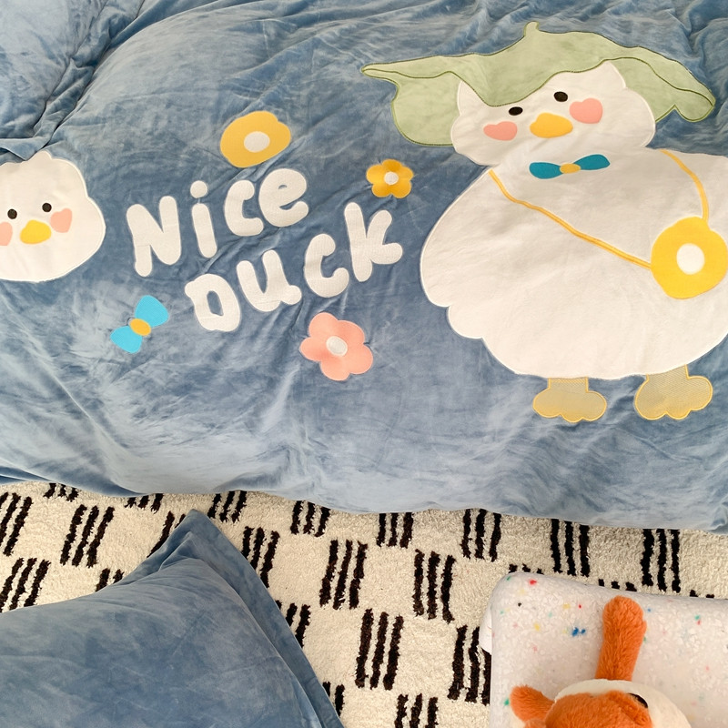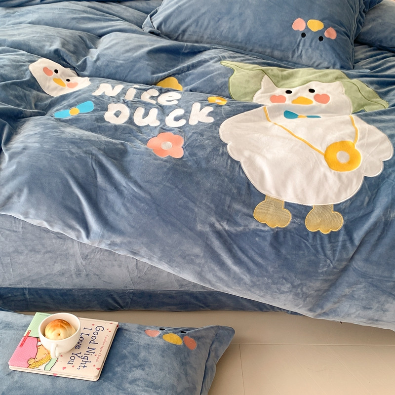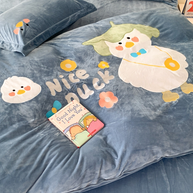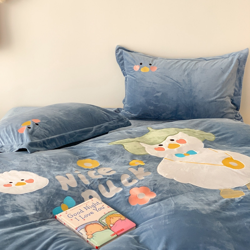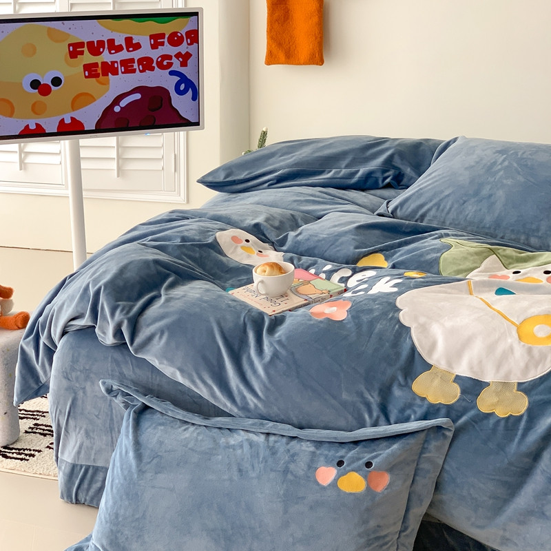 星期八 2023新款牛奶绒贴布绣四件套 小鸭子