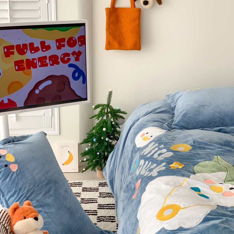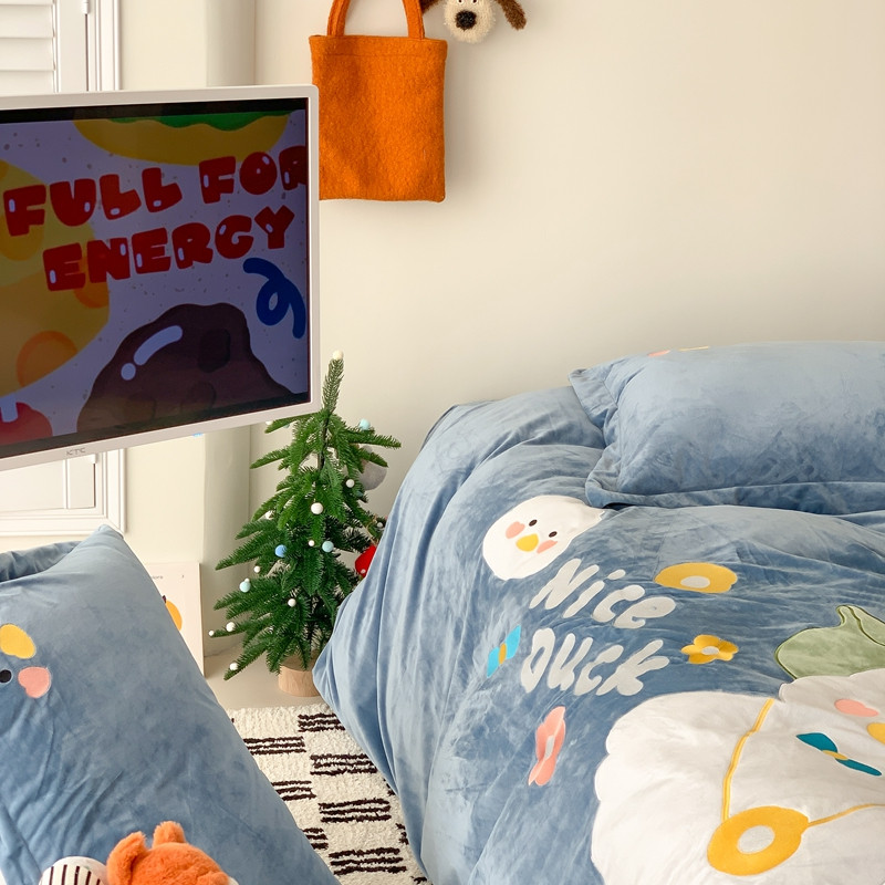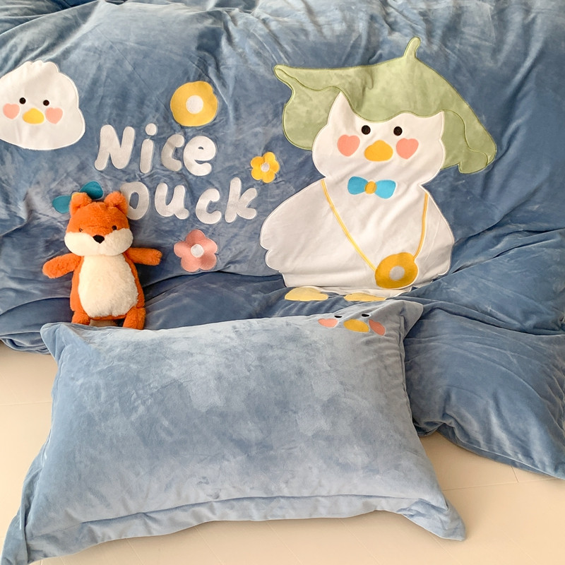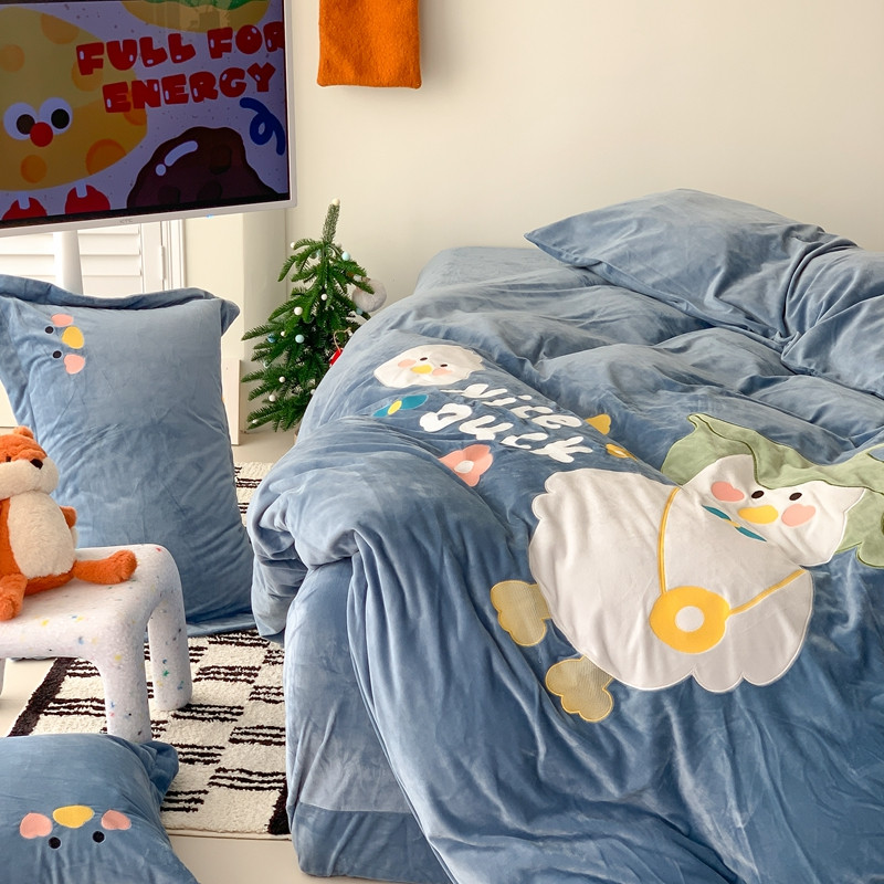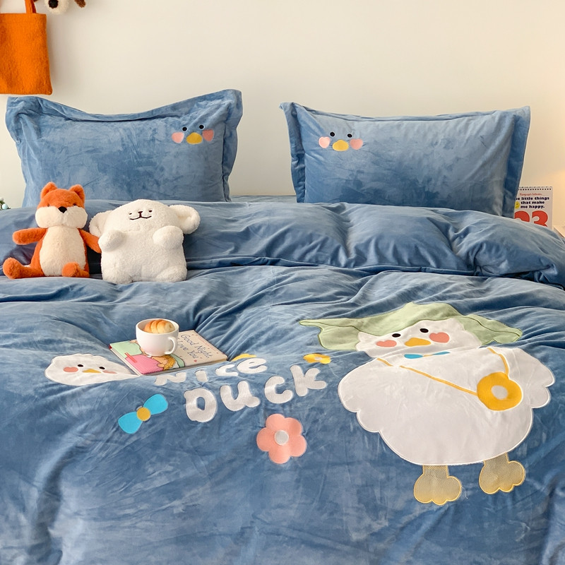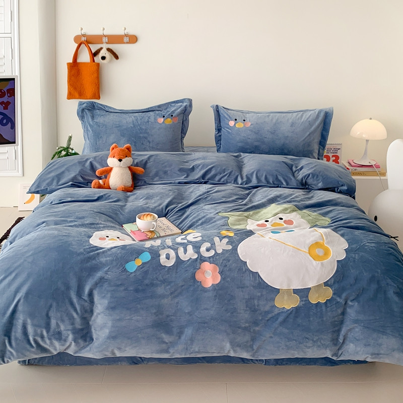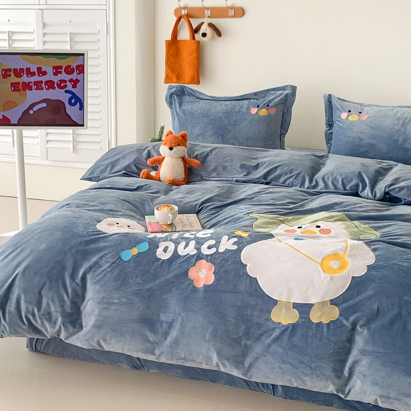 星期八 2023新款牛奶绒贴布绣四件套 小鸭子