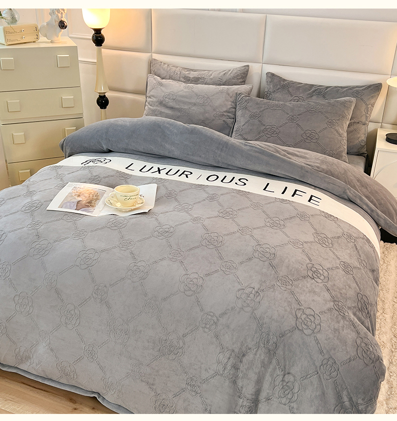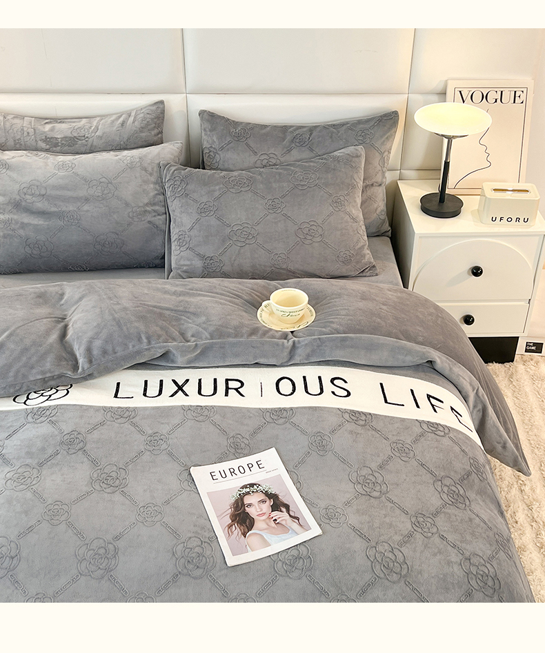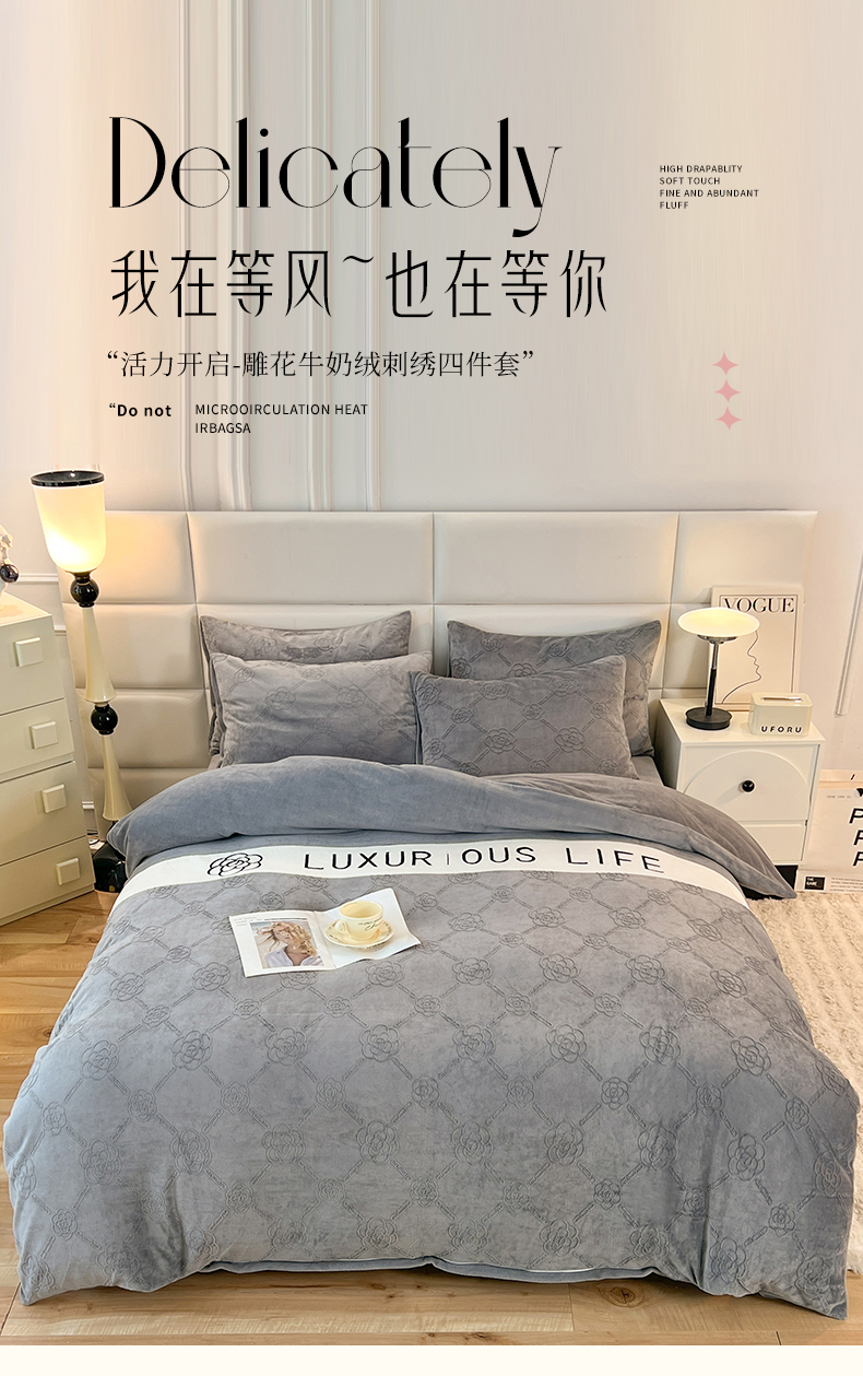 (总)绒兔兔 2023新款雕花烂花牛奶绒刺绣四件套 克洛伊系列,克洛伊-碧绿,克洛伊-粉色,克洛伊-果绿,克洛伊-灰色,克洛伊-卡其,克洛伊-奶白