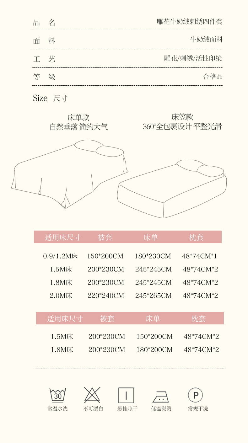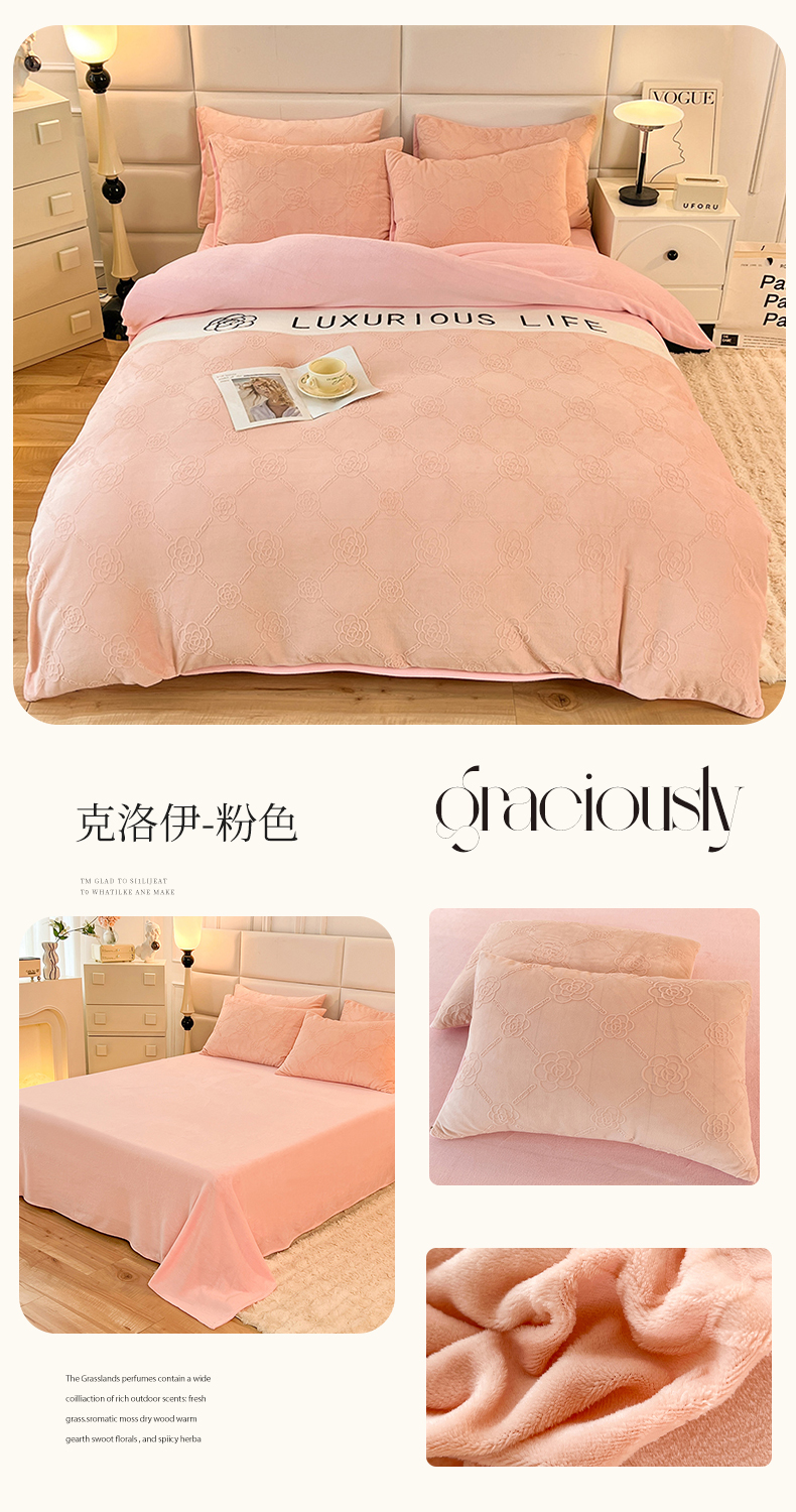商品名称:绒兔兔 2023新款雕花烂花牛奶绒刺绣四件套 克洛伊系列 克洛伊-粉色