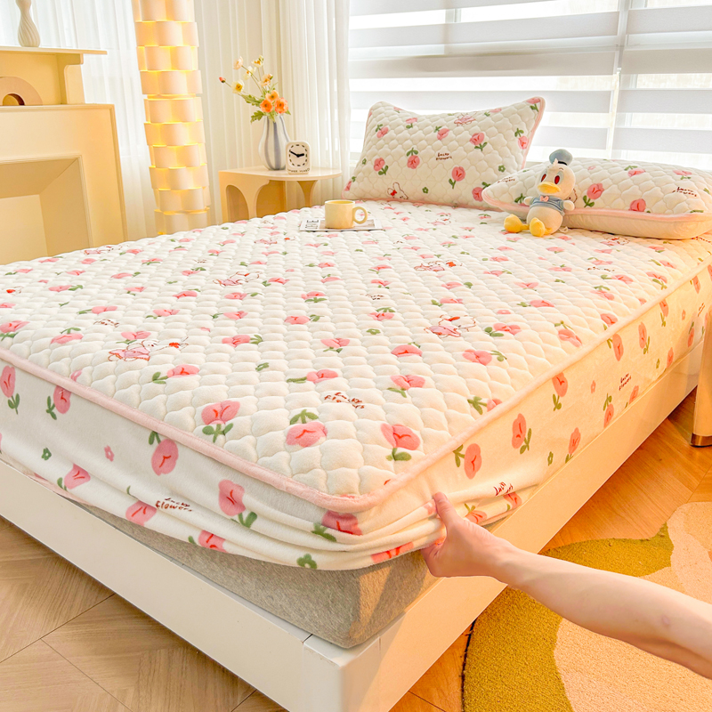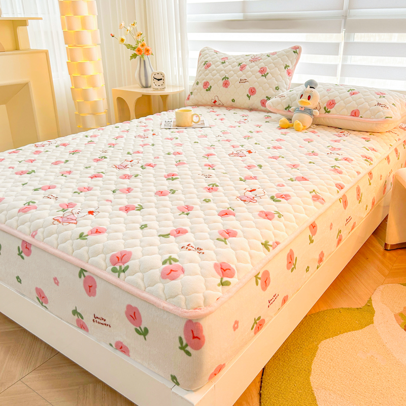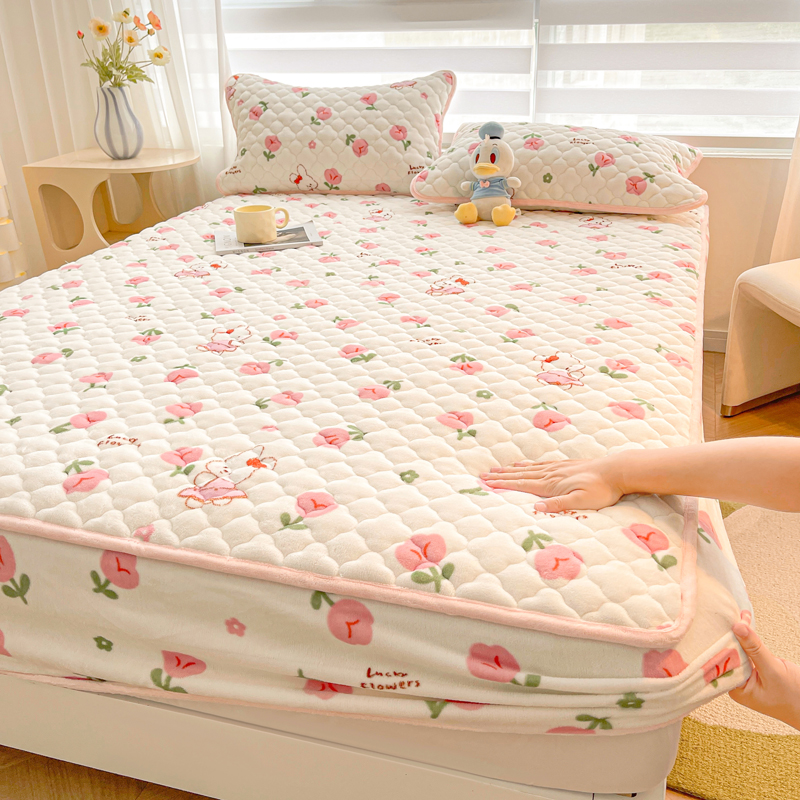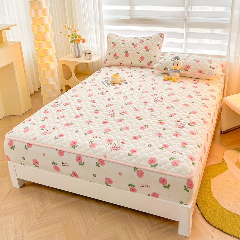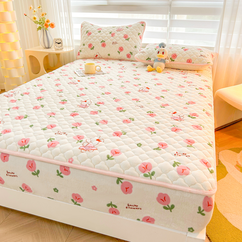 梵朴 2023新款牛奶绒夹棉床笠 小花兔子