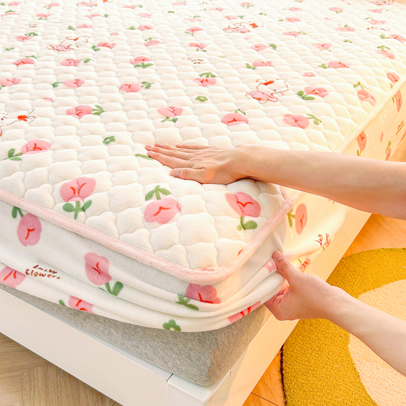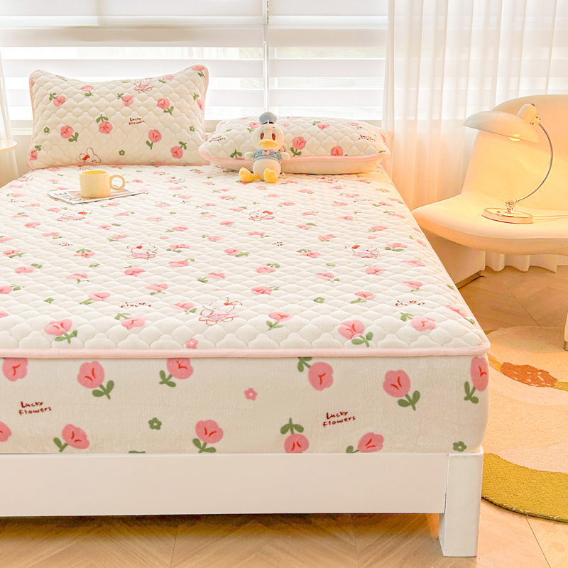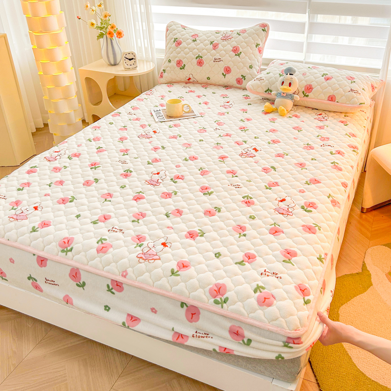 商品名称:梵朴 2023新款牛奶绒夹棉床笠 小花兔子