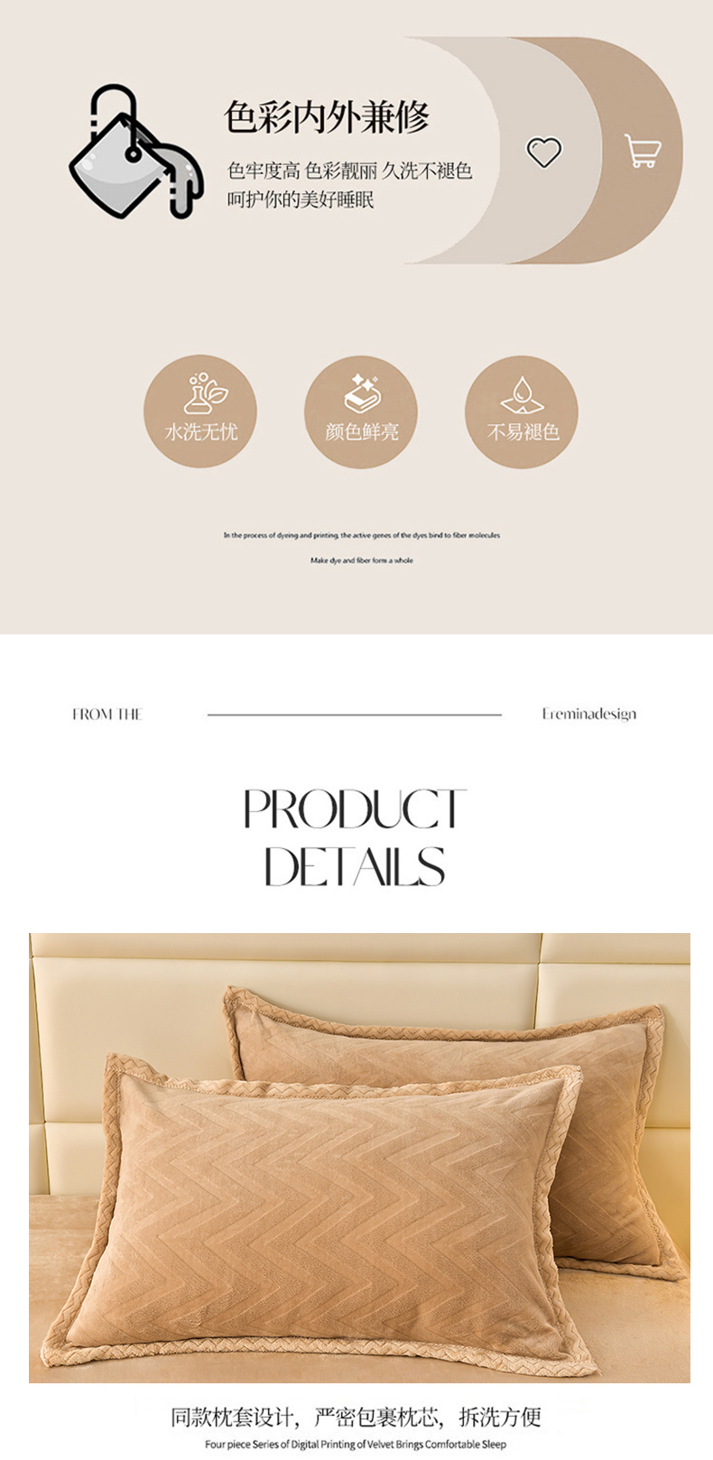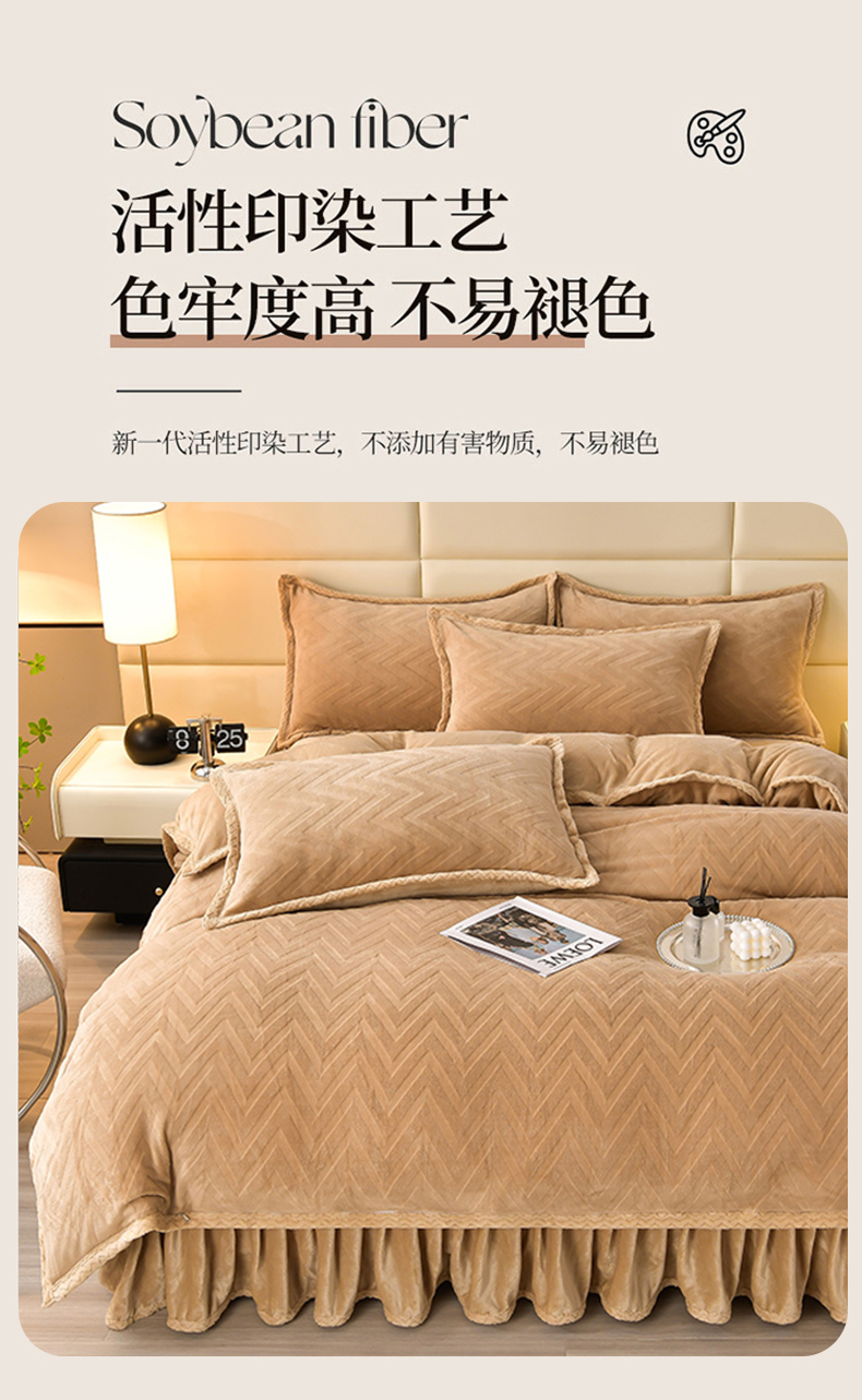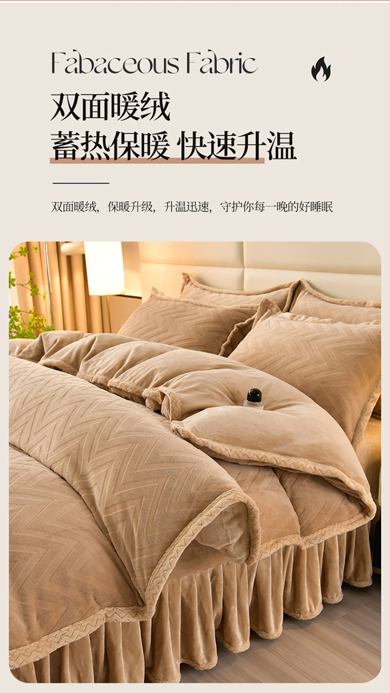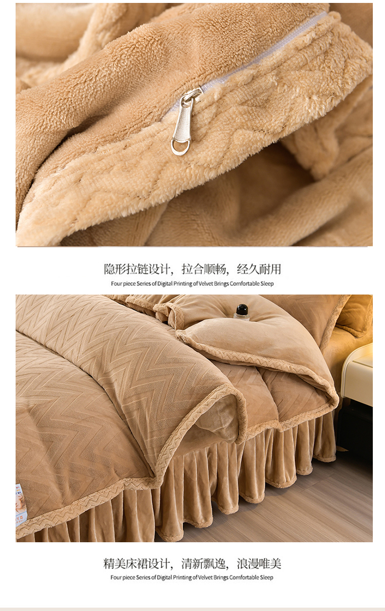 星窝家纺 2023直播电商爆款高克重9斤加厚雕花绒牛奶绒四件套 格调奶咖