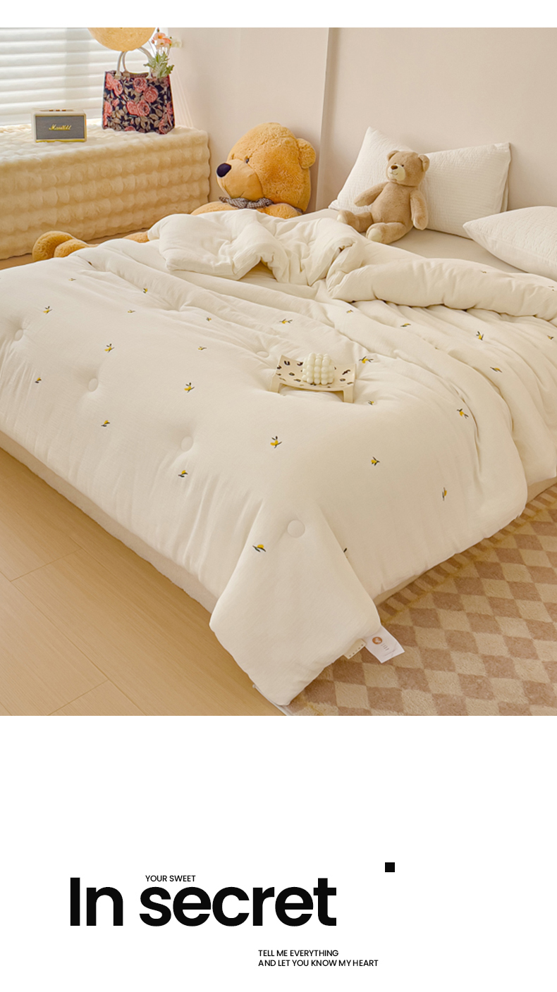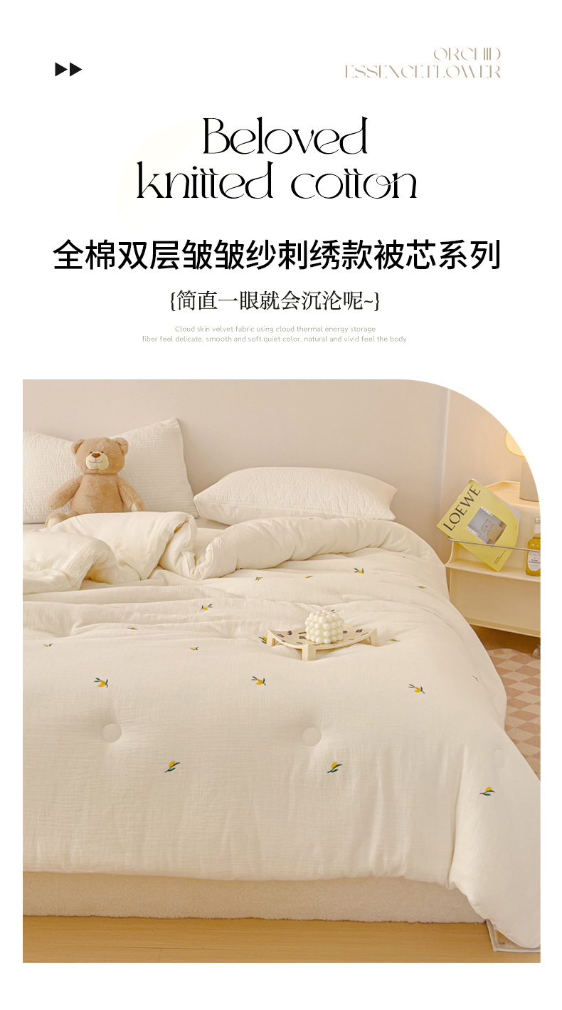 木楌家居 2025新款全棉皱皱纱刺绣款被芯-风格二 枇杷叶