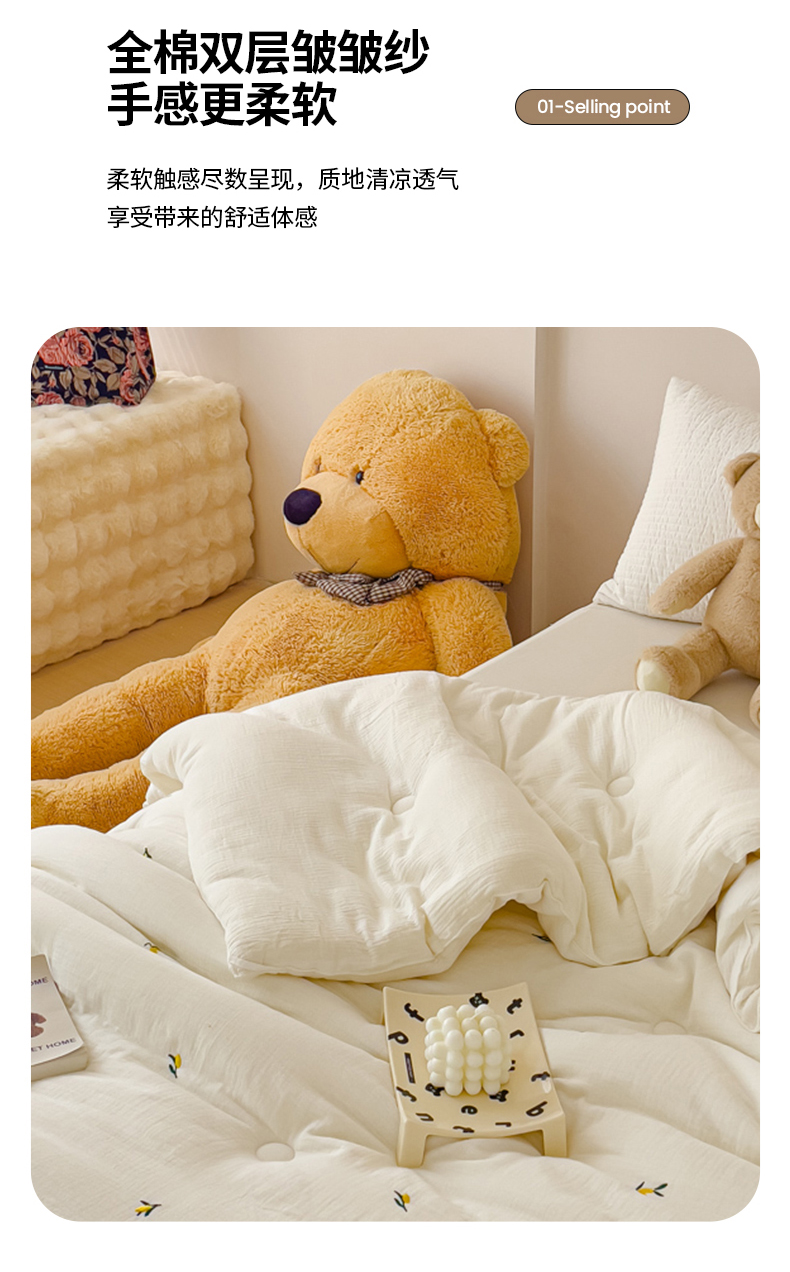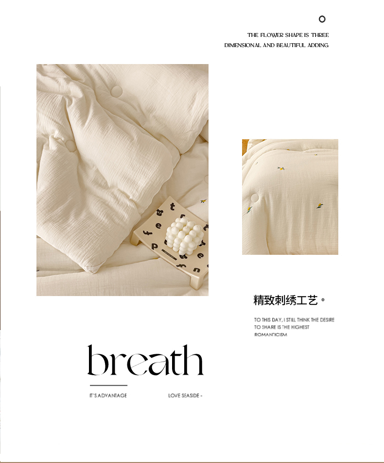 • 91家纺网 家纺一手货源 找家纺 木楌家居 2025新款全棉皱皱纱刺绣款被芯-风格二 枇杷叶