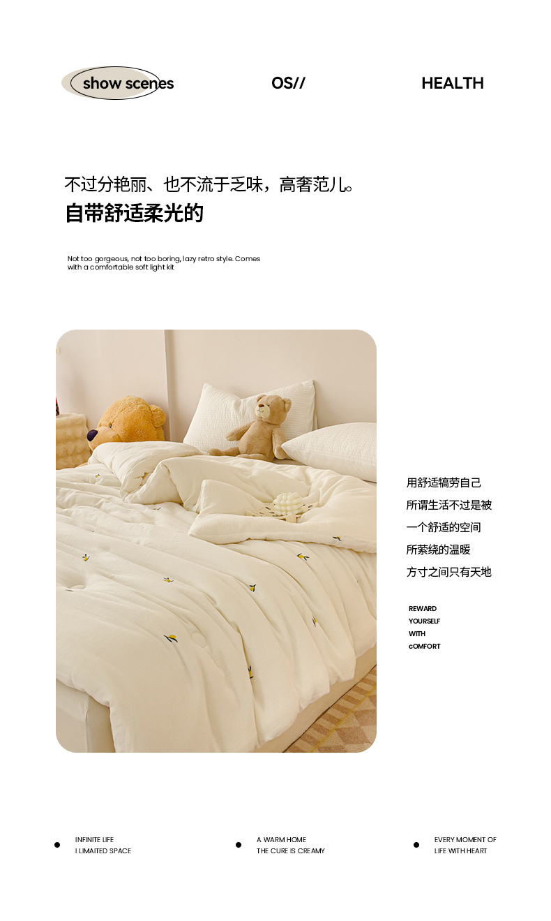 当前位置: 91家纺网 > 商品网购 > 被子 > 冬被 > 木楌家居 2025新款全棉皱皱纱刺绣款被芯-风格二 枇杷叶