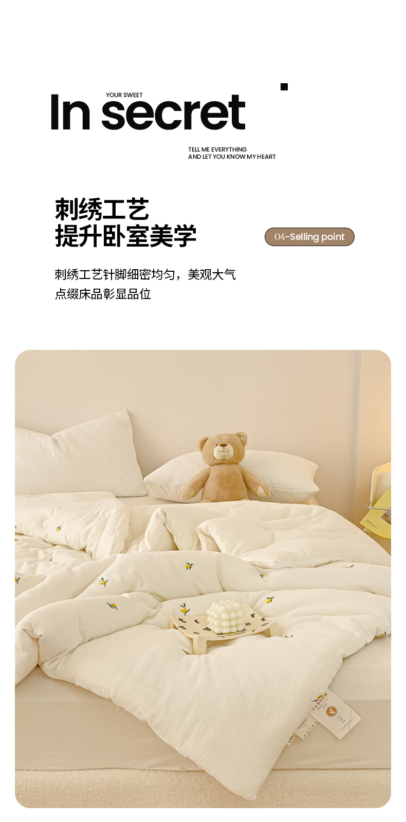 (总)木楌家居2025新款全棉彩点皱皱纱绣花四件套,暗香初醒,星柠微糖,樱草日记,织梦星河