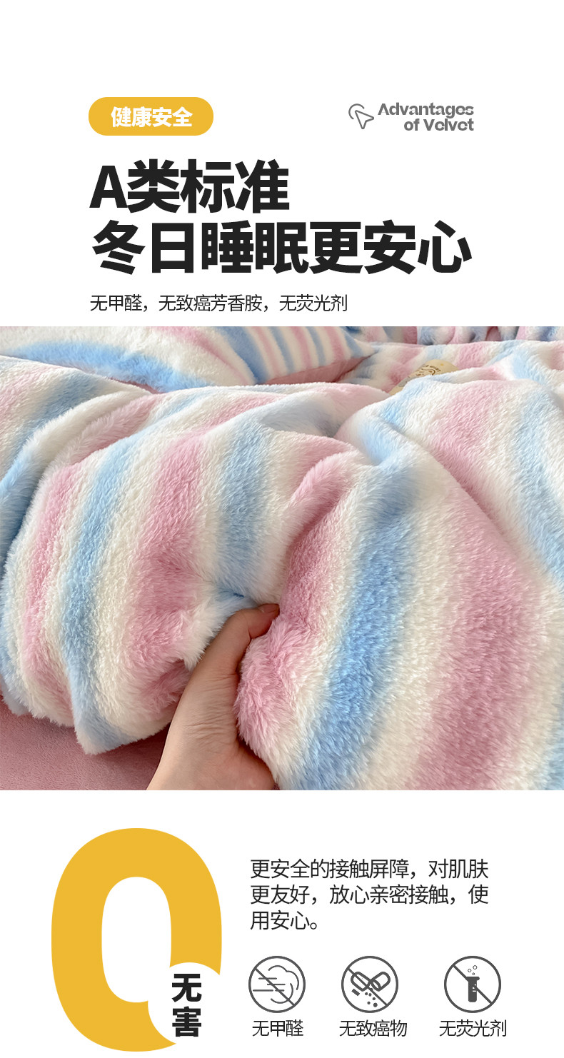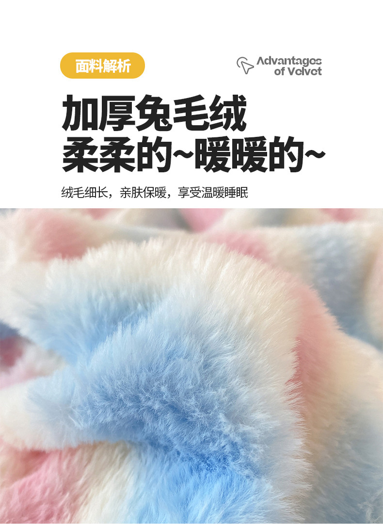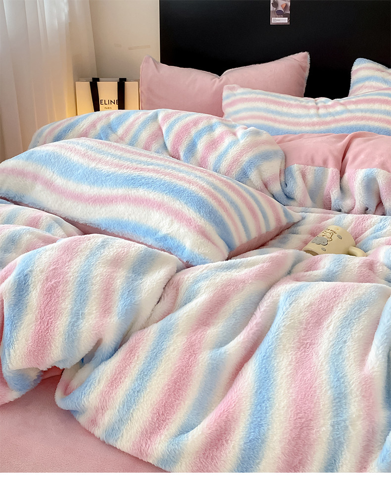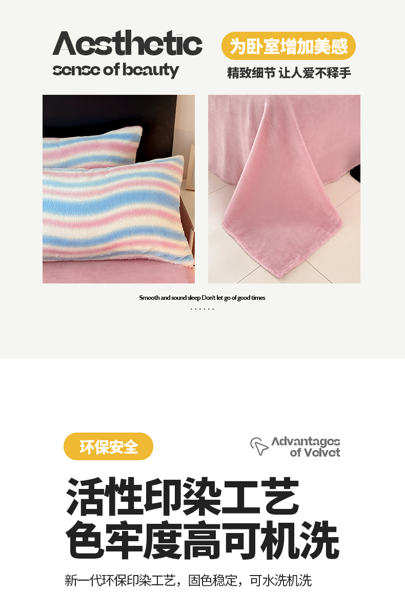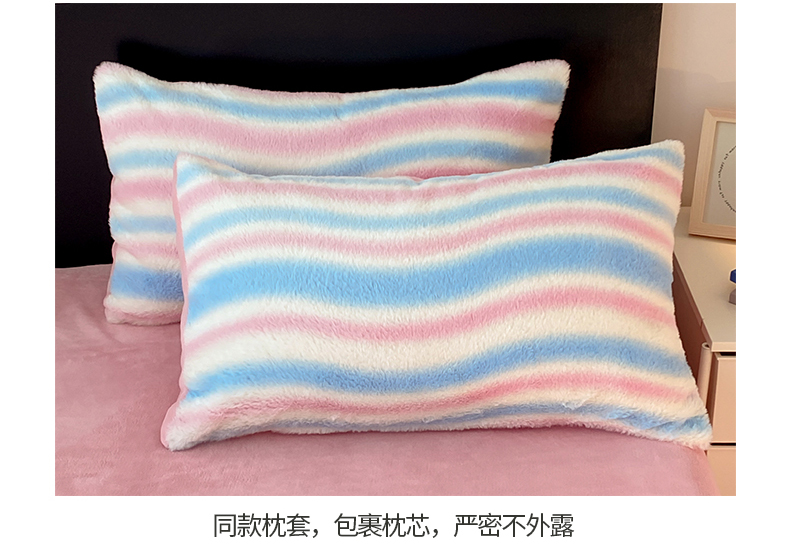 A类ins高克重320克简约渐变印花兔毛绒暖绒加厚牛奶绒系列四件套 绒兔毛-水波纹蓝粉