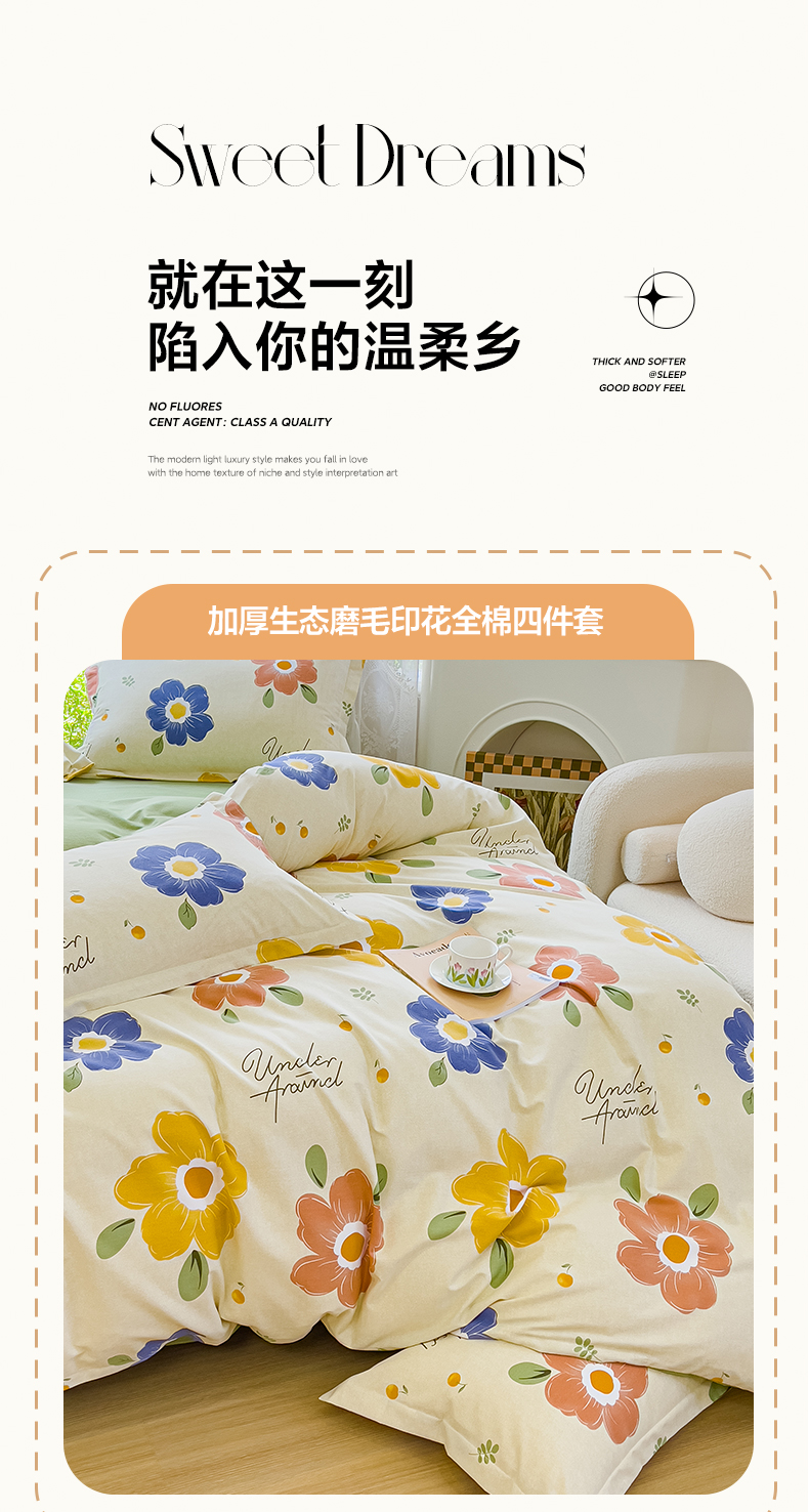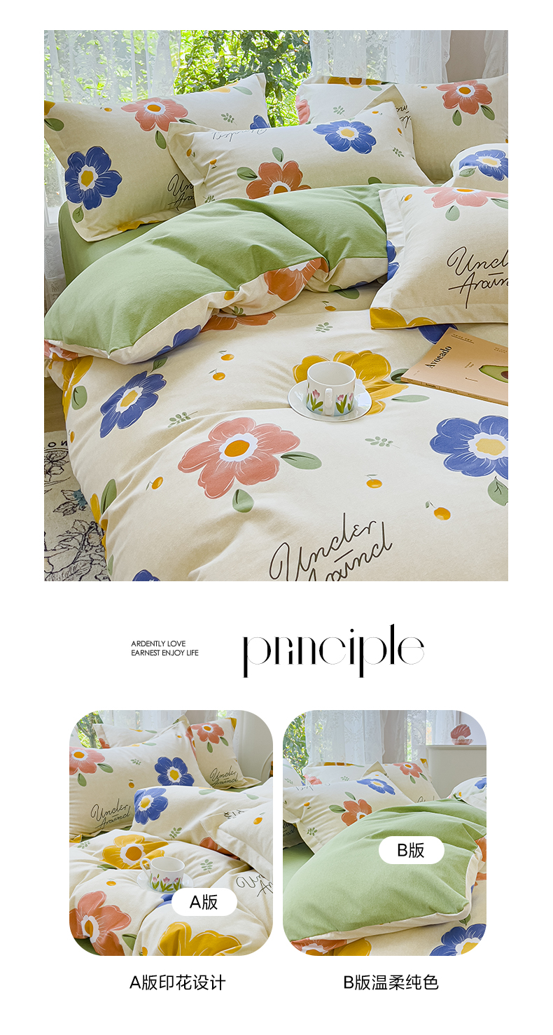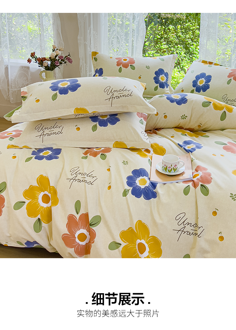 当前位置: 91家纺网 > 商品网购 > 床品套件 > 四件套 > 全棉普通四件套 > 伊而梦 2023新款小清新全棉磨毛印花四件套系列 春色