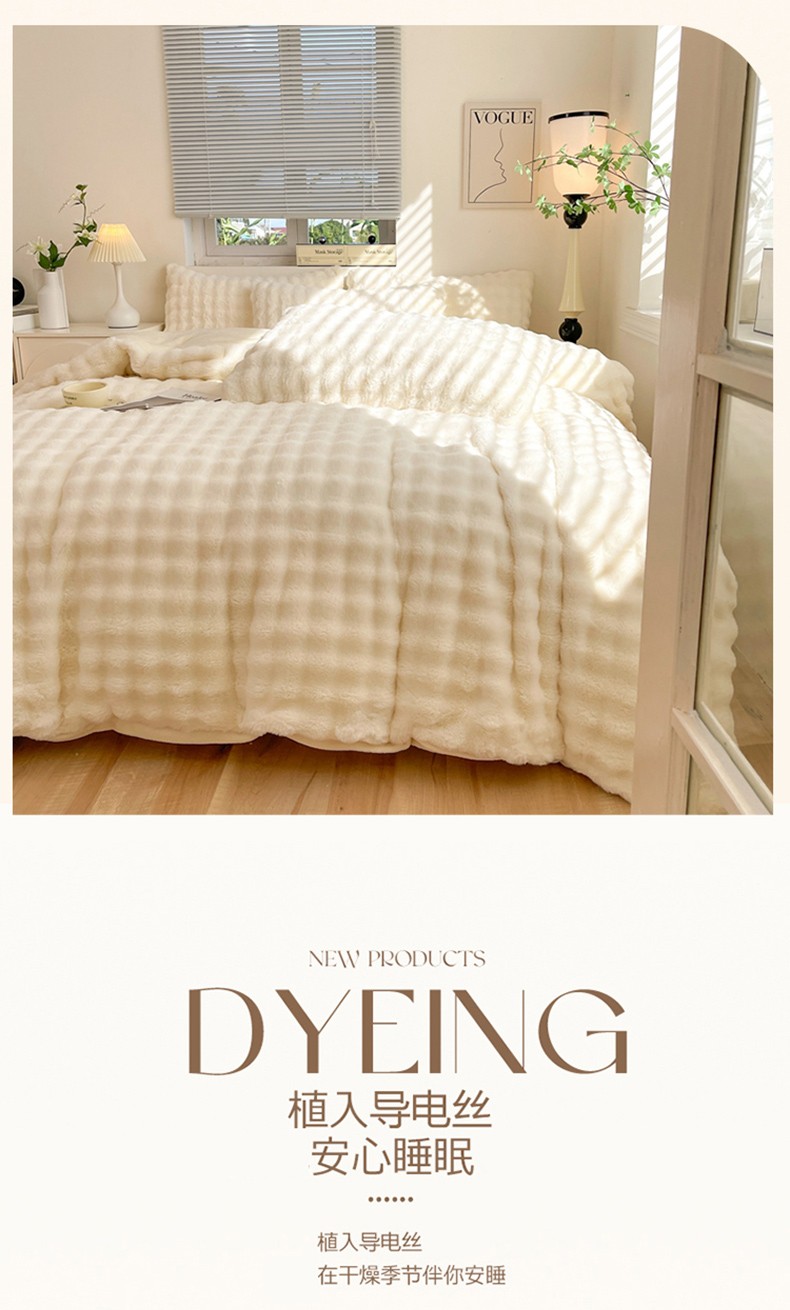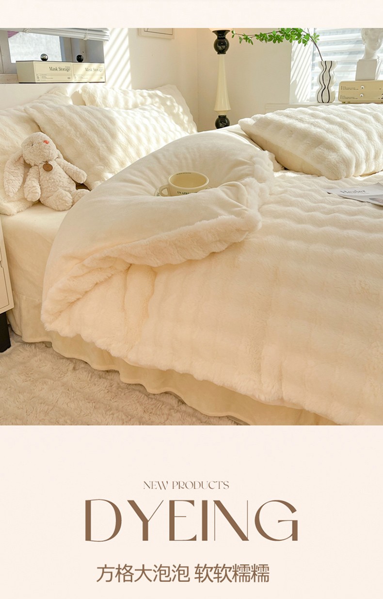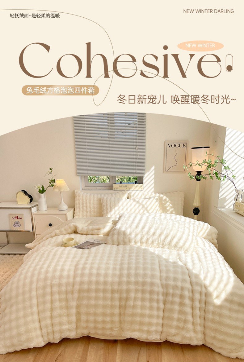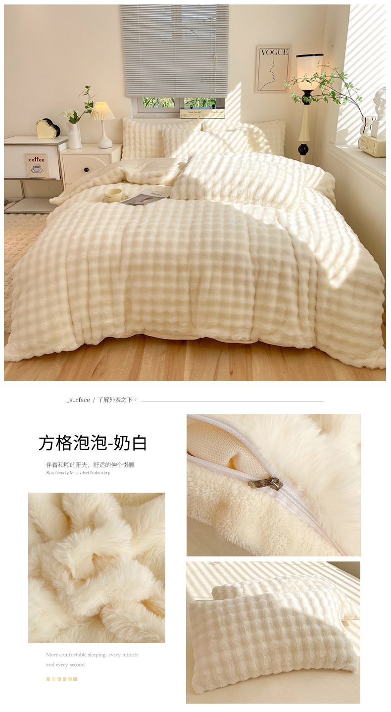 商品名称:秋艳 2023新款兔毛绒方格泡泡四件套 方格泡泡-奶白