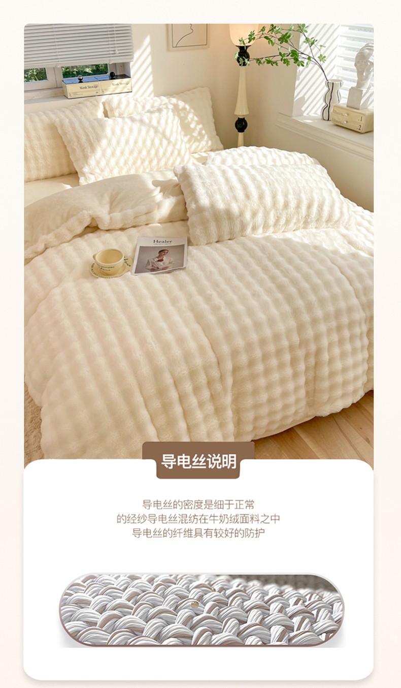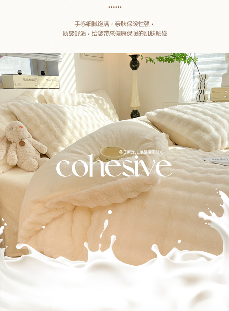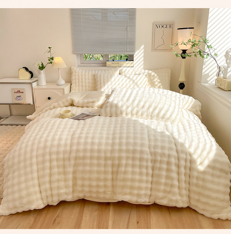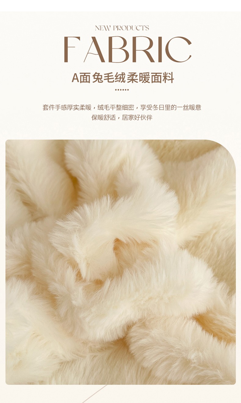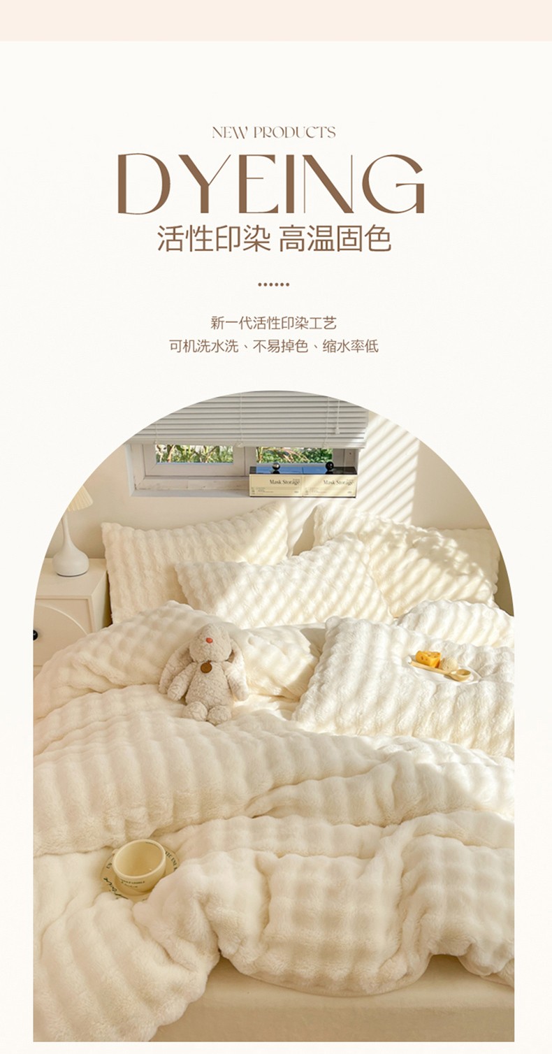 商品名称:秋艳 2023新款兔毛绒方格泡泡四件套 方格泡泡-奶白