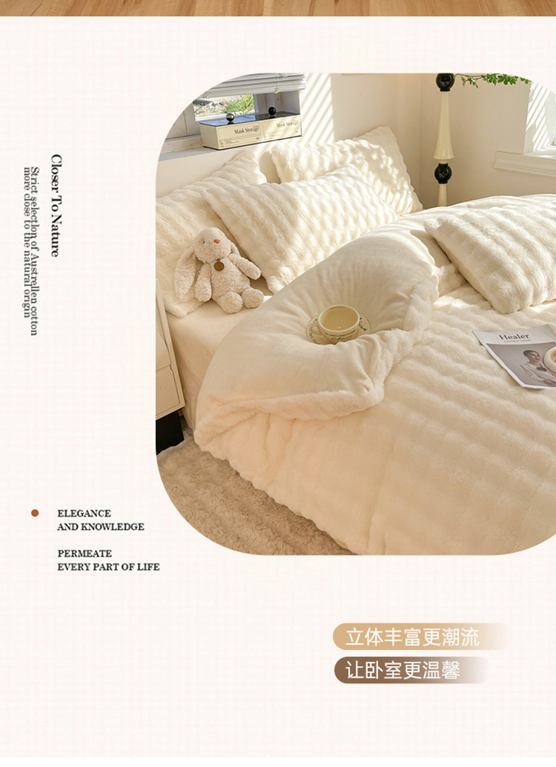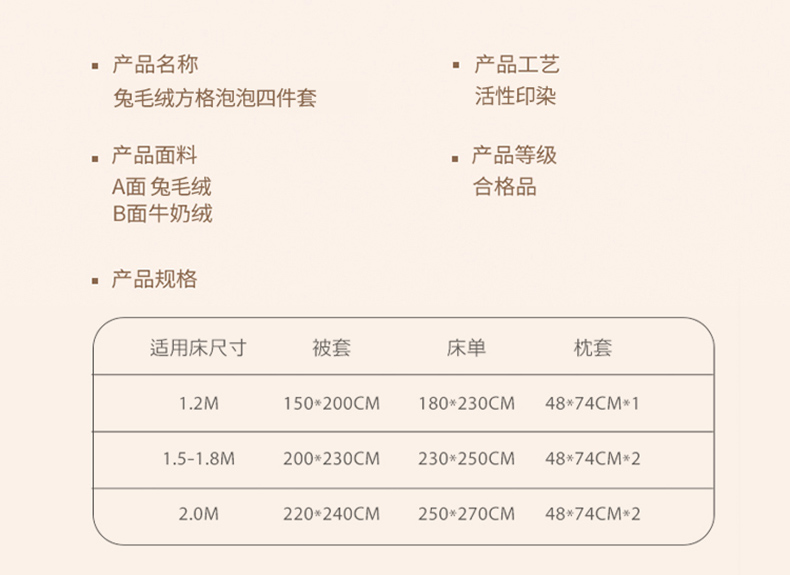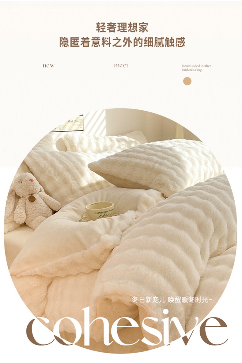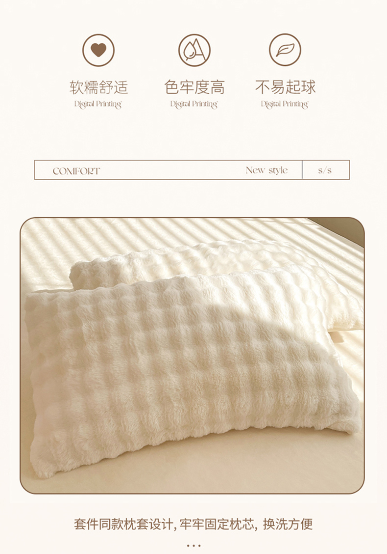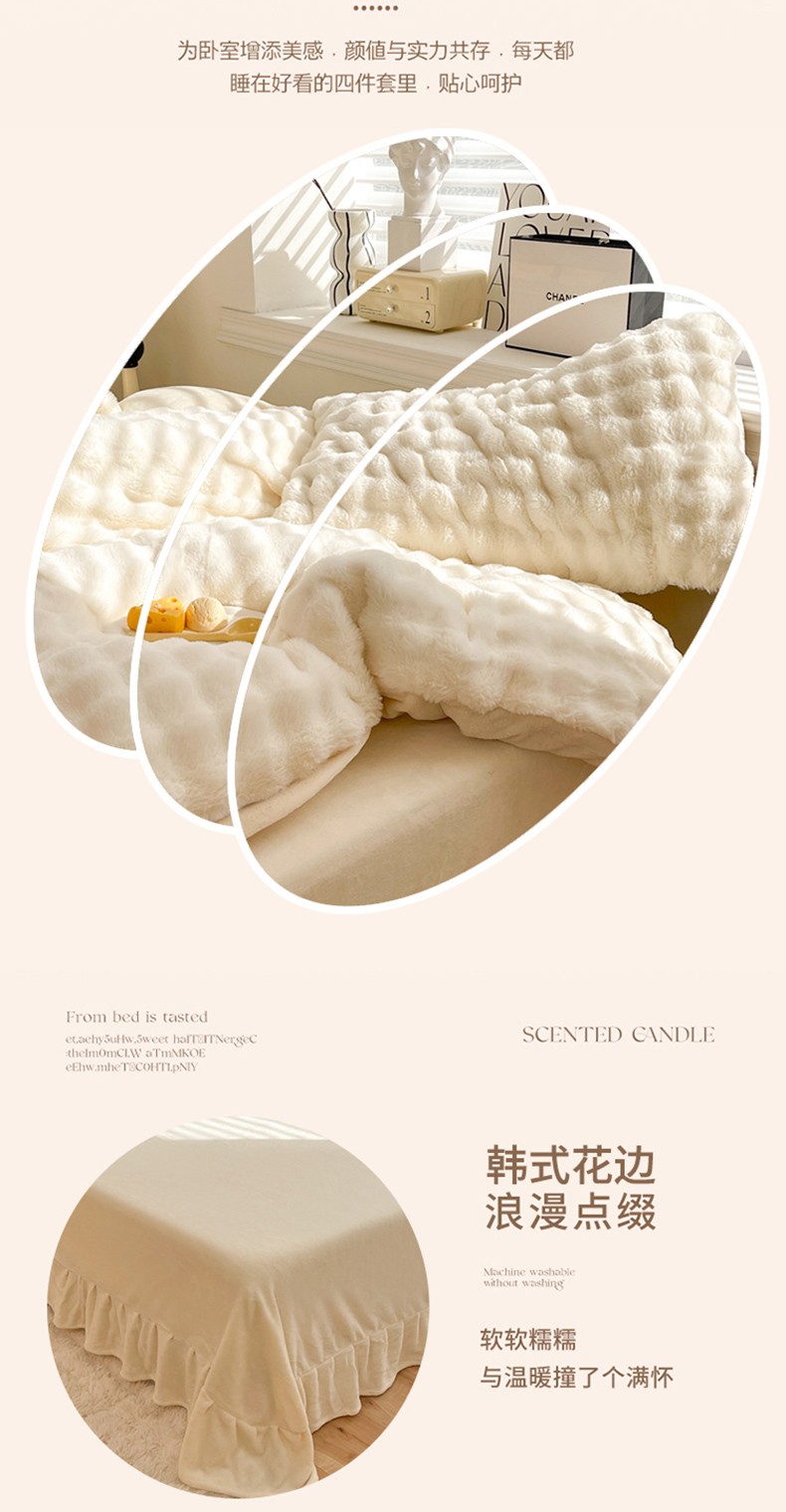 商品名称:秋艳 2023新款兔毛绒方格泡泡四件套 方格泡泡-奶白