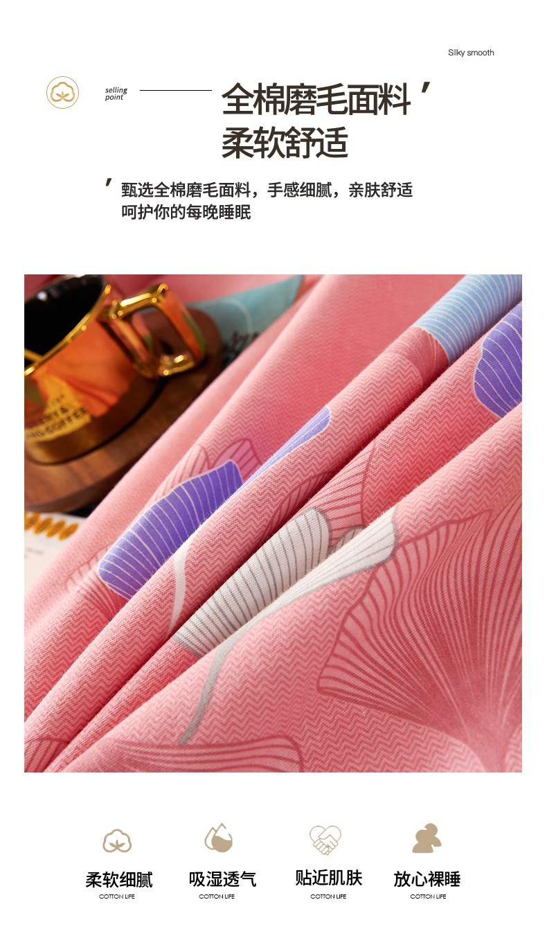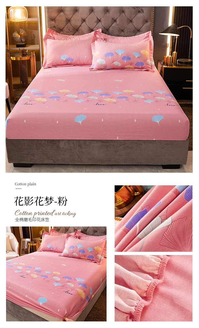 • 91家纺网 家纺一手货源 找家纺 伊而梦 2023新款全棉磨毛印花四件套系列单品床笠 花影花梦-粉