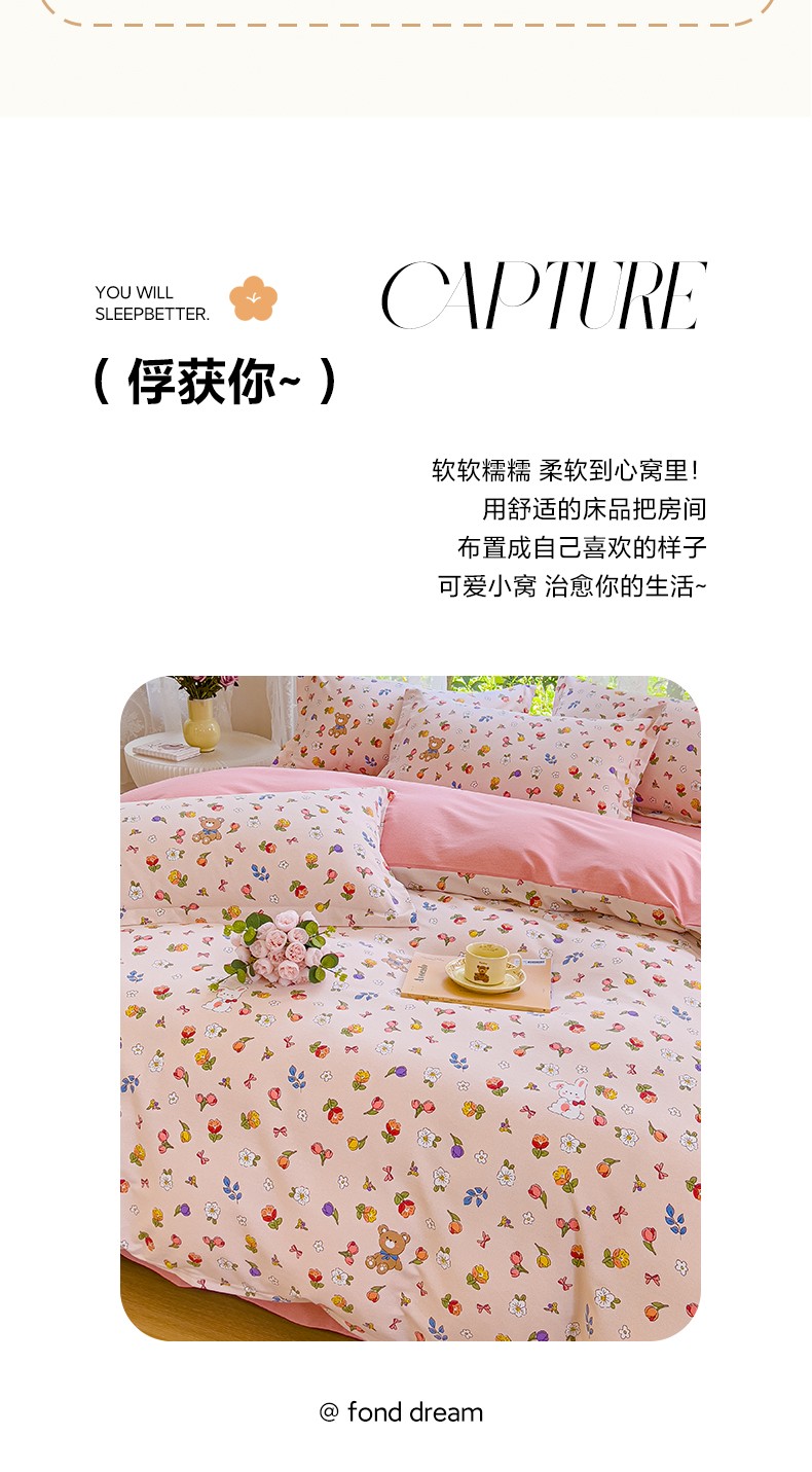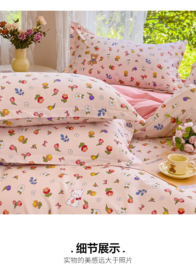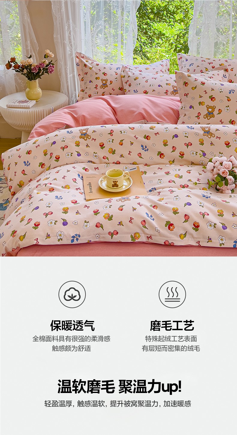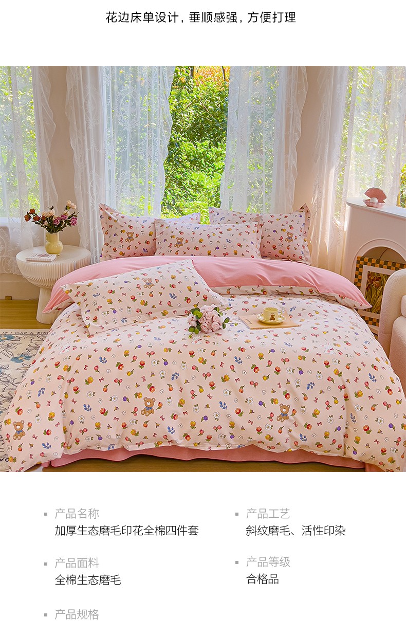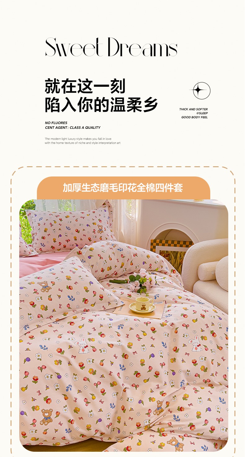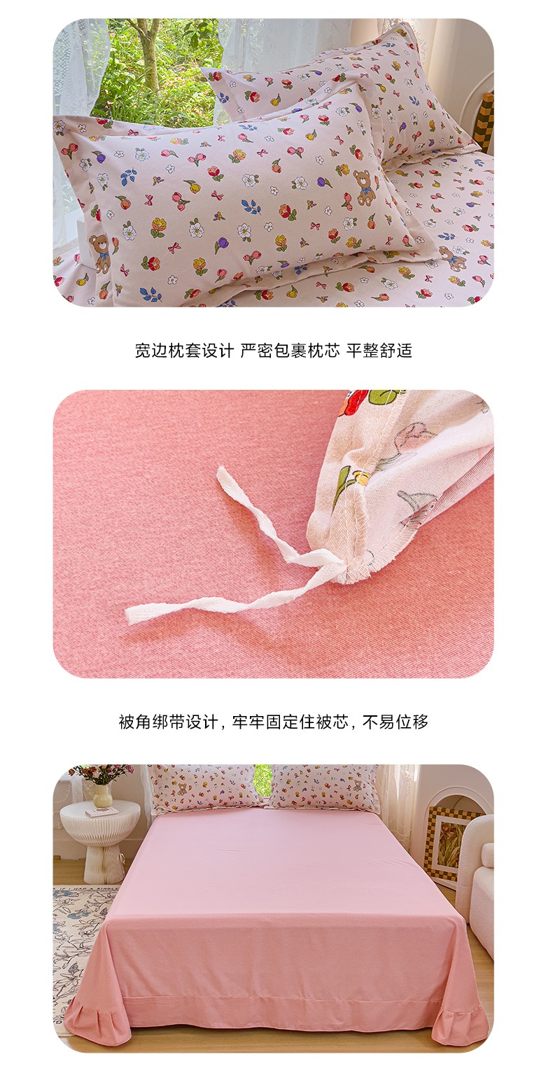 • 91家纺网 家纺一手货源 找家纺 伊而梦 2023新款小清新全棉磨毛印花四件套系列单品被套 甜心