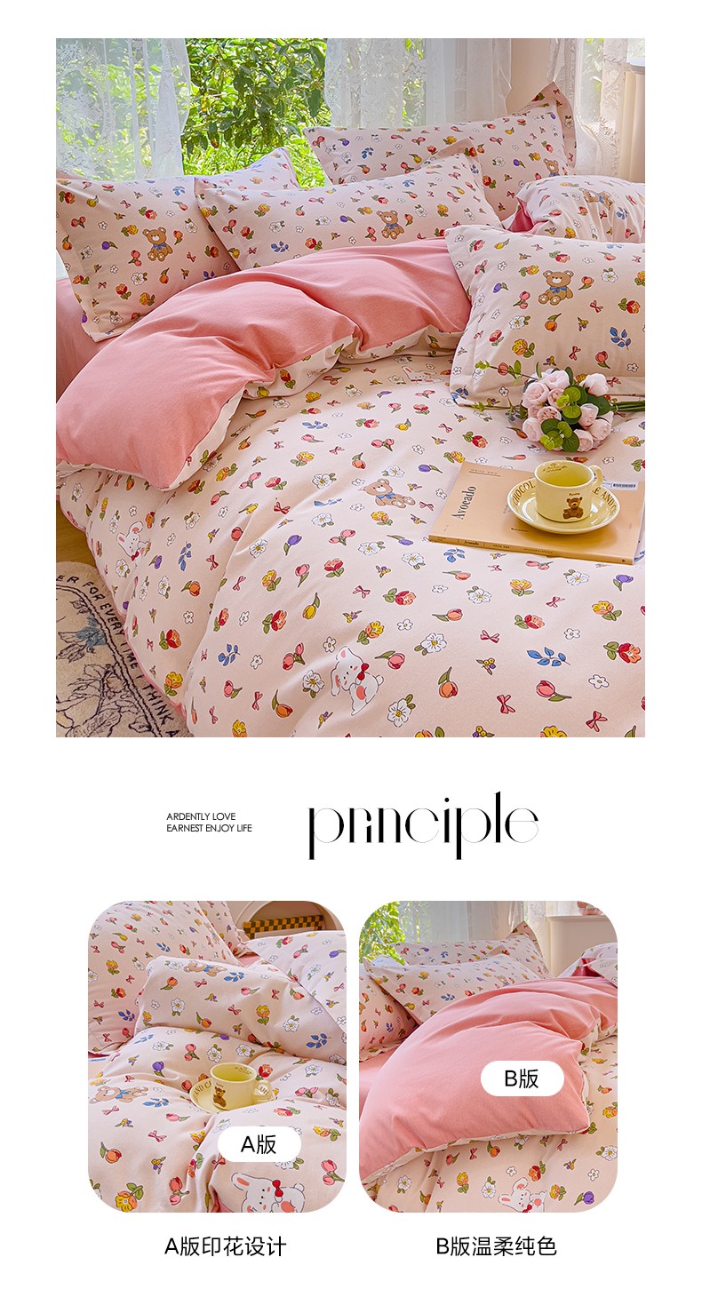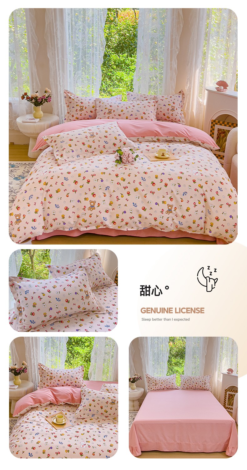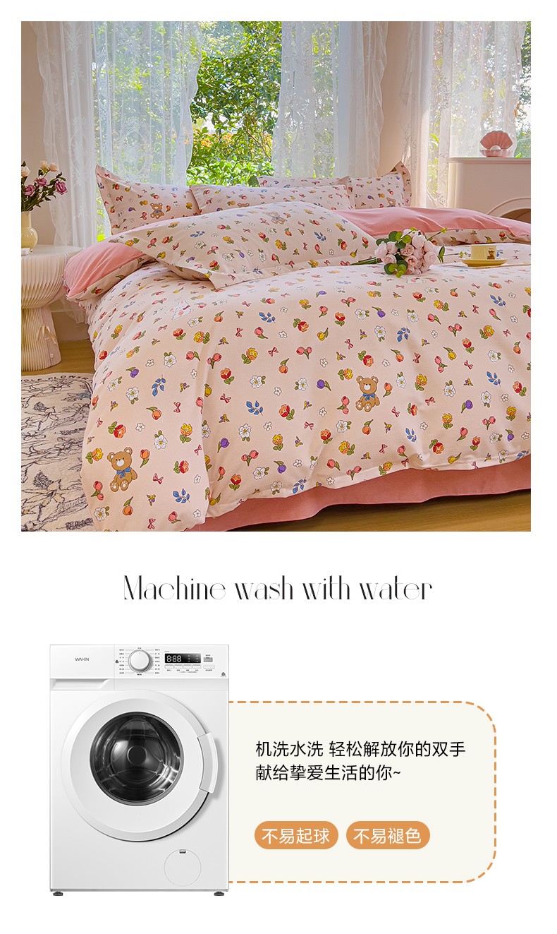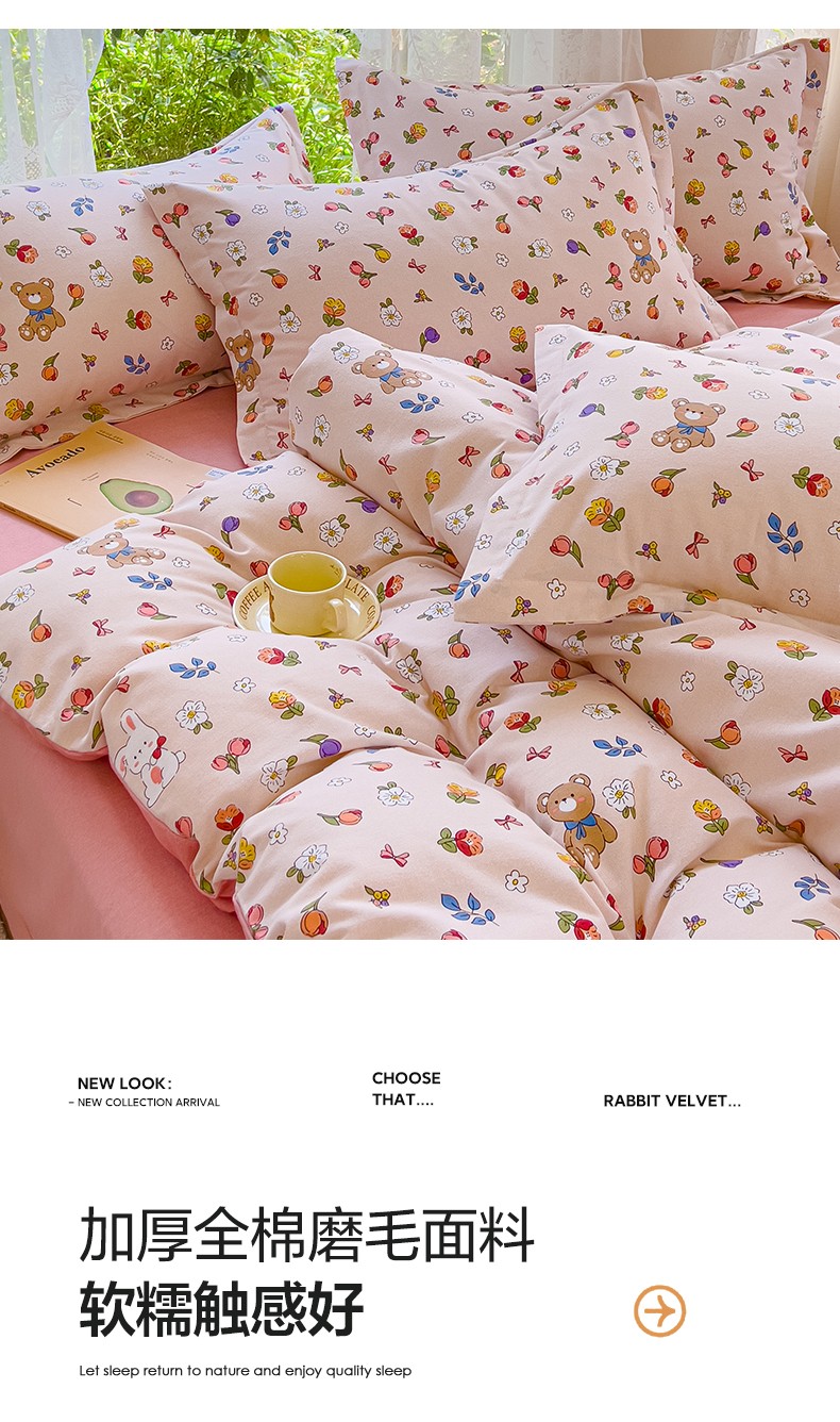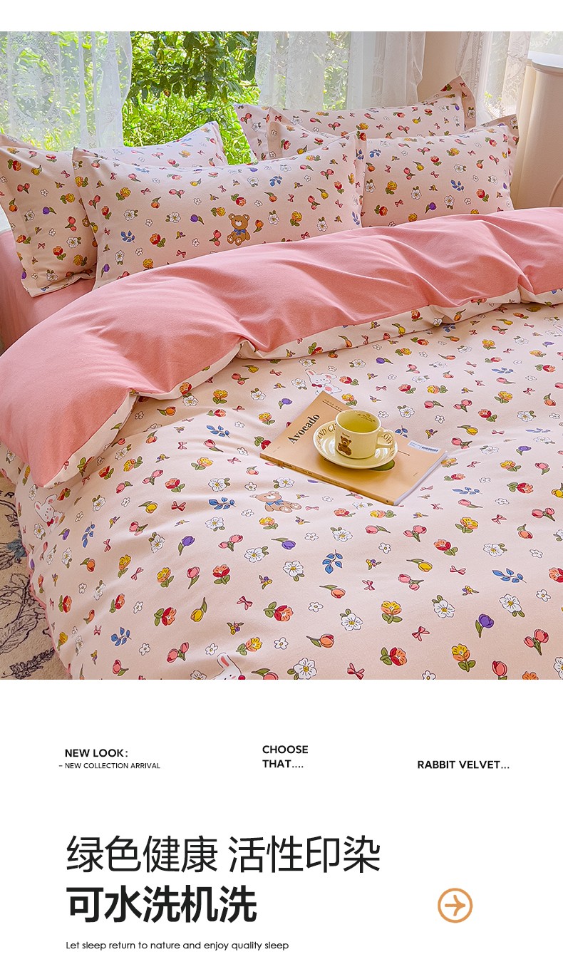 • 91家纺网 家纺一手货源 找家纺 伊而梦 2023新款小清新全棉磨毛印花四件套系列单品被套 甜心