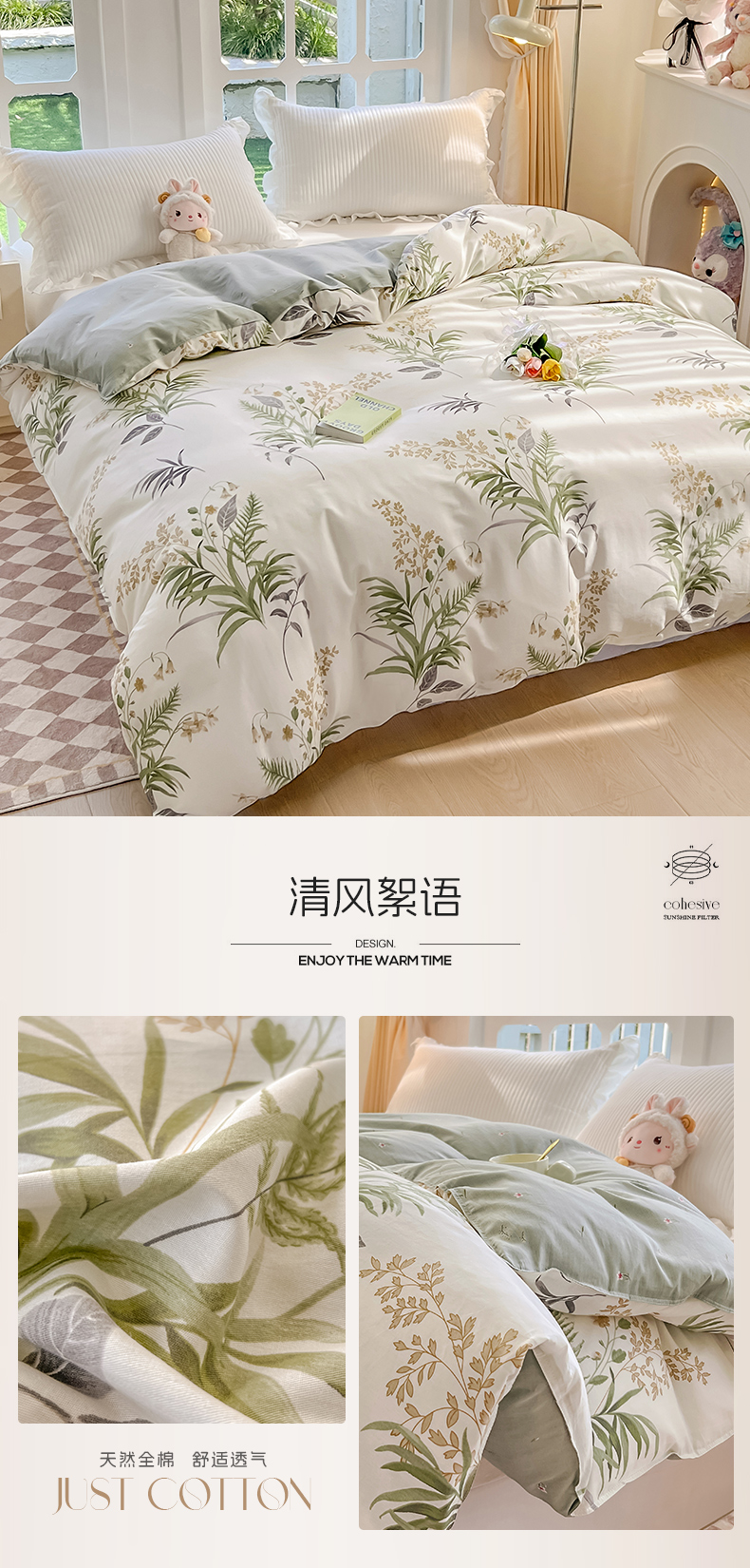 绵庭家纺 2023新款12868系列全棉小清新印花单被套 清风絮语