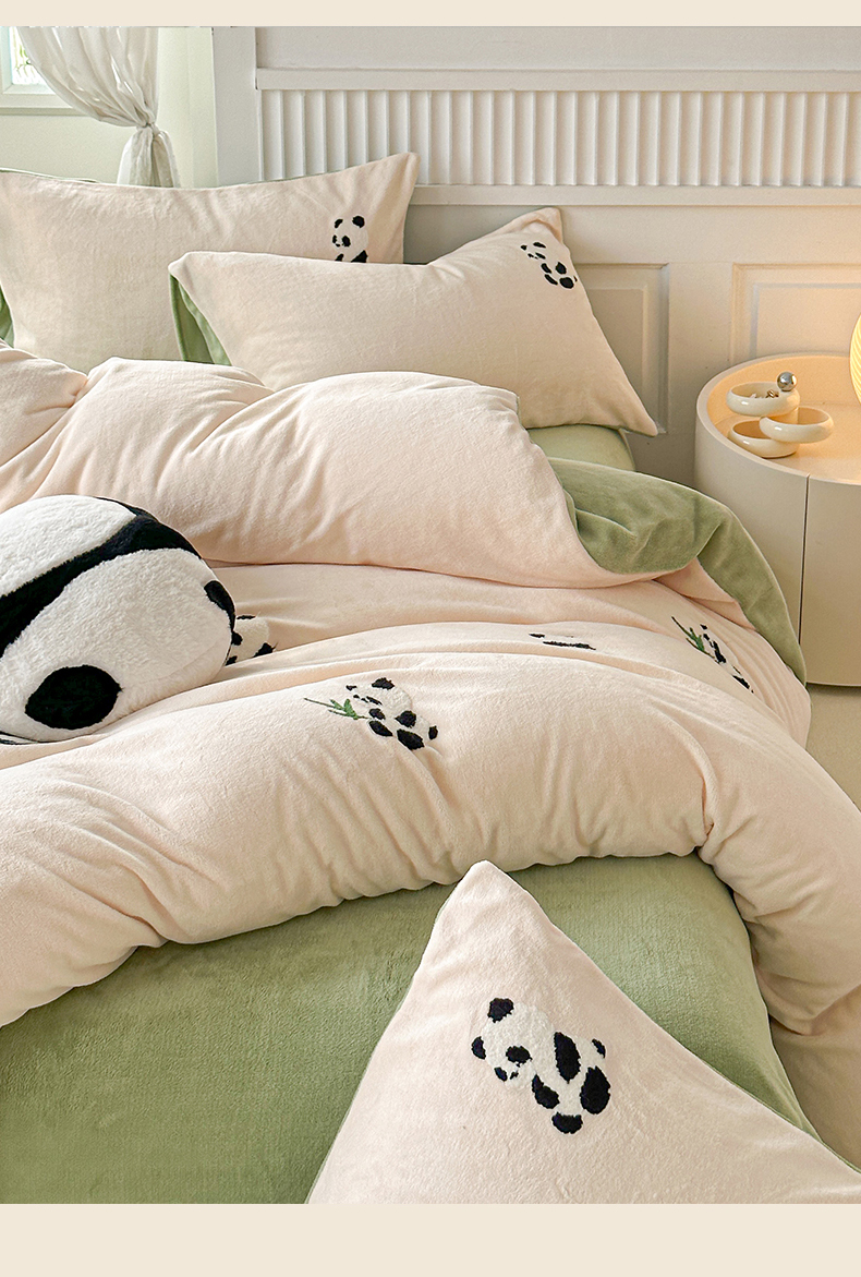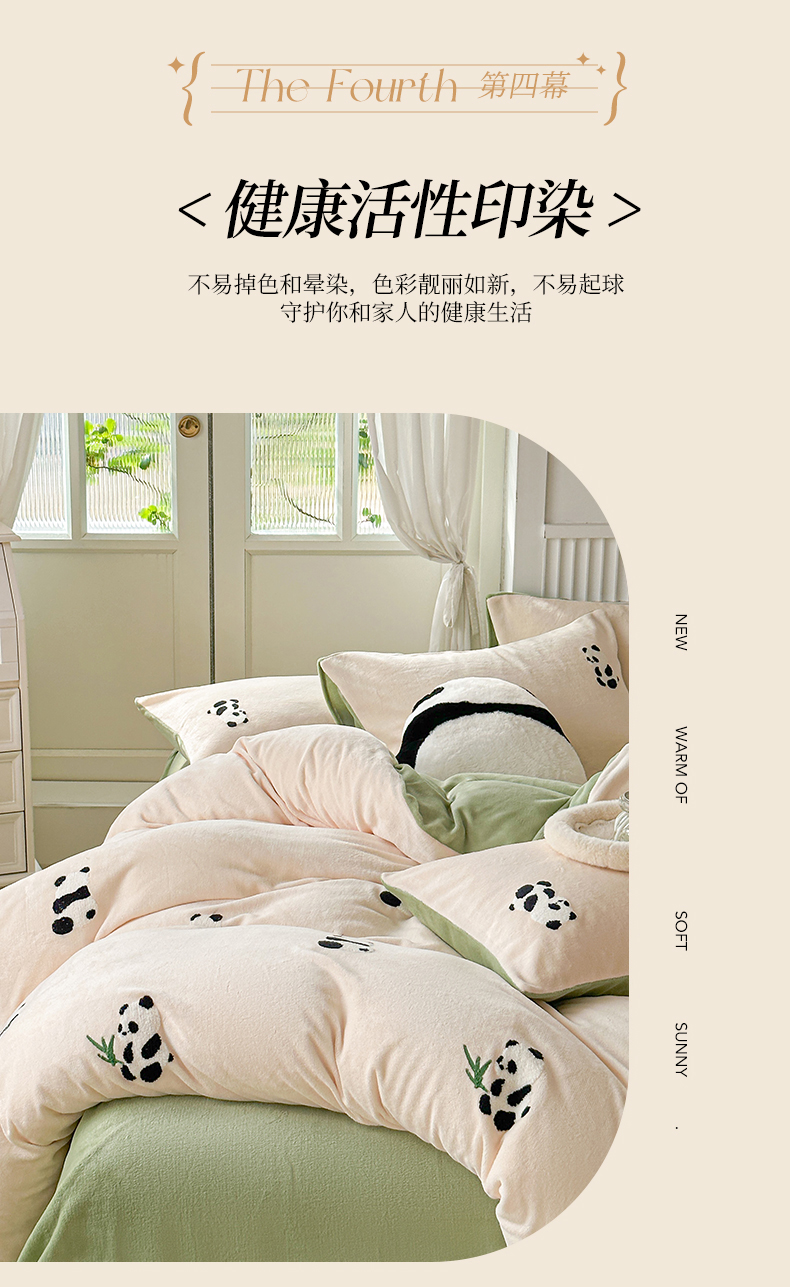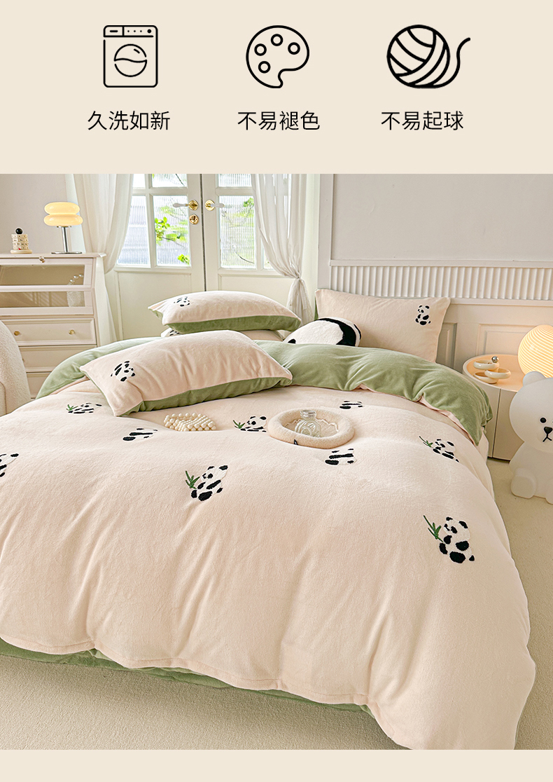商品名称:木堇家居 2023秋冬新款牛奶绒毛巾绣四件套 黑煤球