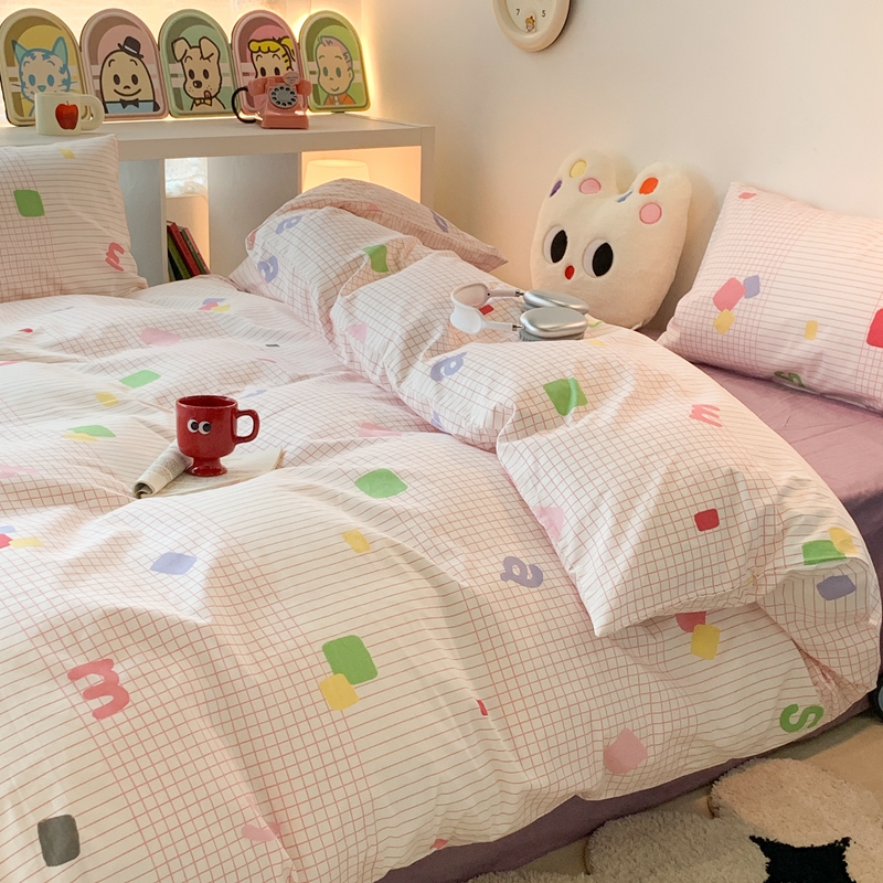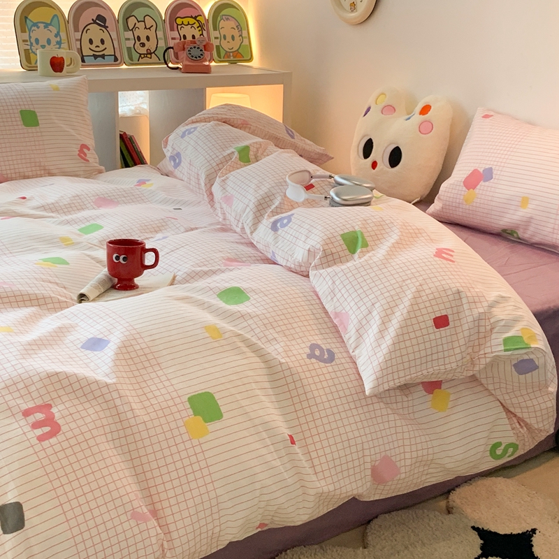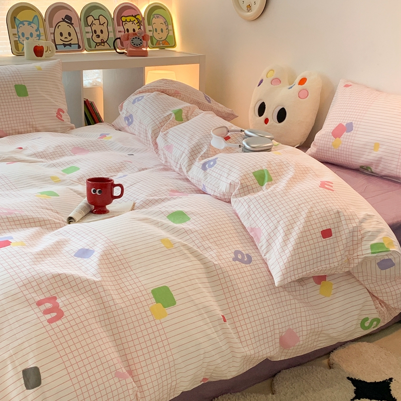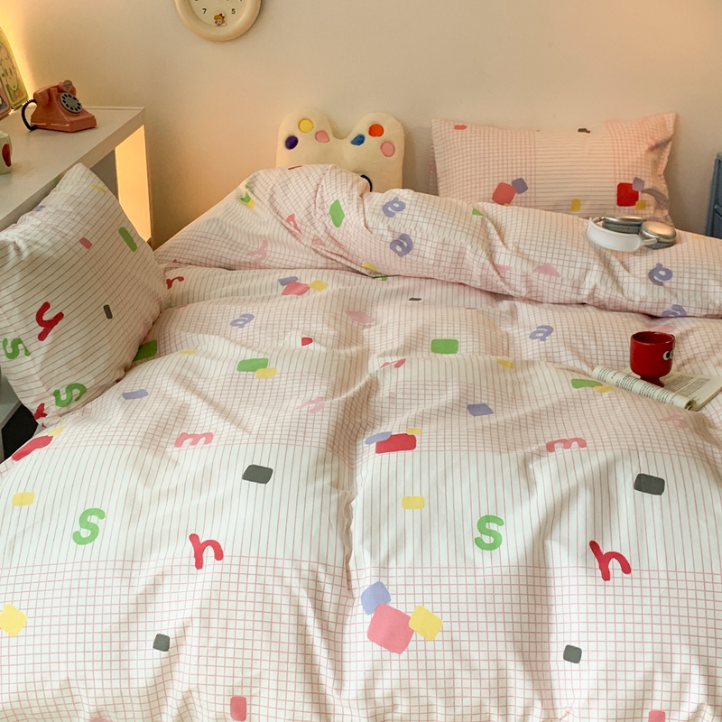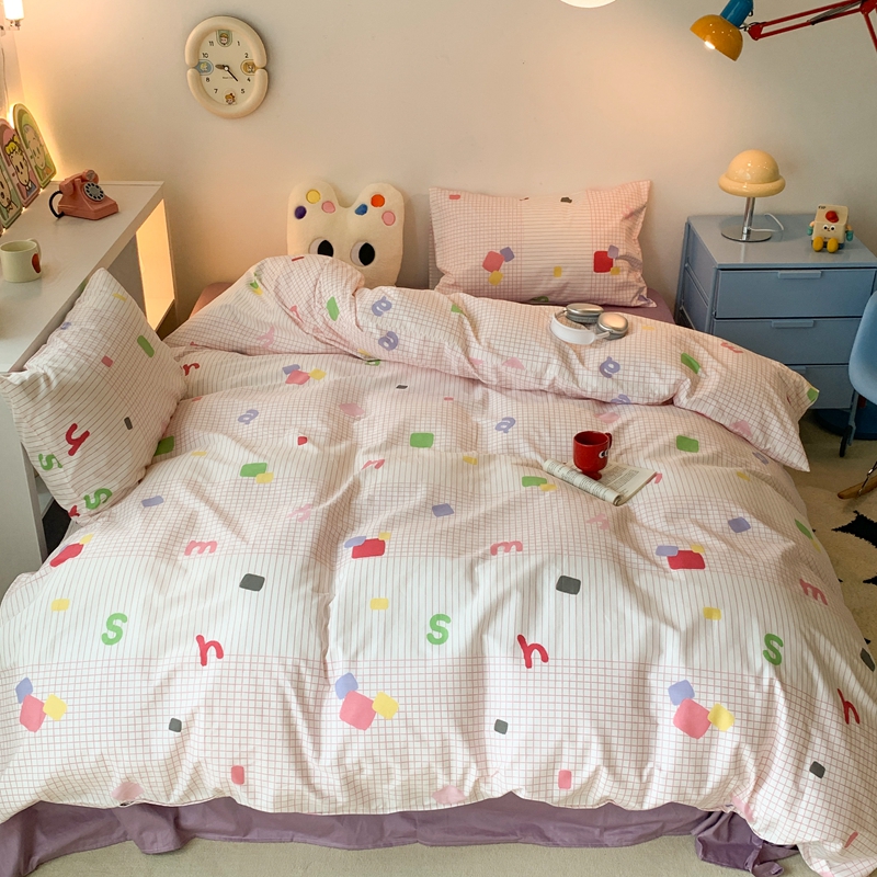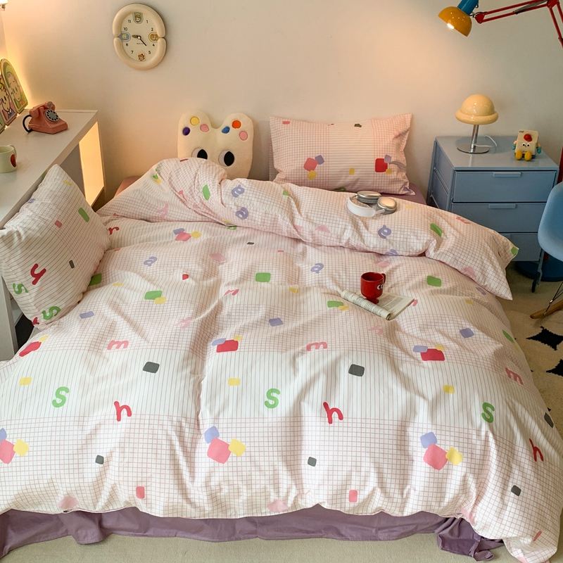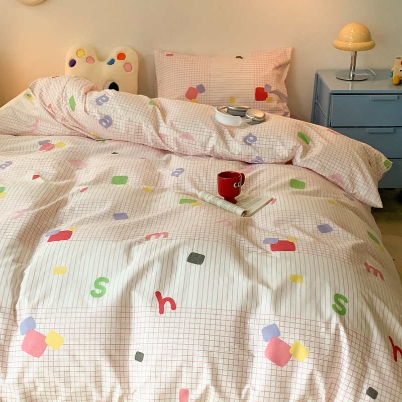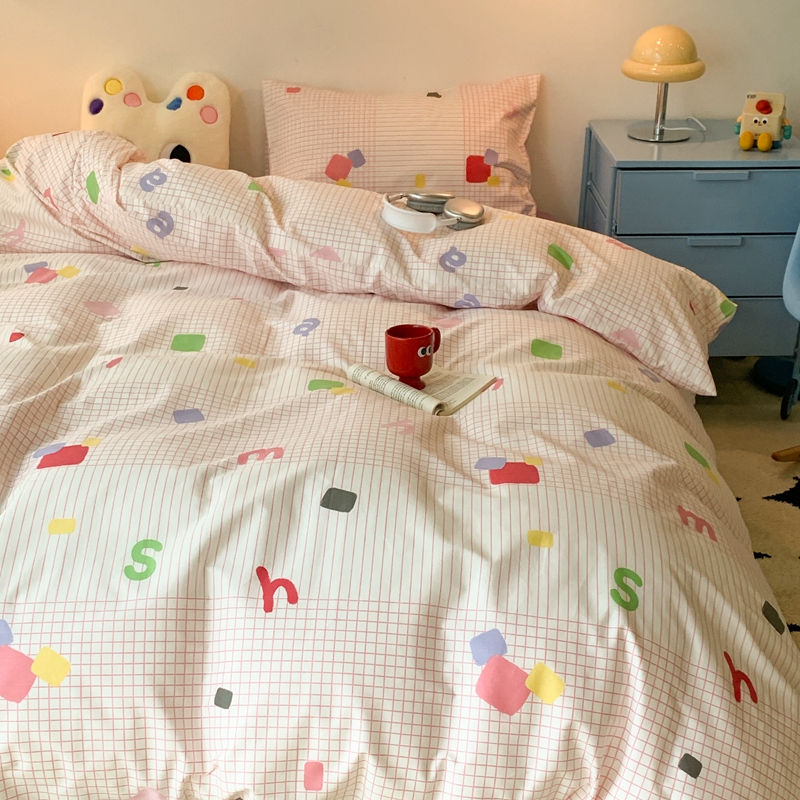 商品名称:昔可家纺 2023新款全棉四件套-潮趣系列 彩格字母